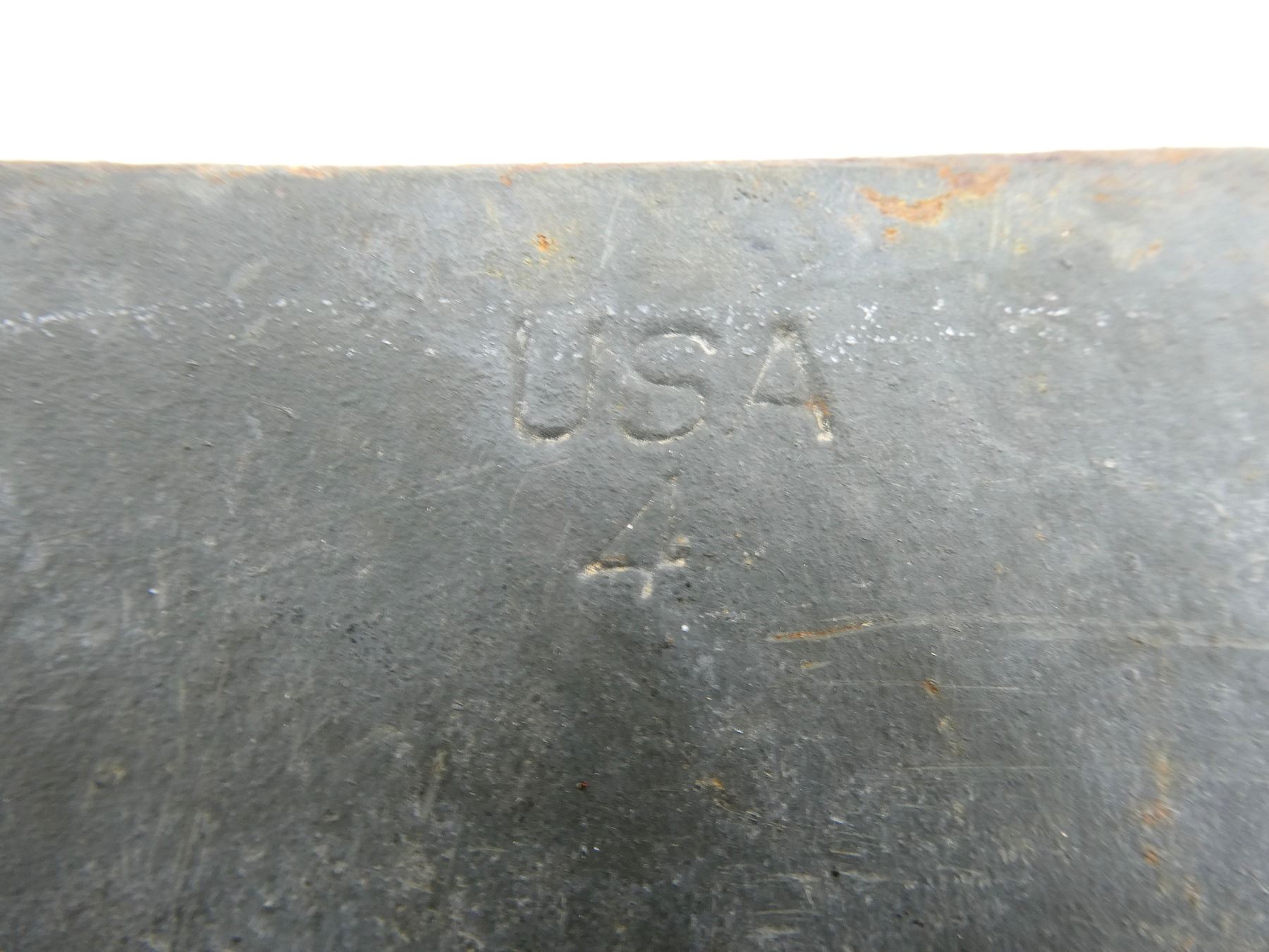 (1) GREEN PAINTED AXE HEAD AND WOODEN HANDLE, AXE HEAD MARKED: "USA, 4", NO VISIBLE MARKINGS ON HANDLE, AXE HEAD APPROX. 7 3/8" L X 4 5/8" W, OAL APPROX. 33.75". SEE PHOTOS.
