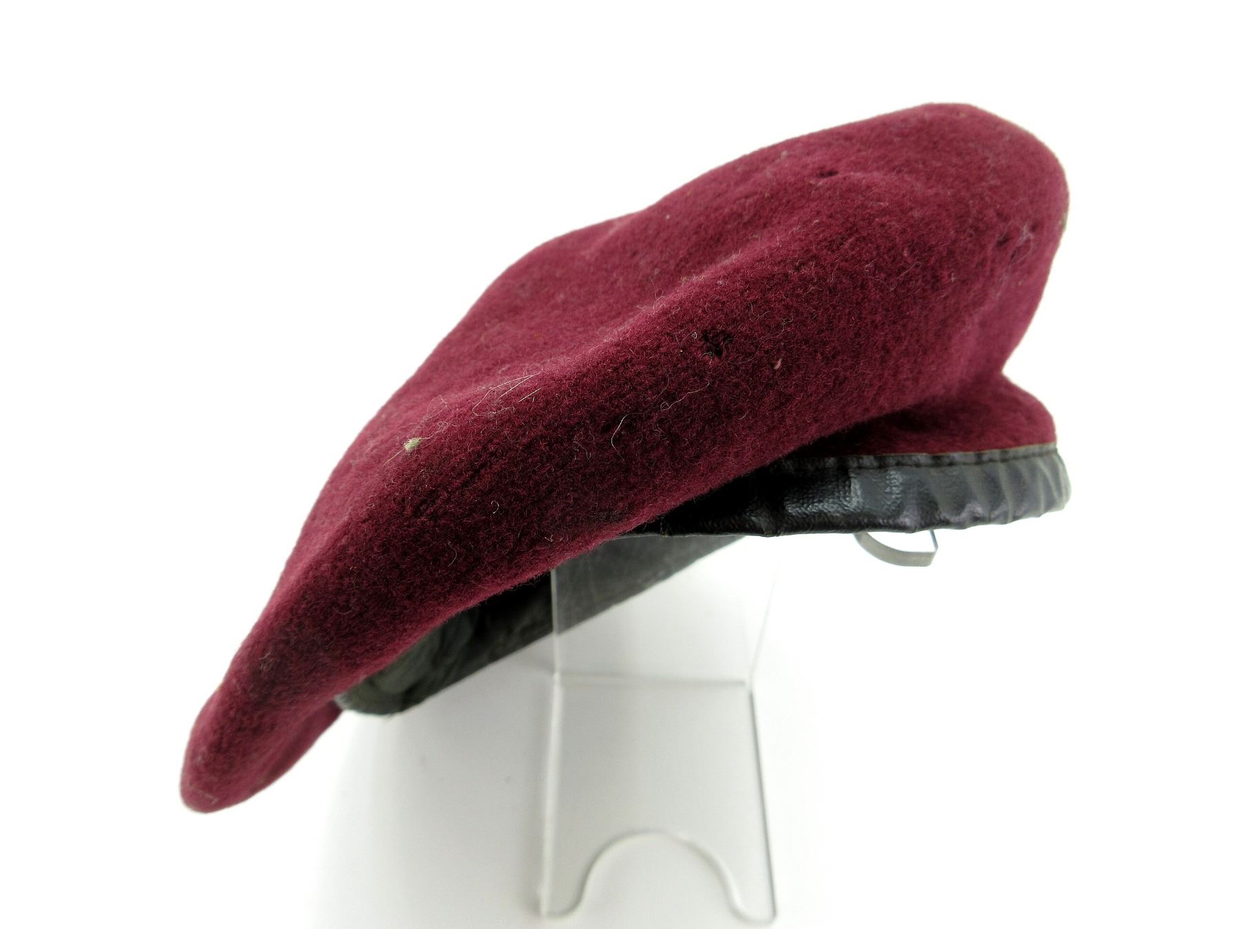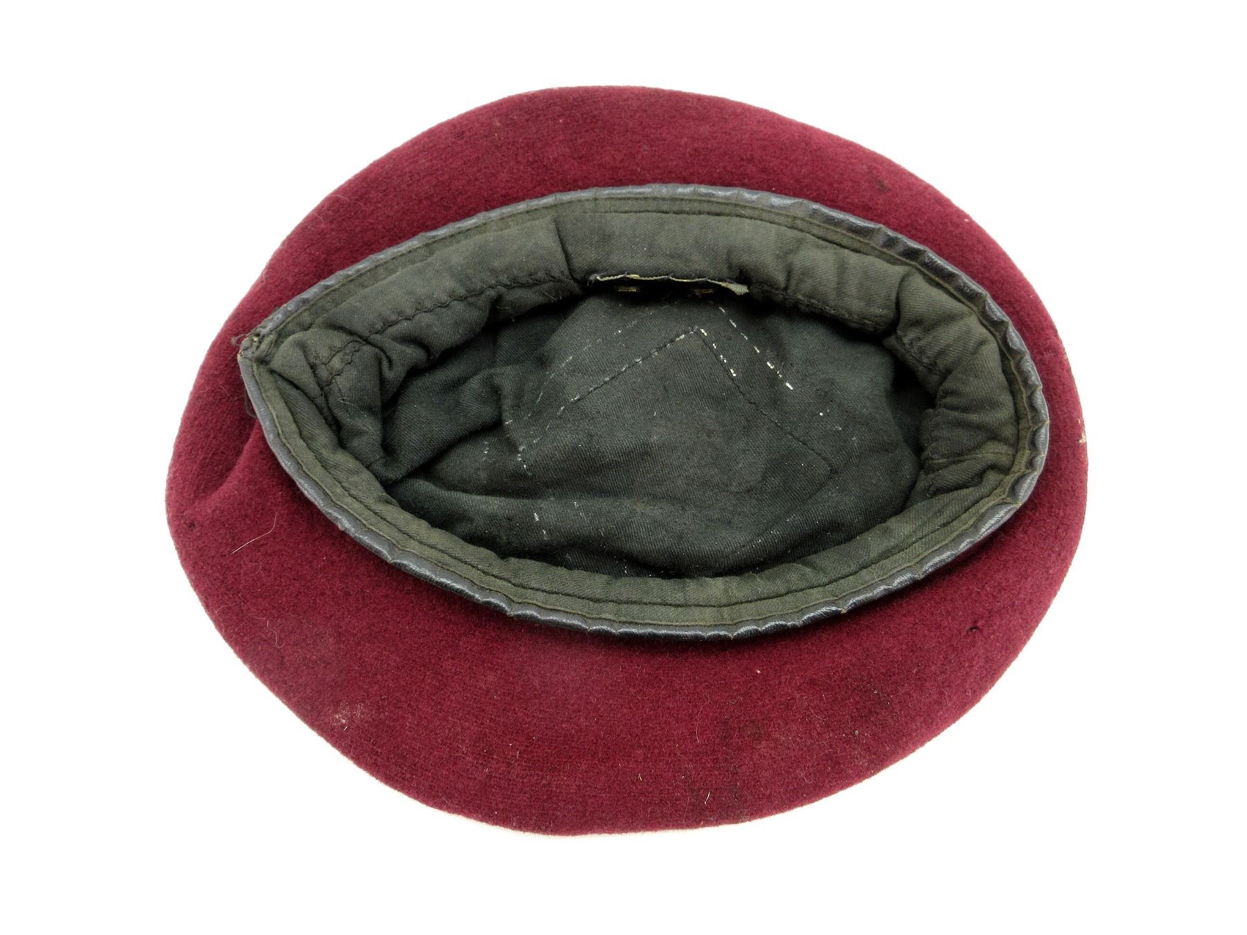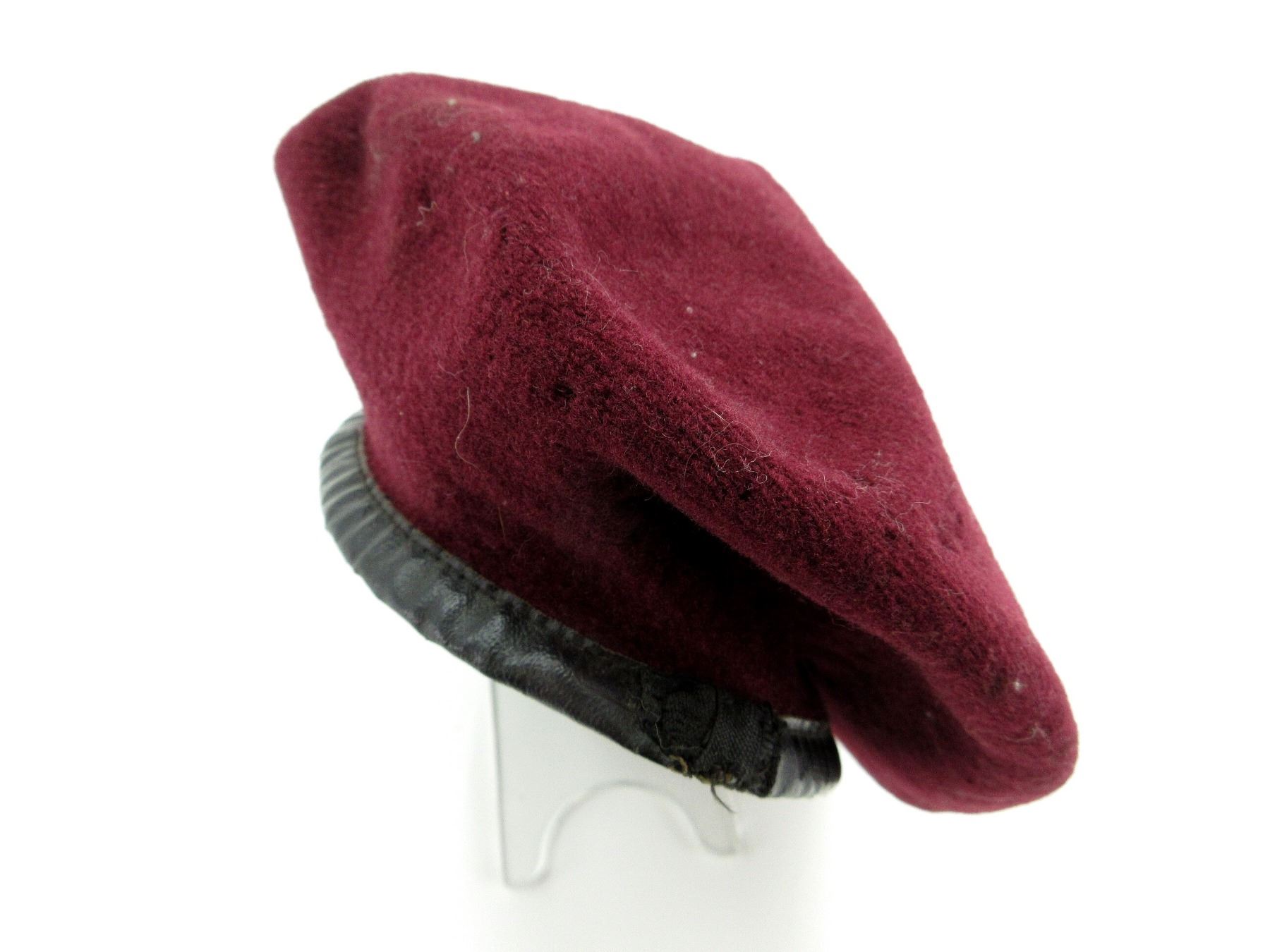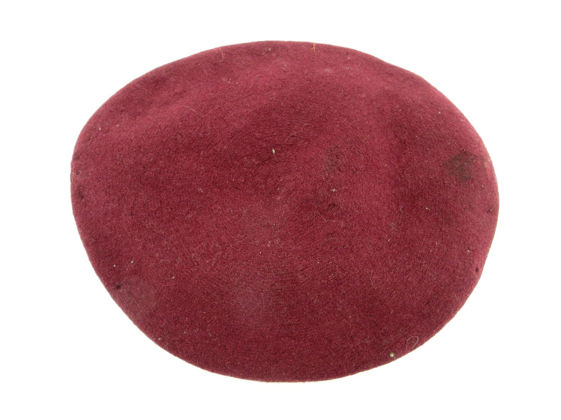(1) MAROON WOOL BERET, POSSIBLY 1ST CAN. PARA ?, CONSIGNER STATES "AIR TROOPER CANADIAN WWII BERET", NO VISIBLE MARKINGS, SHOWS AGE / WEAR / TEAR, APPROX. DIA. 6.75". SEE PHOTOS.