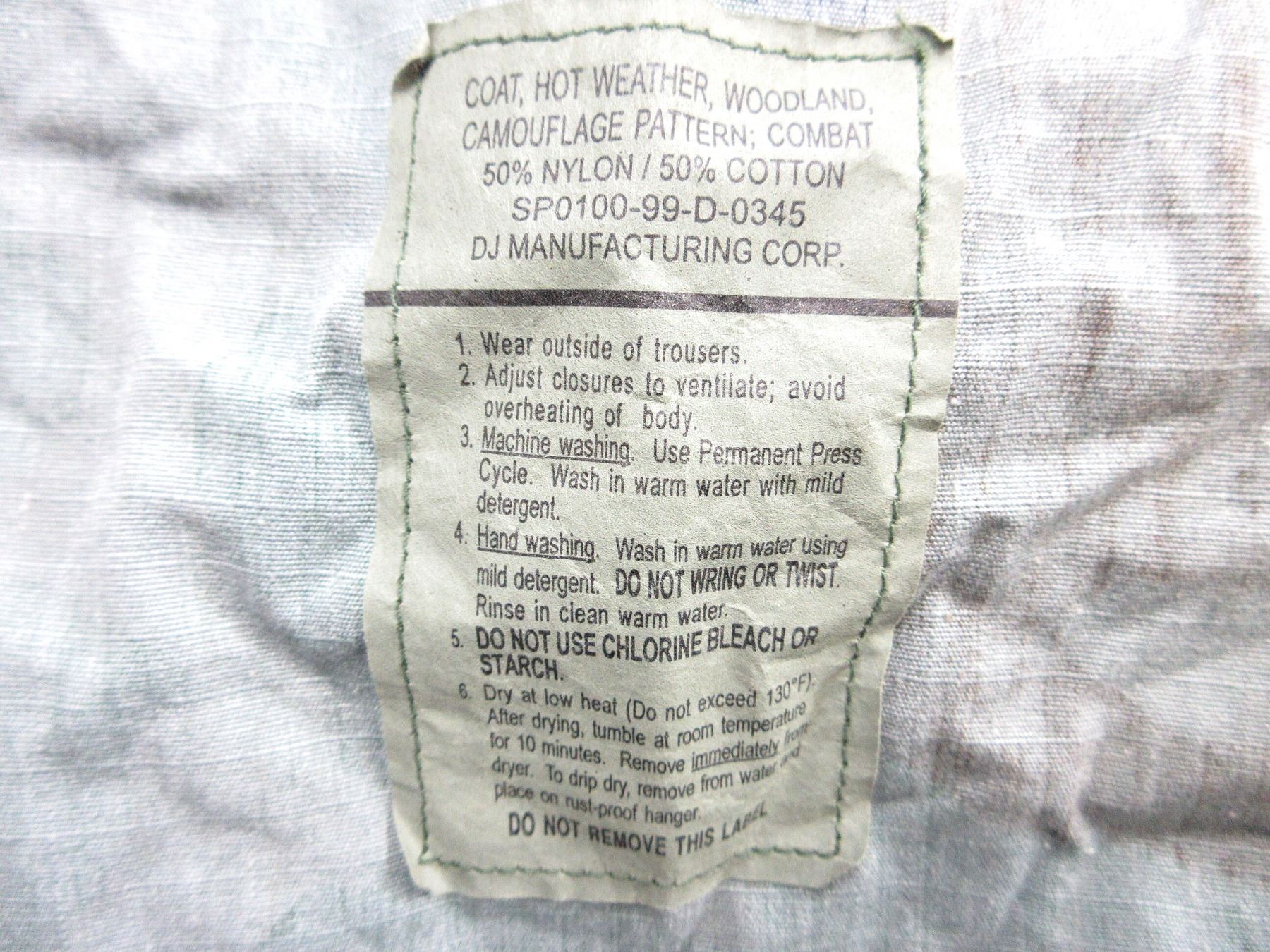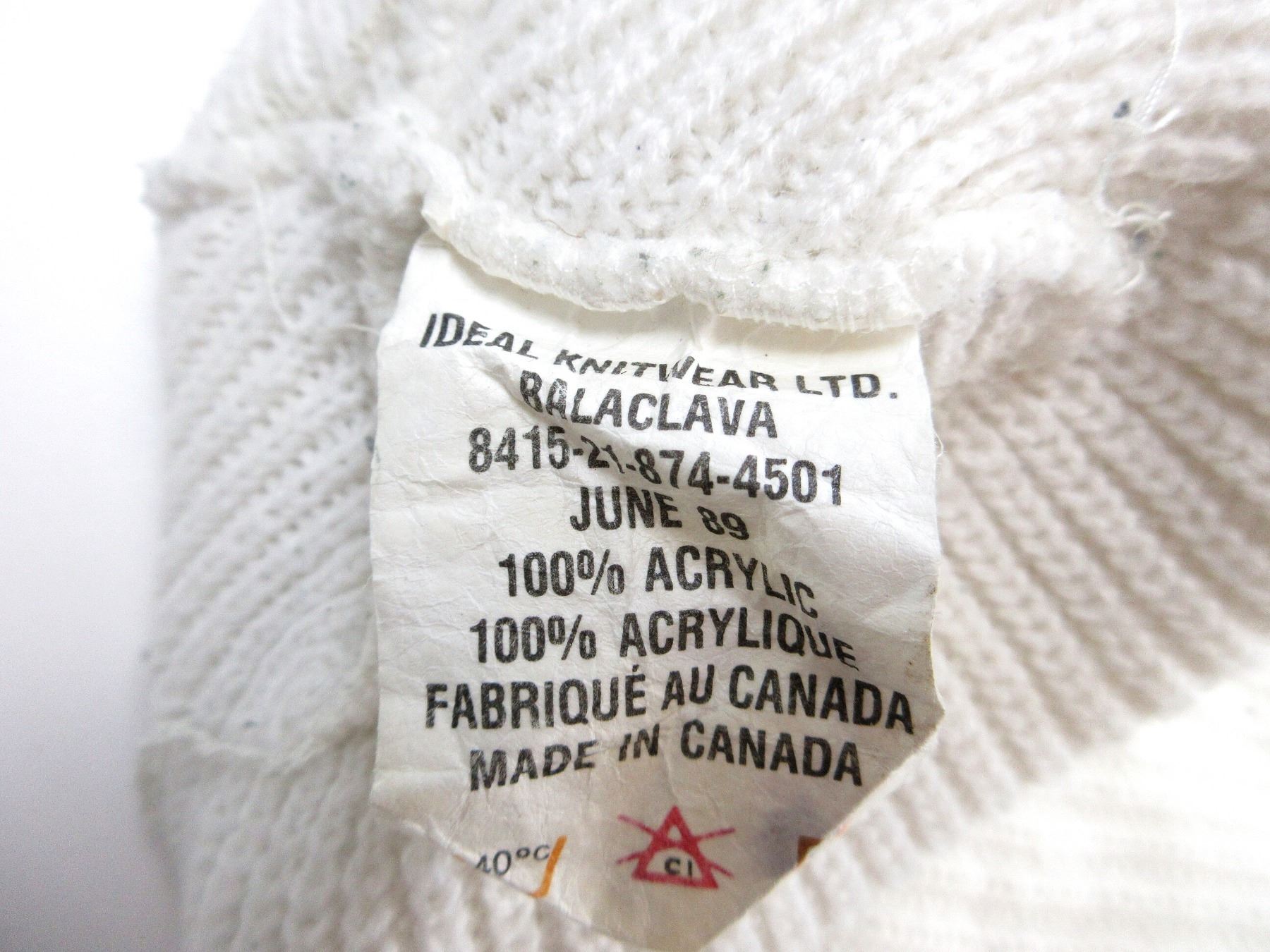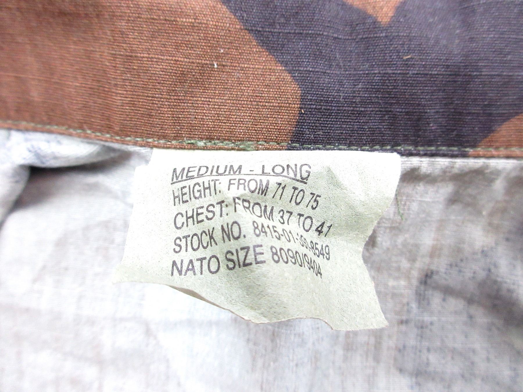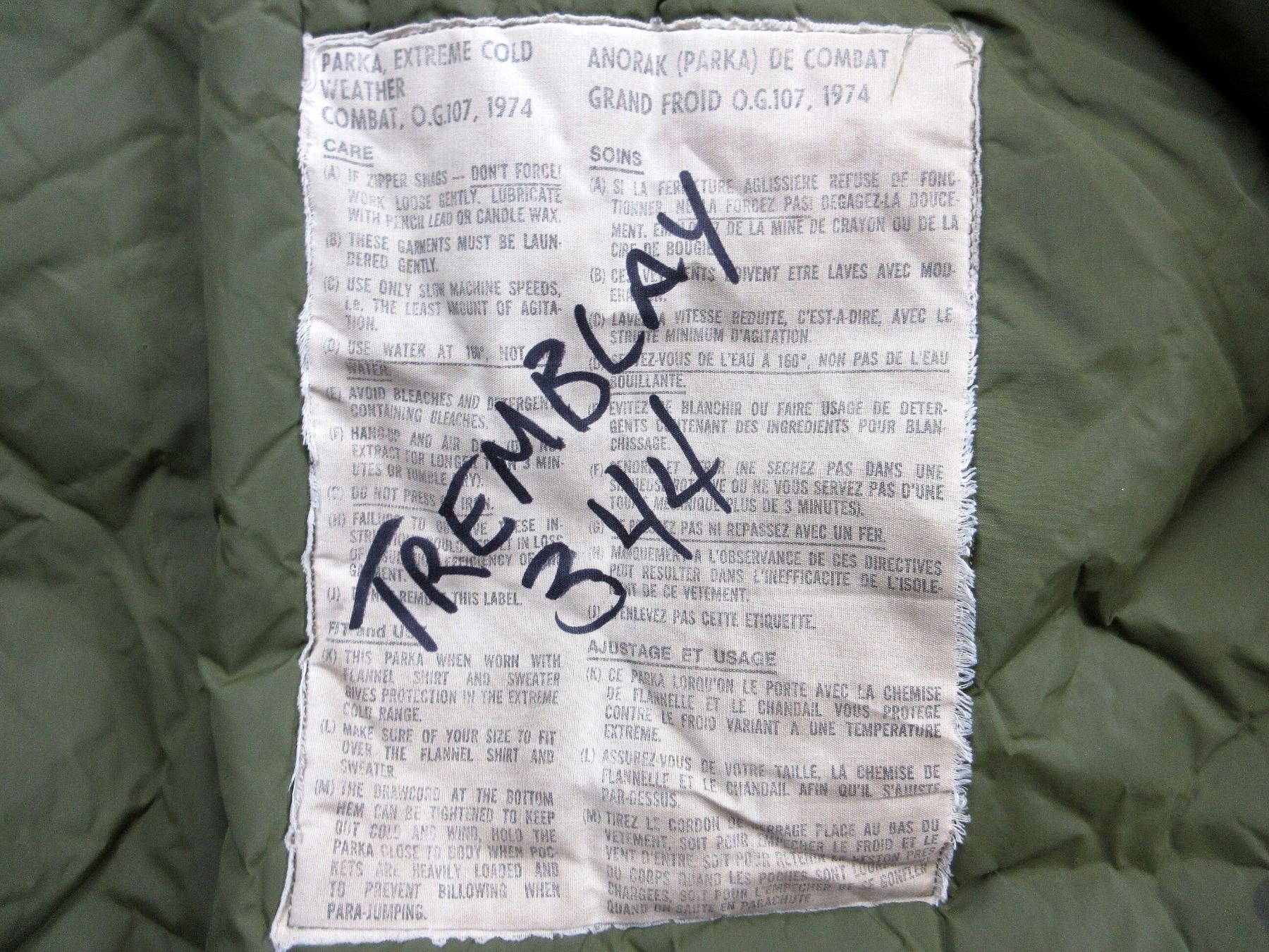 LOT INCLUDES; (1) CANADIAN MILITARY GREEN NYLON EXTREME COLD WEATHER COMBAT PARKA, SIZE 5 REGULAR-MEDIUM, VARIOUS LABELS / MARKINGS, SNAP CLOSURE, SHOWS AGE / WEAR / TEAR, (1) U.S. MILITARY WOODLAND CAMO HOT WEATHER COMBAT SHIRT, SIZE MEDIUM-LONG, VARIOUS LABELS / MARKINGS, BUTTON FRONT, SHOWS WEAR, (1) CANADIAN MILITARY WHITE ACRYLIC BALACLAVA, VARIOUS MARKINGS ON LABEL, SHOWS WEAR & (1) PAIR OF GREEN WOOL / ACRYLIC GLOVES, VARIOUS HAND-WRITTEN MARKINGS, SHOWS WEAR. SEE PHOTOS.