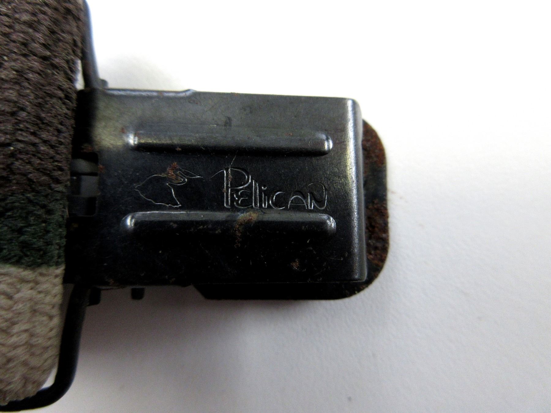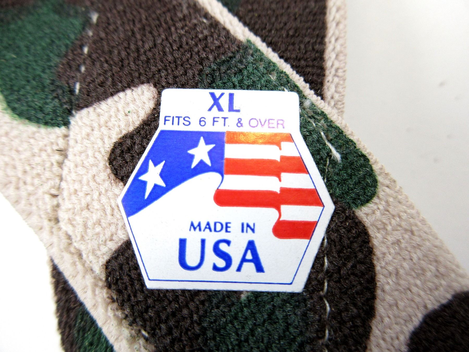 LOT INCLUDES; APPROX. (12) MILITARY STYLE CAMO ELASTIC SUSPENDERS, MOST WITH STICKERS MARKED: "XL, FITS 6FT & OVER, MADE IN USA", METAL CLIPS MARKED: "PELICAN", METAL FITTINGS, OAL APPROX. 46", ADJUSTABLE. SEE PHOTOS.