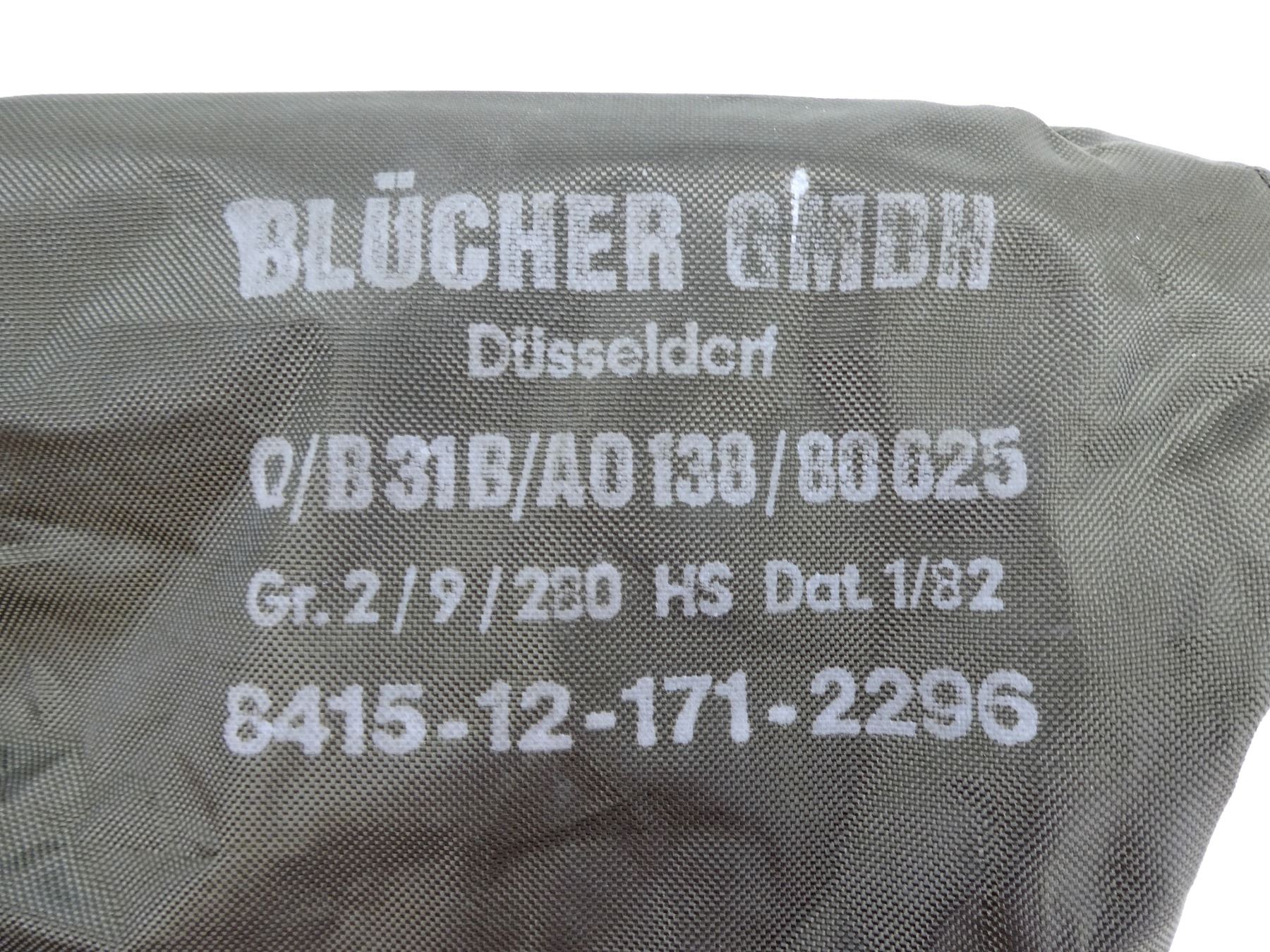 (1) GREEN NYLON, APPEARS NOS, IN CARRIER BAG, BAG MARKED: "BLUCHER GMBH, DUSSELDORF AS, DAT. 1 / 82, 8415-12-171-2296", ETC., APPROX. SIZE: MEDIUM. SEE PHOTOS.