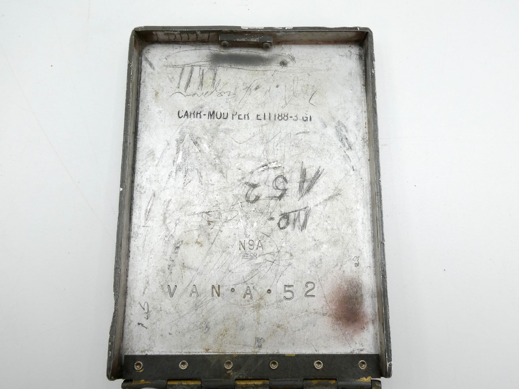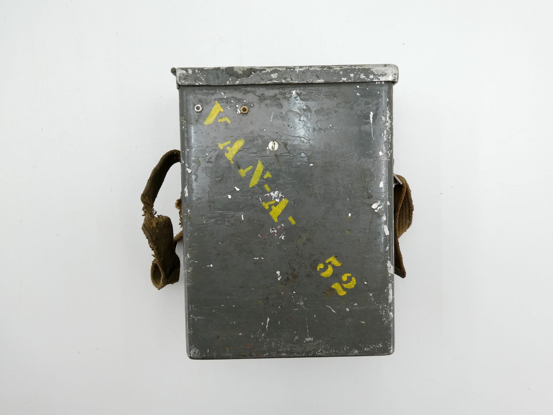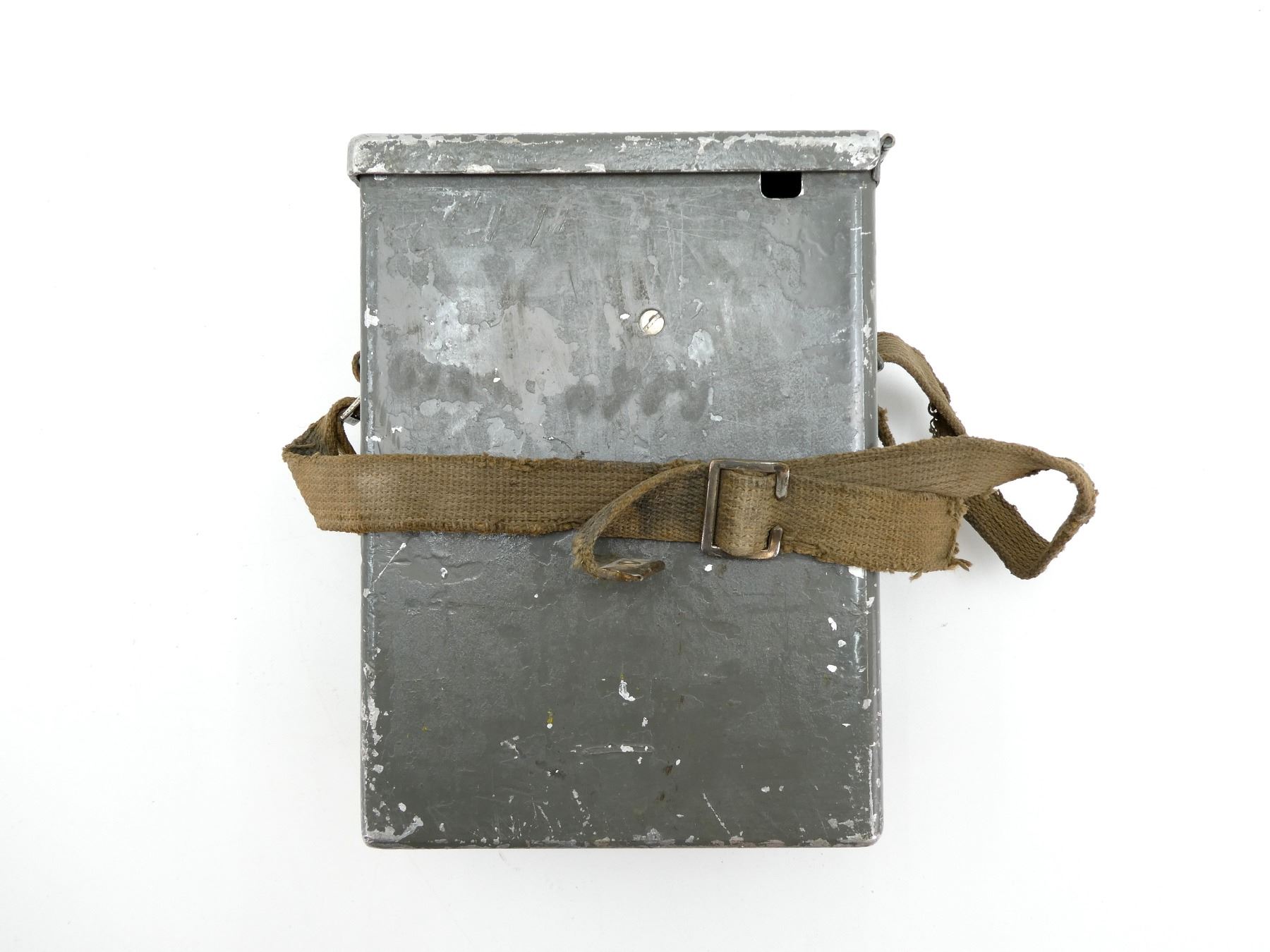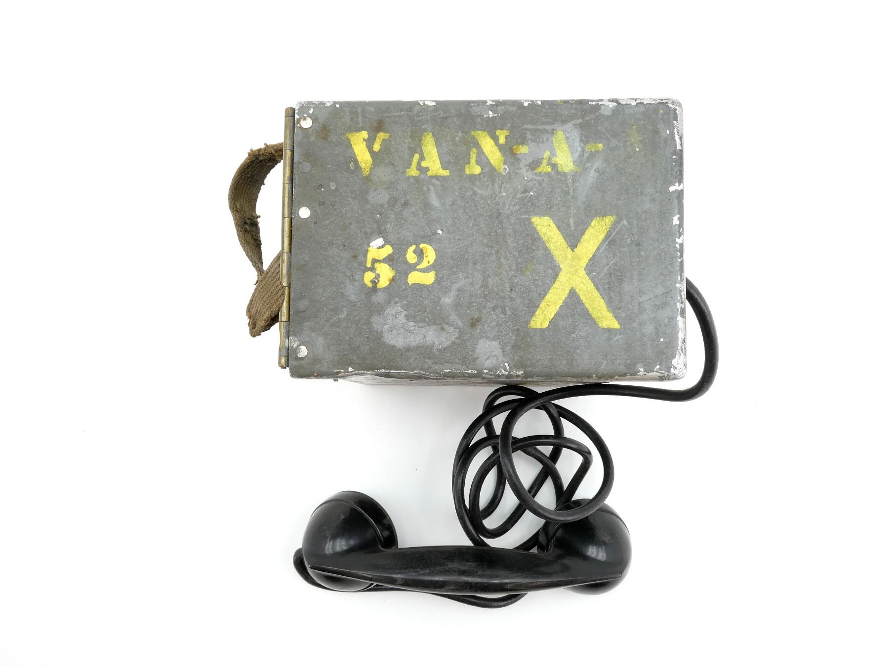 (1) METAL CONSTRUCTION WITH METAL FITTINGS, TAN CANVAS CARRY STRAP, BAKELITE RECEIVER & CABLES, CASE MARKED: "N9A", RECEIVER MARKED: "NORTHERN ELECTRIC, FX, COMPANY LIMITED", METAL CASE MARKED: VAN-A-52, VARIOUS FAINT / UN-CLEAR MARKINGS, APPROX. 9.25" X 6.75" X 5". SEE PHOTOS.