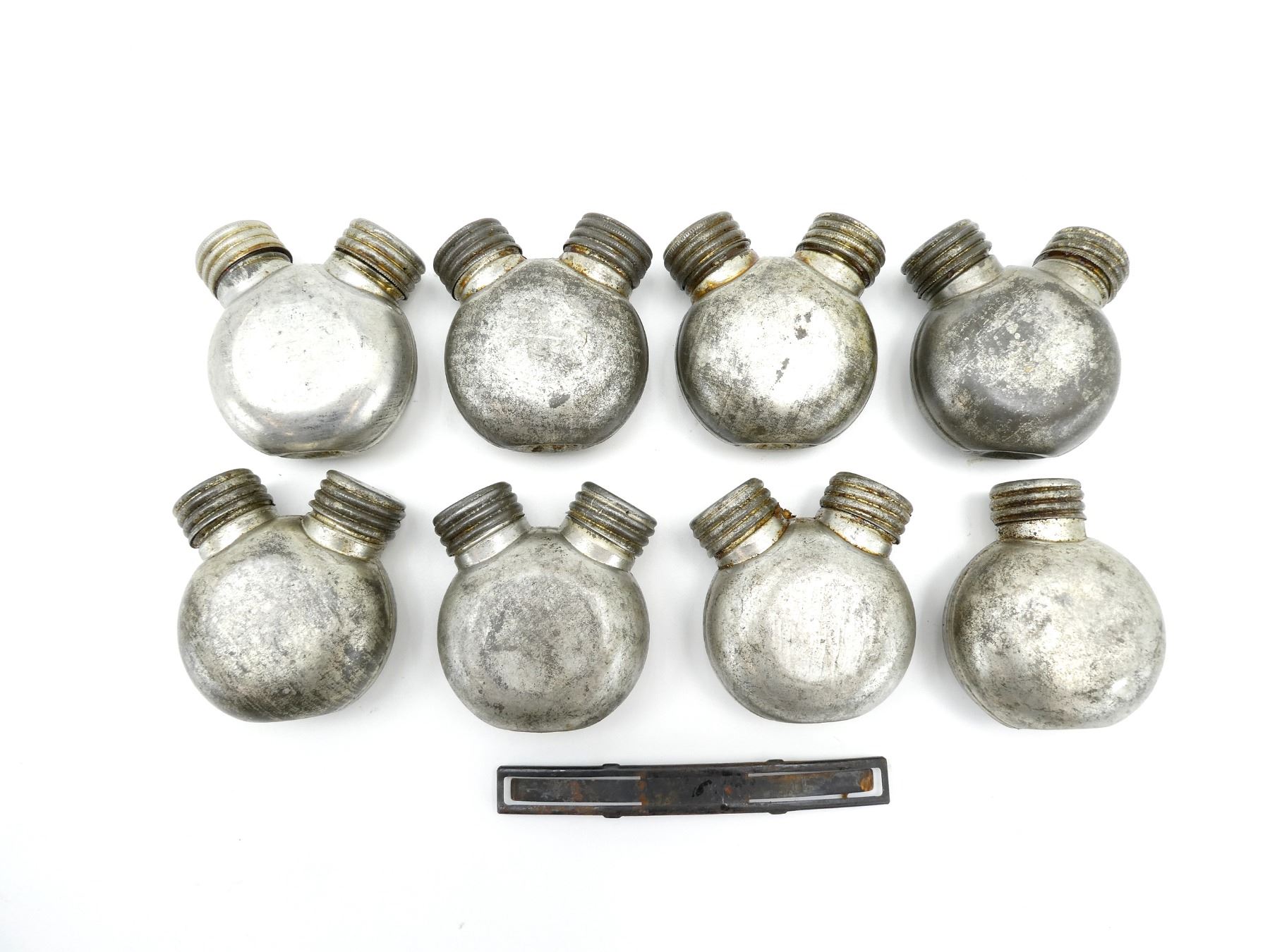 LOT INCLUDES; (8) STEEL SINGLE / DOUBLE-SPOUTED OILERS, VARIOUS MARKINGS, COVERED IN GREASE & (1) CZECH SKS 7.62X39MM, 10-RND STRIPPER CLIP, VARIOUS MARKINGS. SEE PHOTOS.