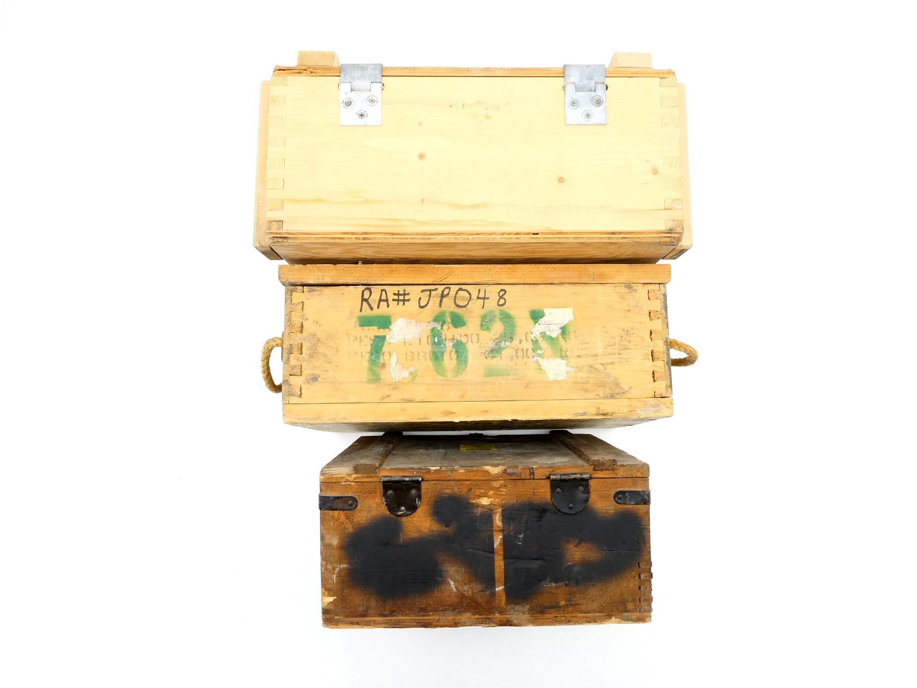 ASSORTED MILITARY / MILITARY STYLE WOODEN AMMO CRATE LOT