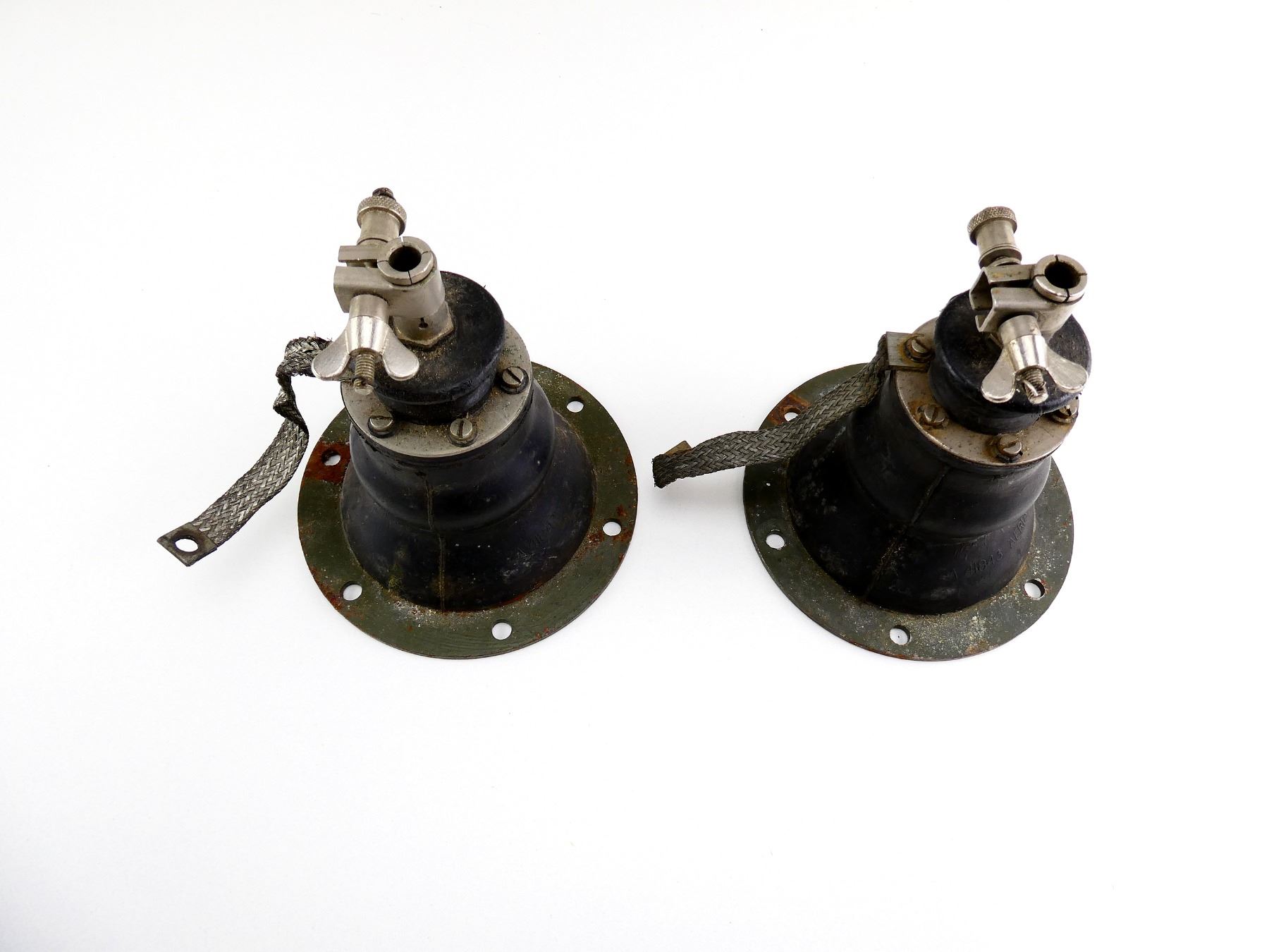 LOT INCLUDES; (2) ANTENNA BASES FOR THE WIRELESS #19 RADIOS, BOTH MARKED: "ZA 41843 AERIAL BASE NO. 28", METAL / RUBBER CONSTRUCTION, MOUNTS TO VEHICLE, APPROX. 5" DIA., OALS APPROX. 5 7/8". SEE PHOTOS.