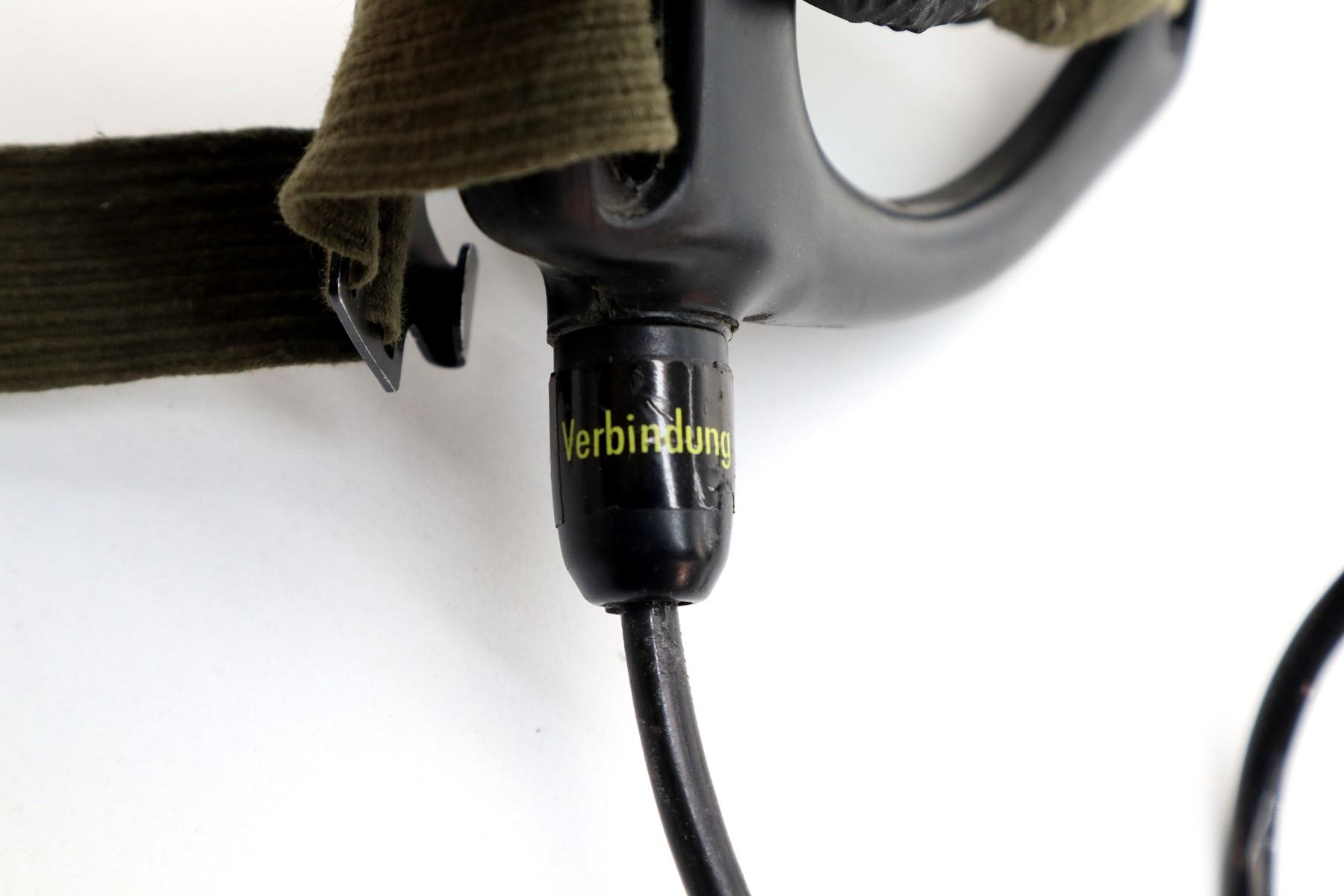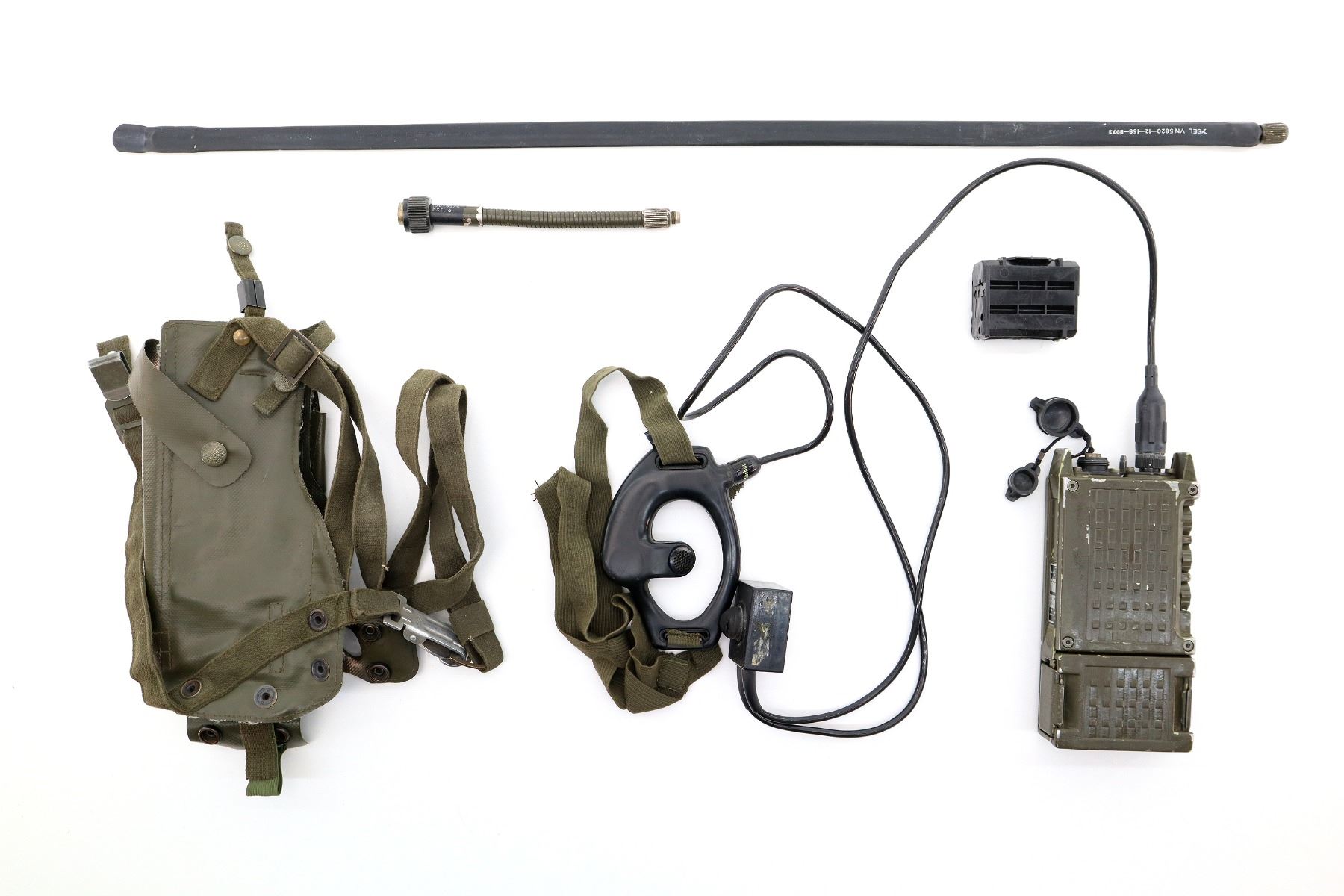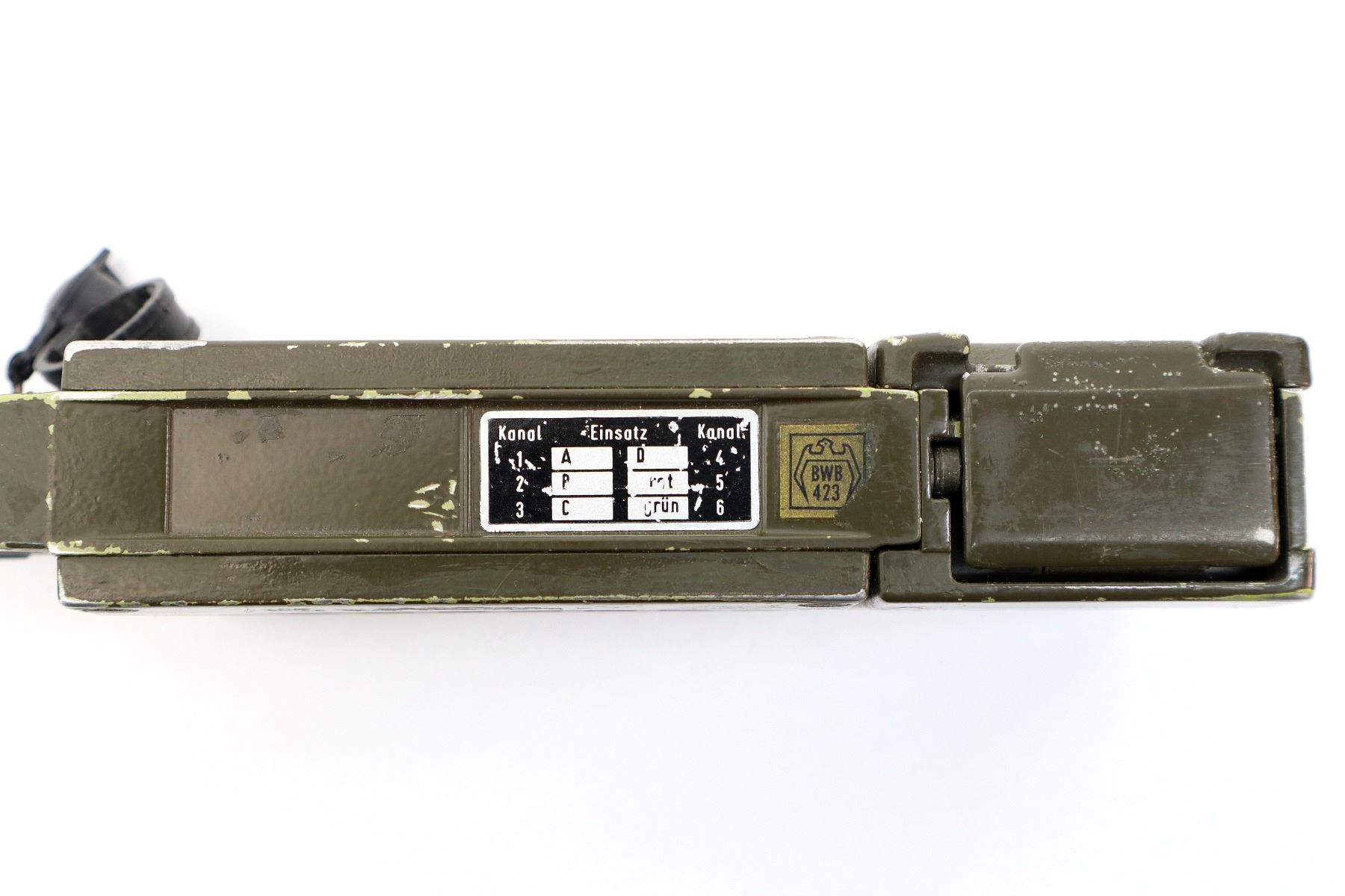 (1) SEM-52A RADIO WITH TAPE WHIP ANTENNA, MICROPHONE AND/OR EAR PIECE & GREEN RUBBER / NYLON CARRY CASE, UN-TESTED, VARIOUS MARKINGS ON RADIO, MISSING ONE DATA PLATE, MICROPHONE AND/OR EAR PIECE MARKED: "VERBINDUNG NICHT LOSBAR", VARIOUS FAINT / UN-CLEAR MARKINGS ON HEAD BAND, GREEN RUBBER / NYLON CASE WITH CANVAS STRAPS, CASE MARKED: "VERS.NR., 5820-12-158-8976, SEL" WITH PROOF MARK, PROOF MARK ON METAL CLIP OF STRAP, ANTENNAS MARKED: "SEL VN 5820-12-158-8973" & "5820-12-158-8974, SEL". SEE PHOTOS.