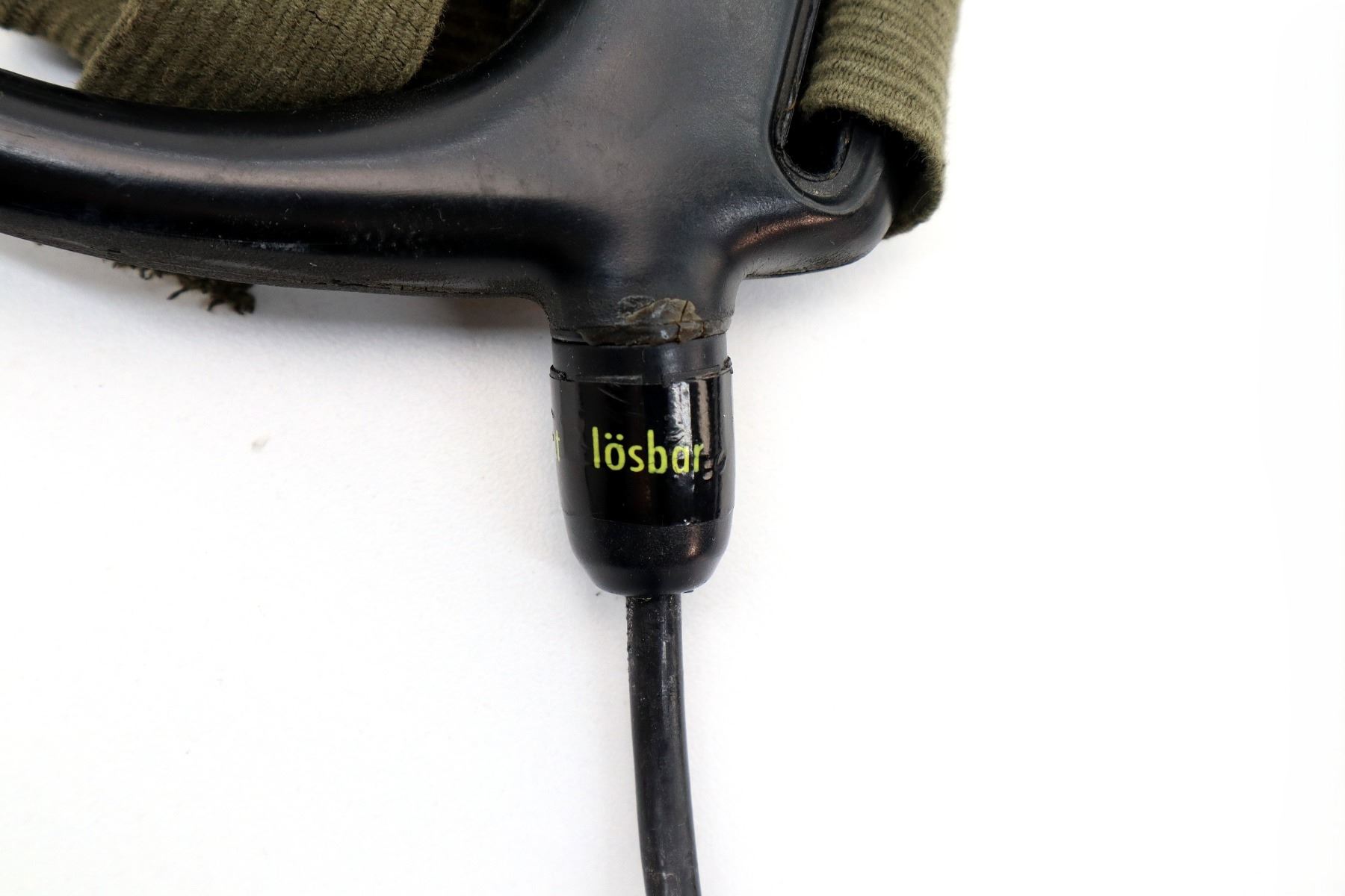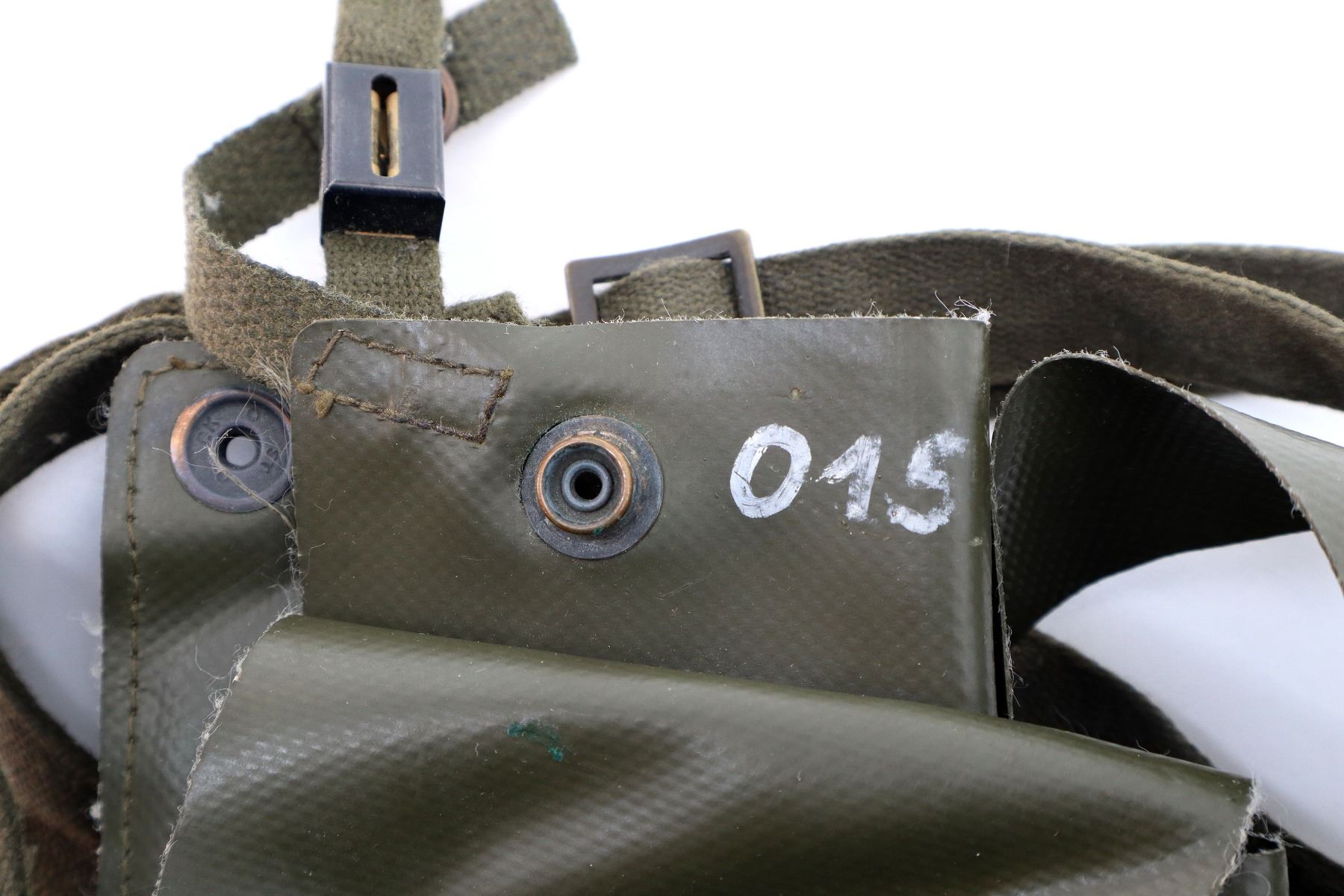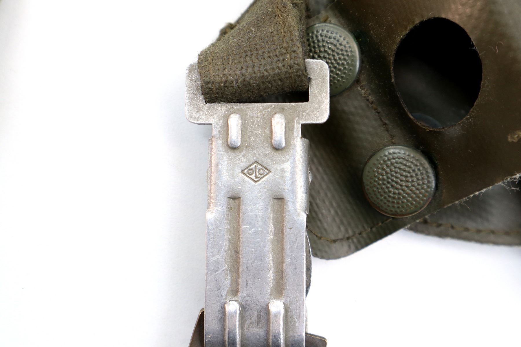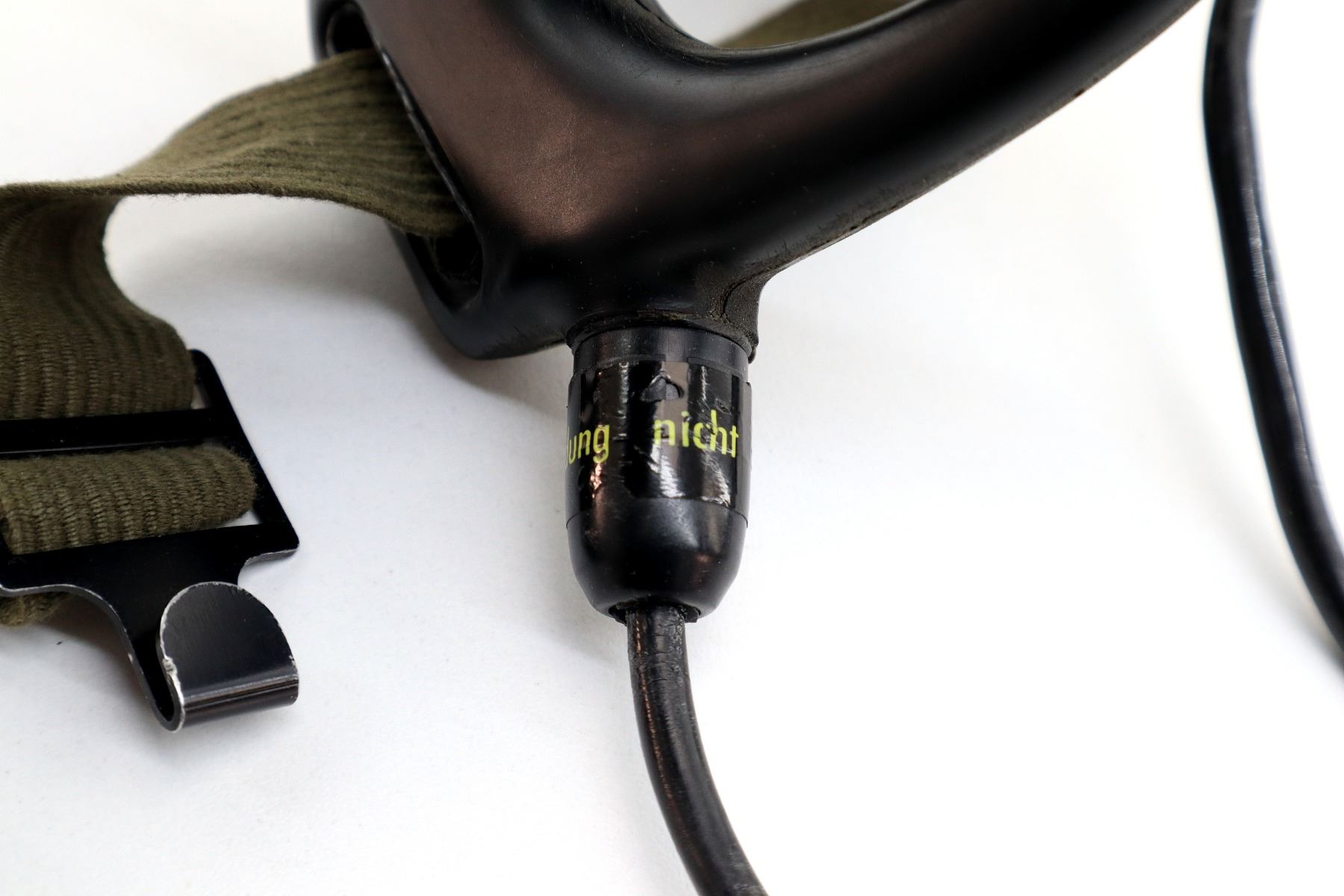 (1) SEM-52A RADIO WITH TAPE WHIP ANTENNA, MICROPHONE AND/OR EAR PIECE & GREEN RUBBER / NYLON CARRY CASE, UN-TESTED, VARIOUS MARKINGS ON RADIO, MISSING ONE DATA PLATE, MICROPHONE AND/OR EAR PIECE MARKED: "VERBINDUNG NICHT LOSBAR", VARIOUS FAINT / UN-CLEAR MARKINGS ON HEAD BAND, GREEN RUBBER / NYLON CASE WITH CANVAS STRAPS, CASE MARKED: "VERS.NR., 5820-12-158-8976, SEL" WITH PROOF MARK, PROOF MARK ON METAL CLIP OF STRAP, ANTENNAS MARKED: "SEL VN 5820-12-158-8973" & "5820-12-158-8974, SEL". SEE PHOTOS.