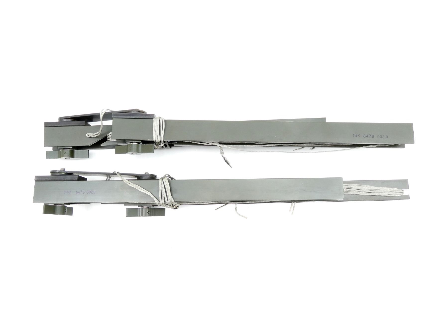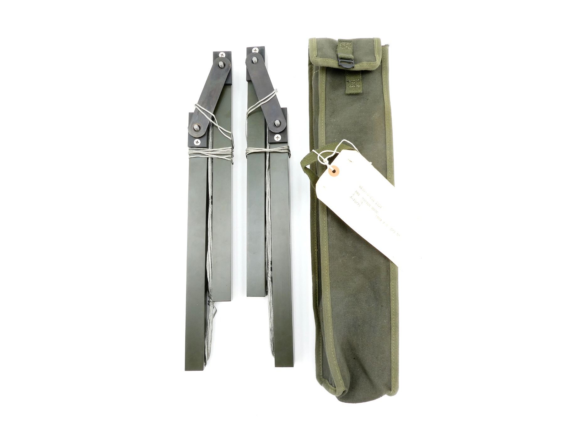 (1) SETS OF MT-2786/PCR-47 ELECTRICAL EQUIPMENT LEGS, DATA PLATE ON ONE MARKED: "MT-2786/PCR-47 LEG, ELECTRICAL EQUIPMENT, CONTRACT MOOO27-67-C-0048, SER: D548, MFR: 13499, U.S.", "549 6478 002B" & VARIOUS OTHER MARKINGS, DATA PLATE ON OTHER MARKED: "MT-2786/PCR-47 LEG, ELECTRICAL EQUIPMENT, CONTRACT MOOO27-67-C-0048, SER: D547, MFR: 13499, U.S.", "549 6478 002B" & VARIOUS OTHER MARKINGS, OALS WHEN FOLDED APPROX. 17 5/8", GREEN CANVAS CASE MARKED: "549 6495 004 OD", WITH TAG ATTACHED MARKED: "8105-00-766-1834, BAG COTTON DUCK, 1 EA, ITEM # 6 C/O 20, A-10/74". SEE PHOTOS.