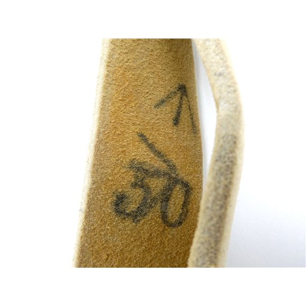 (1) WHITE BUFF LEATHER SLING WITH LEATHER THONG, CLEARLY INK MARKED: "30" WITH BROAD ARROWS, OAL APPROX. 44 7/8", ADJUSTABLE. SEE PHOTOS.
