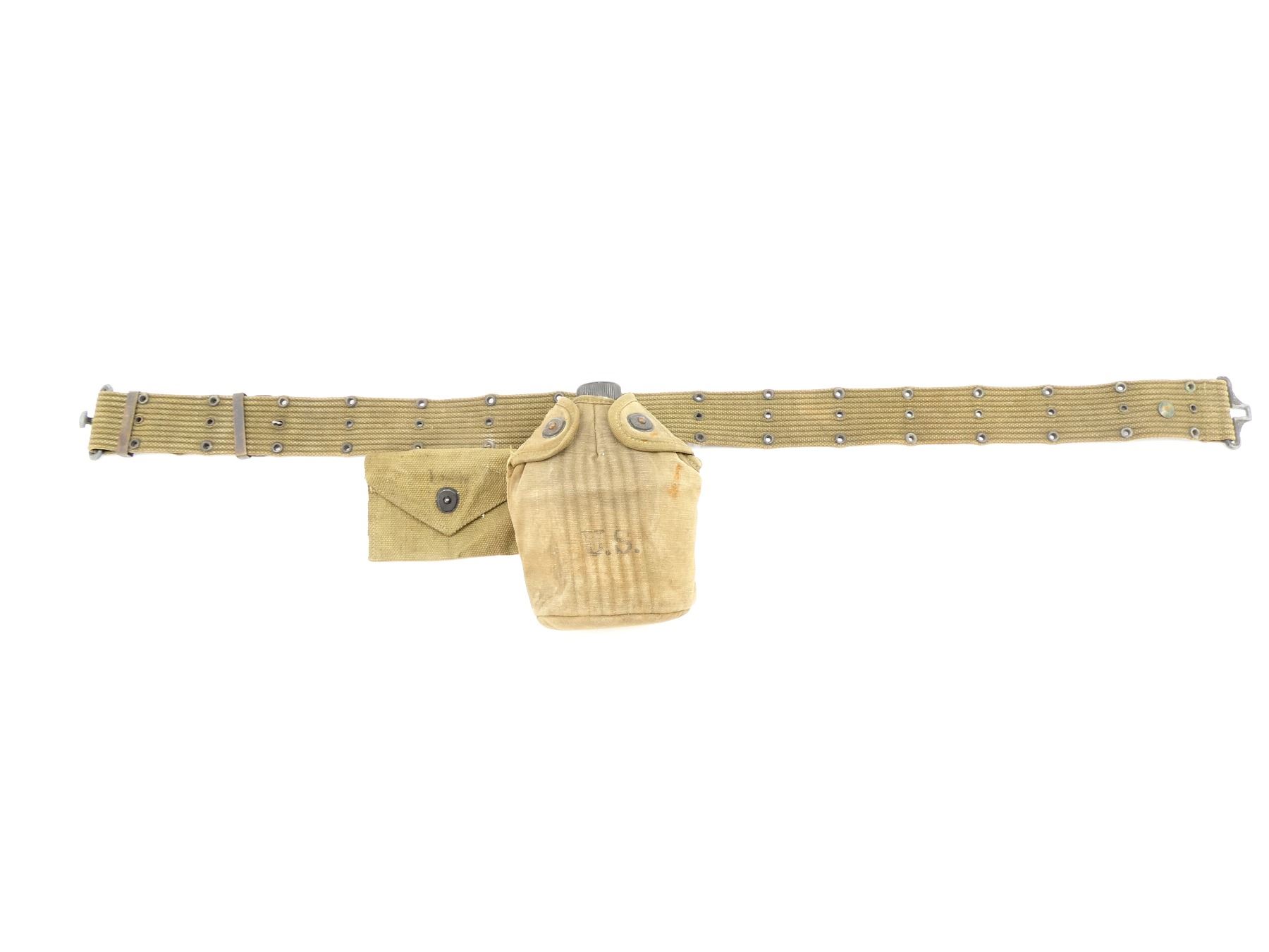 Lot 29022 WWII U.S. MILITARY PISTOL BELT, AMMO POUCH AND CANTEEN LOT