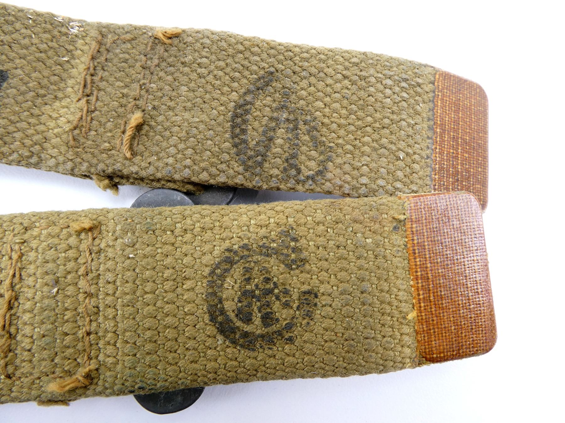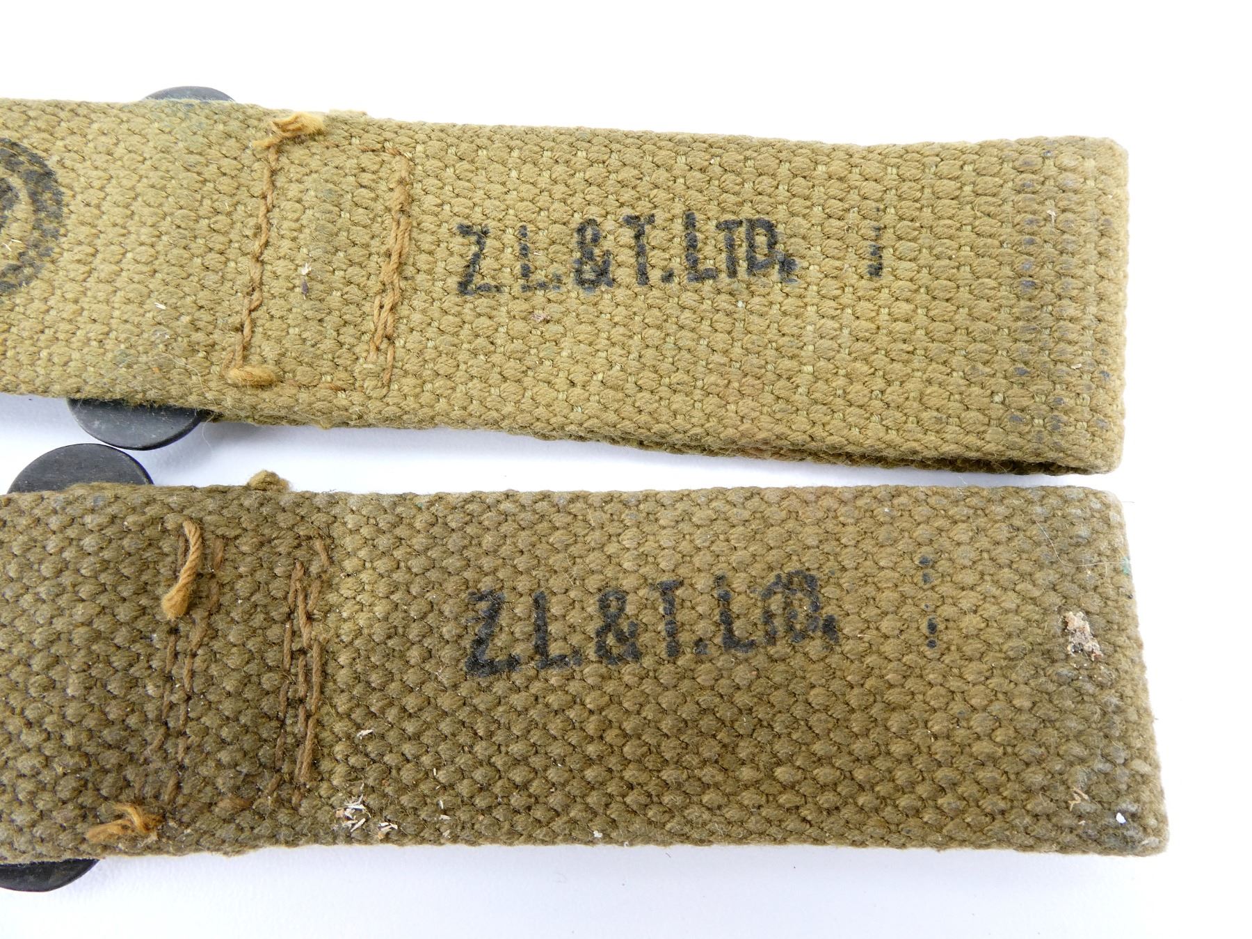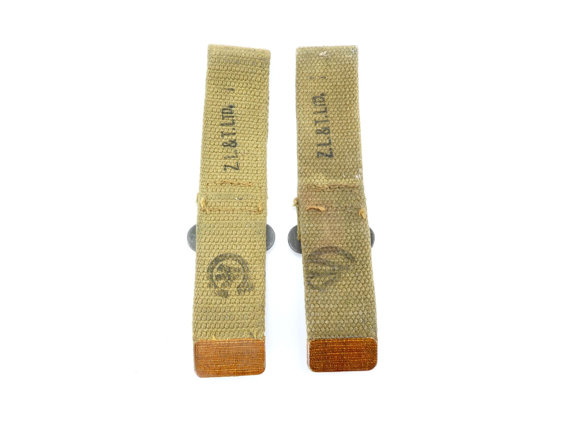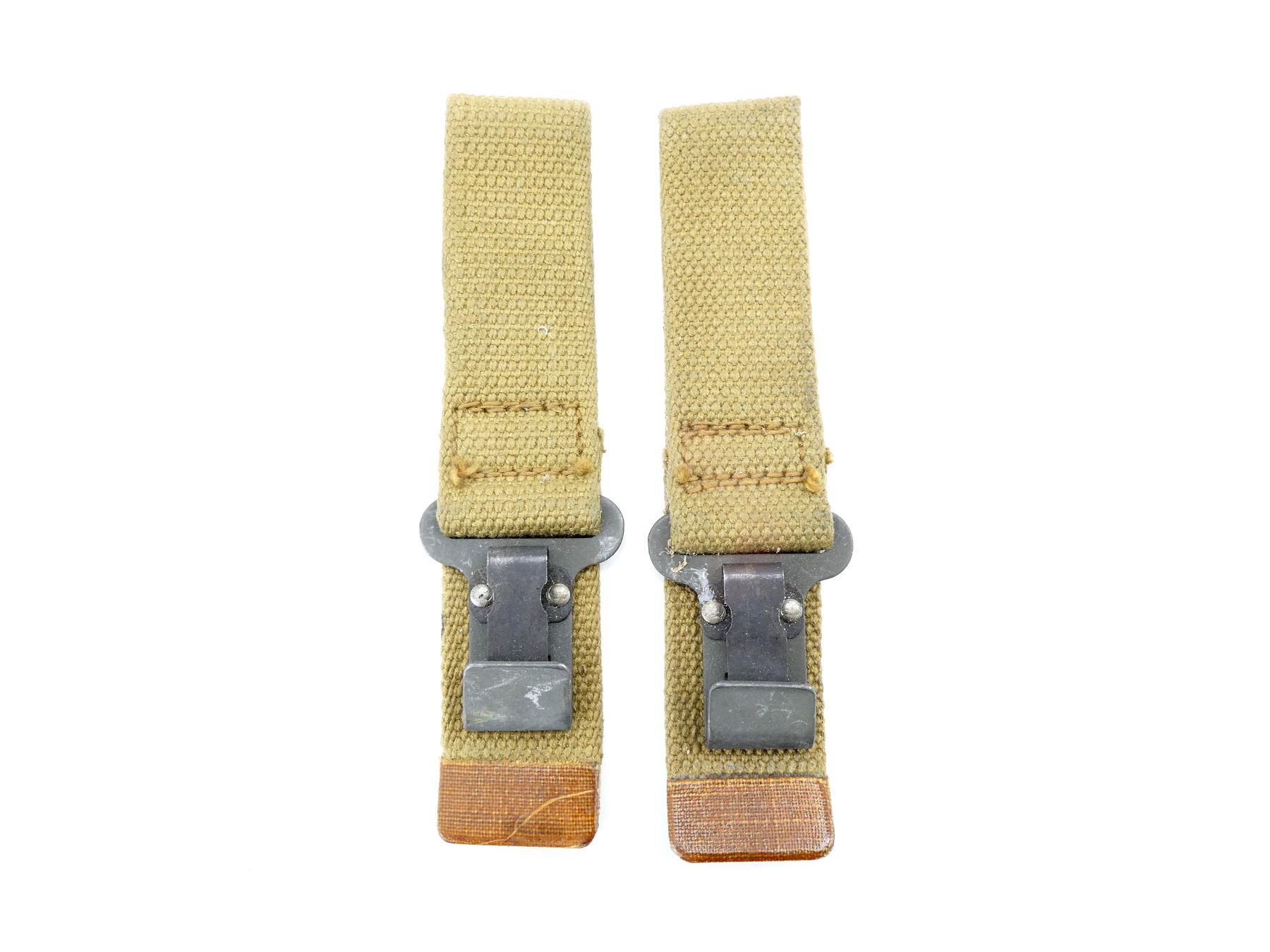 LOT INCLUDES; (2) P37 TAN WEB WITH METAL CLIP, MARKED: "Z.L.&T.LTD. (ZEPHA LOOM & TEXTILES)" & C-BROAD ARROW (ONE IS EARLY VERSION), OAL APPROX. 6 3/8" & 6.5". SEE PHOTOS.