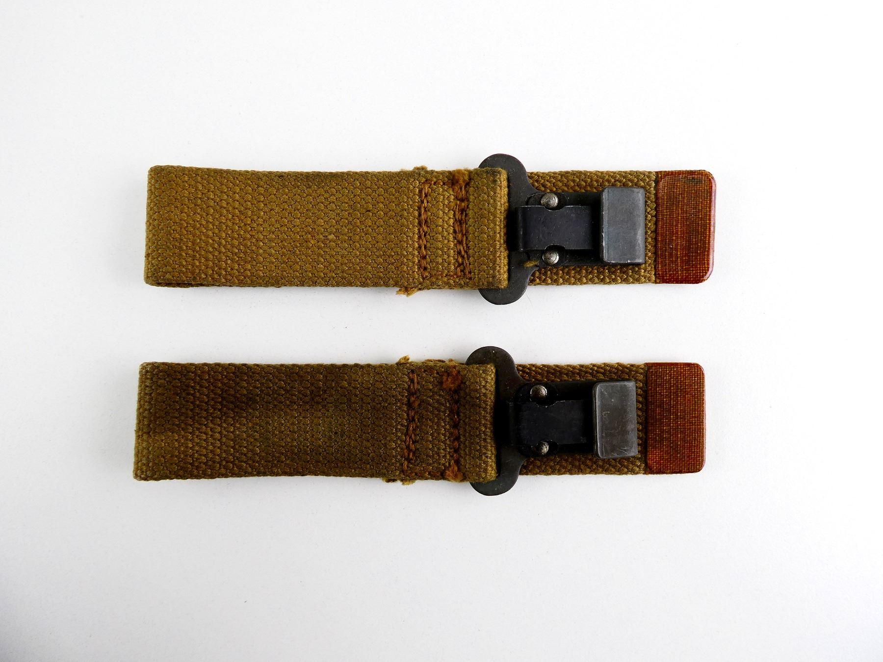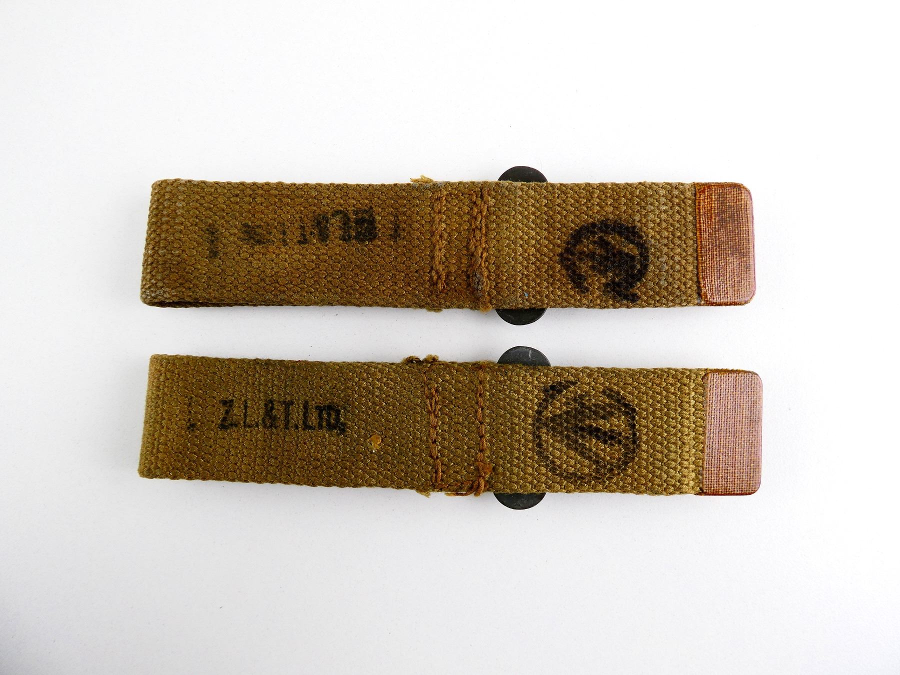 LOT INCLUDES; (2) P37 TAN WEB WITH METAL CLIP, MARKED: "Z.L.&T.LTD. (ZEPHA LOOM & TEXTILES)" & C-BROAD ARROW (ONE IS EARLY VERSION), OALS APPROX. 6.25". SEE PHOTOS.