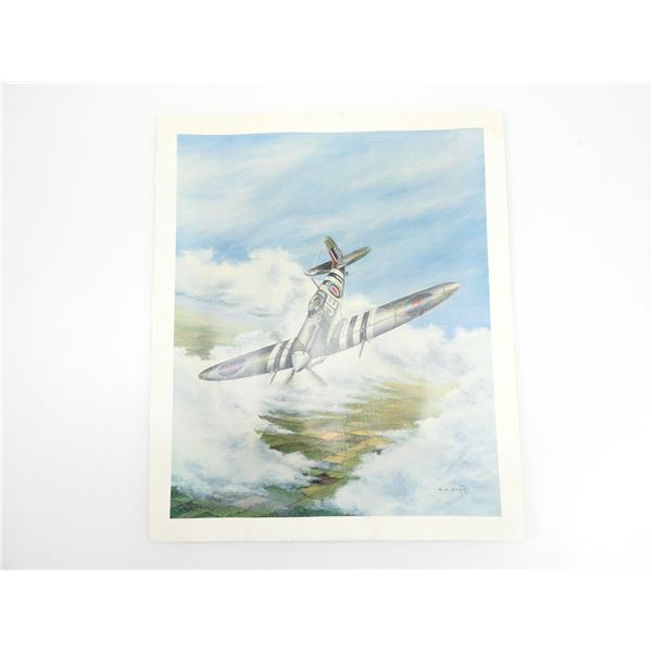 LOT INCLUDES; (1) PRINT OF WWII CANADIAN SPITFIRE, NO TITLE ON PRINT, BY W.K. BARNES, SHOWS WEAR / TEAR (RIPPLING, SLIGHT WATER DAMAGED, CREASING ALONG EDGES), APPROX. 29.5" X 24.75" & (1) PRINT OF WWII BRITISH AVRO LANCASTER, NO TITLE ON PRINT, BY W.K. BARNES, SHOWS WEAR / TEAR (RIPPLING, SLIGHT WATER DAMAGED, CREASING ALONG EDGES), APPROX. 33 1/8" 25 1/8". SEE PHOTOS.
