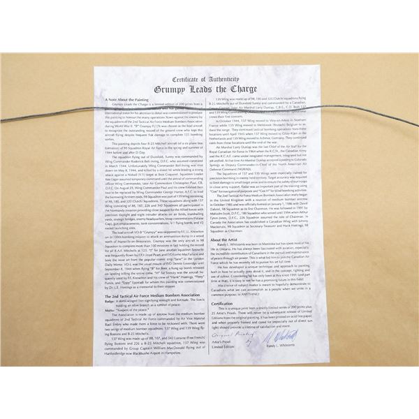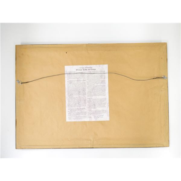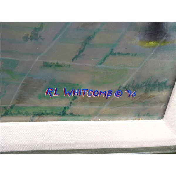 (1) BY RL WHITCOMB, SIGNED BY ARTIST, WITH CERTIFICATE OF AUTHENTICITY, CERTIFICATE MARKED: "ORIGINAL PAINTING" WITH SIGNATURE OF ARTIST, CERTIFICATE HAS INFORMATION ABOUT THE PAINTING, ARTIST, CERTIFICATION, ETC., COPYRIGHT 1996, FRAME APPROX. 30 1/8" X 20.5". SEE PHOTOS.