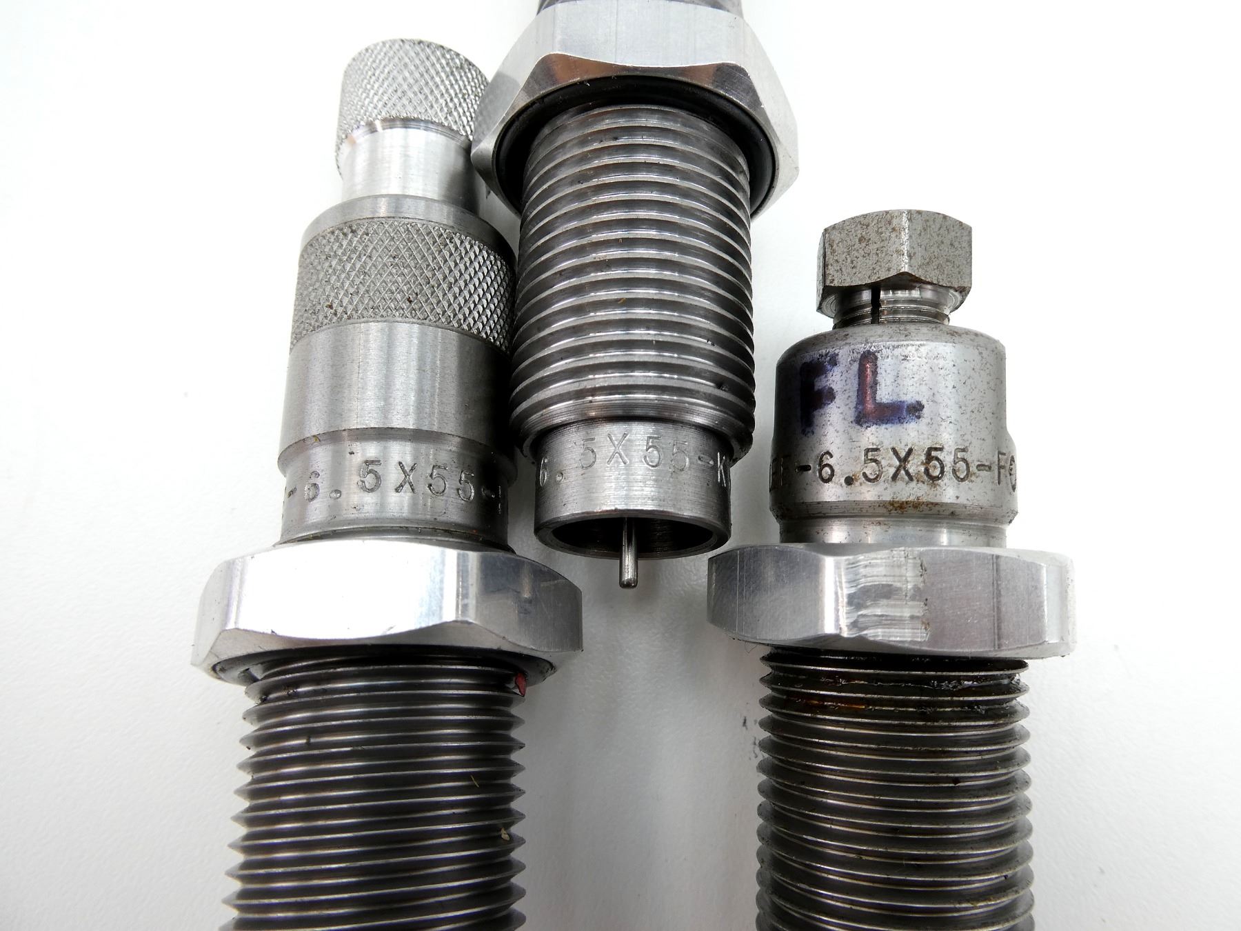 LOT INCLUDES; (1) RCBS .308 WIN 2-PIECE RELOADING DIES, (1) LEE .308 WIN 1-PIECE RELOADING DIE & (1) LEE 6.5X55 SWEDISH MAUSER 4-PIECE COLLET RELOADING DIES WITH #3 SHELL HOLDER. SEE PHOTOS.