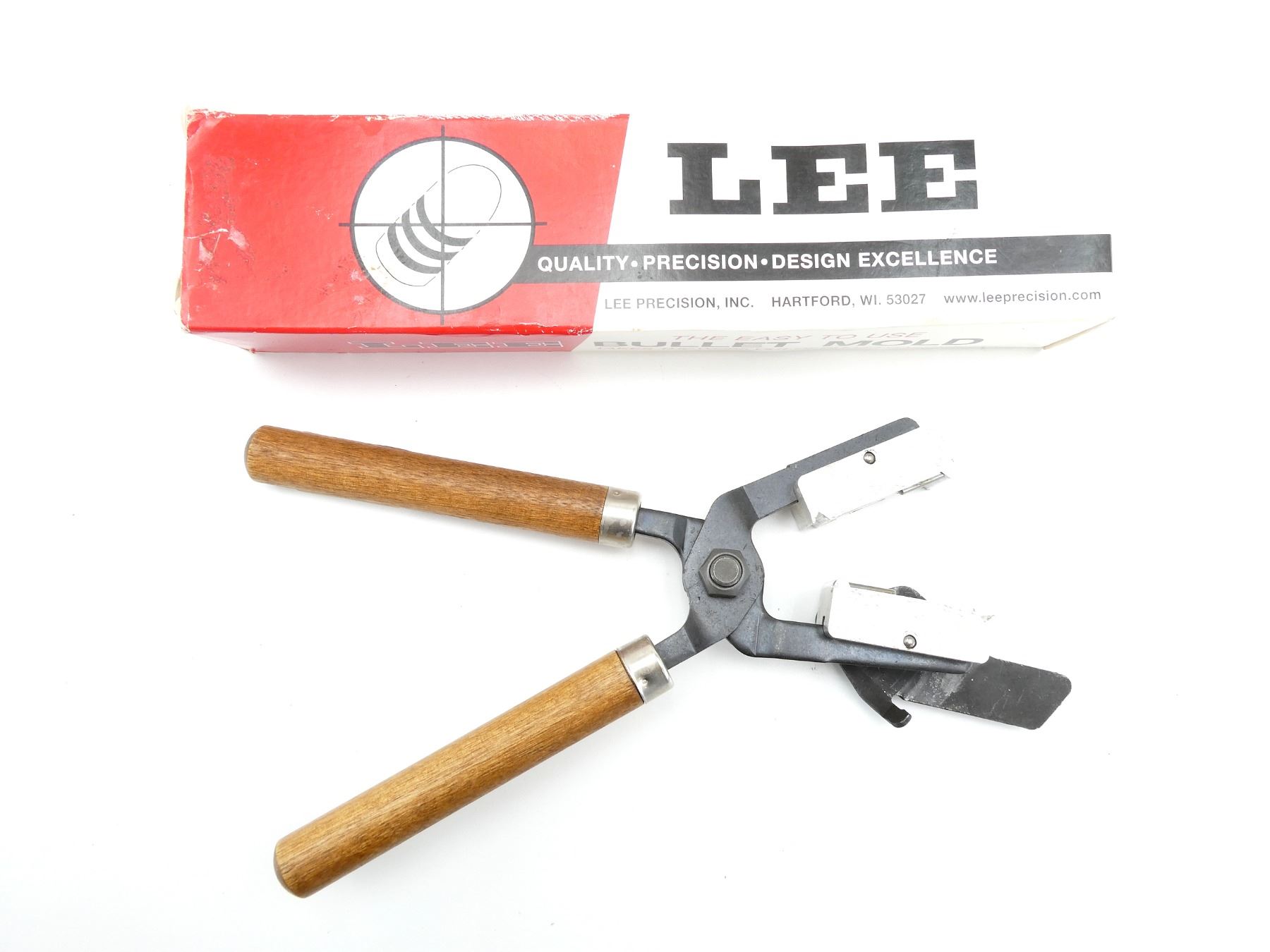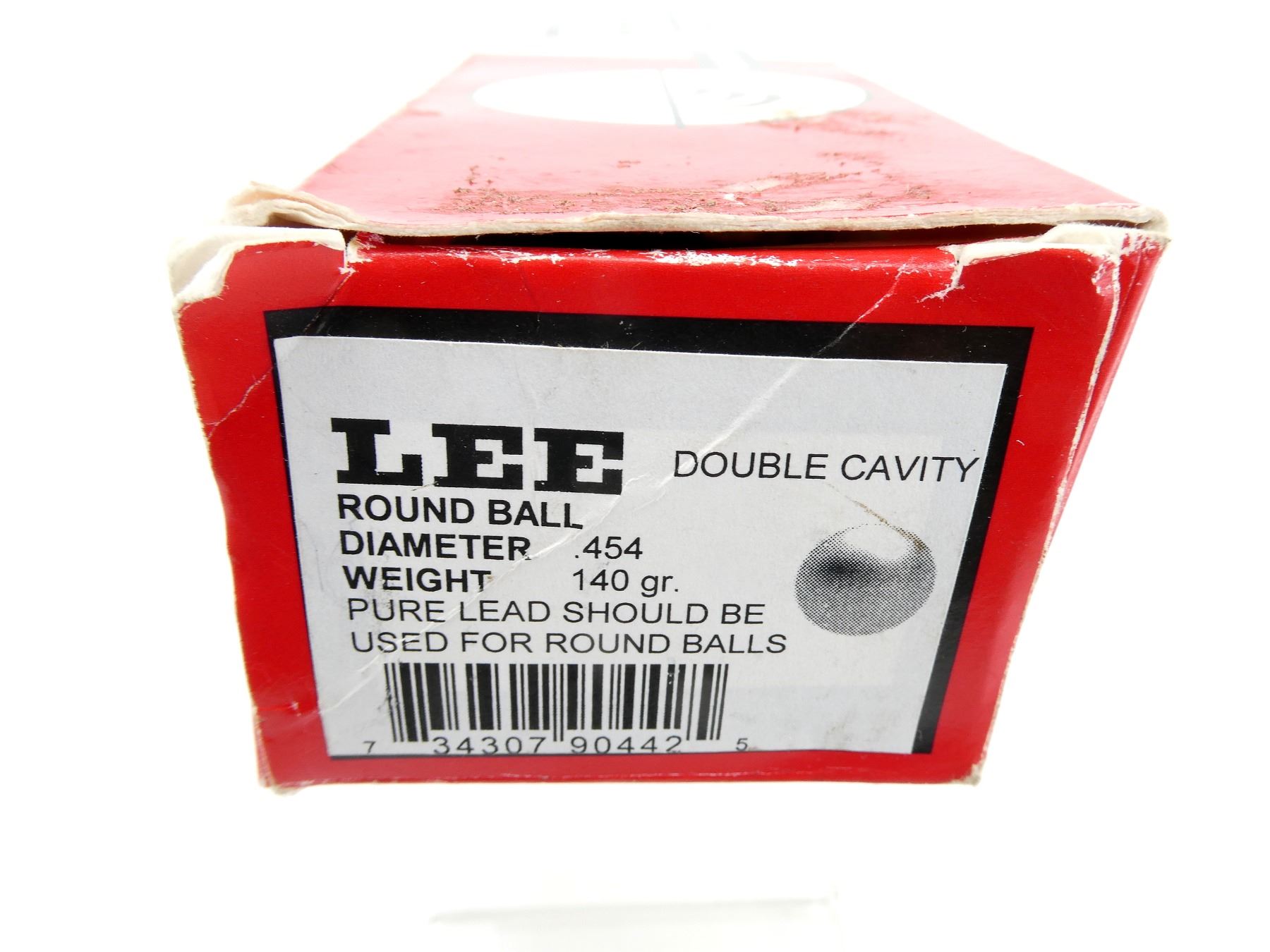 LOT INCLUDES; (1) LEE .454 DOUBLE-CAVITY ROUND BALL MOLD WITH WOOD HANDLES ATTACHED, WITH ORIGINAL PACKAGING. SEE PHOTOS.