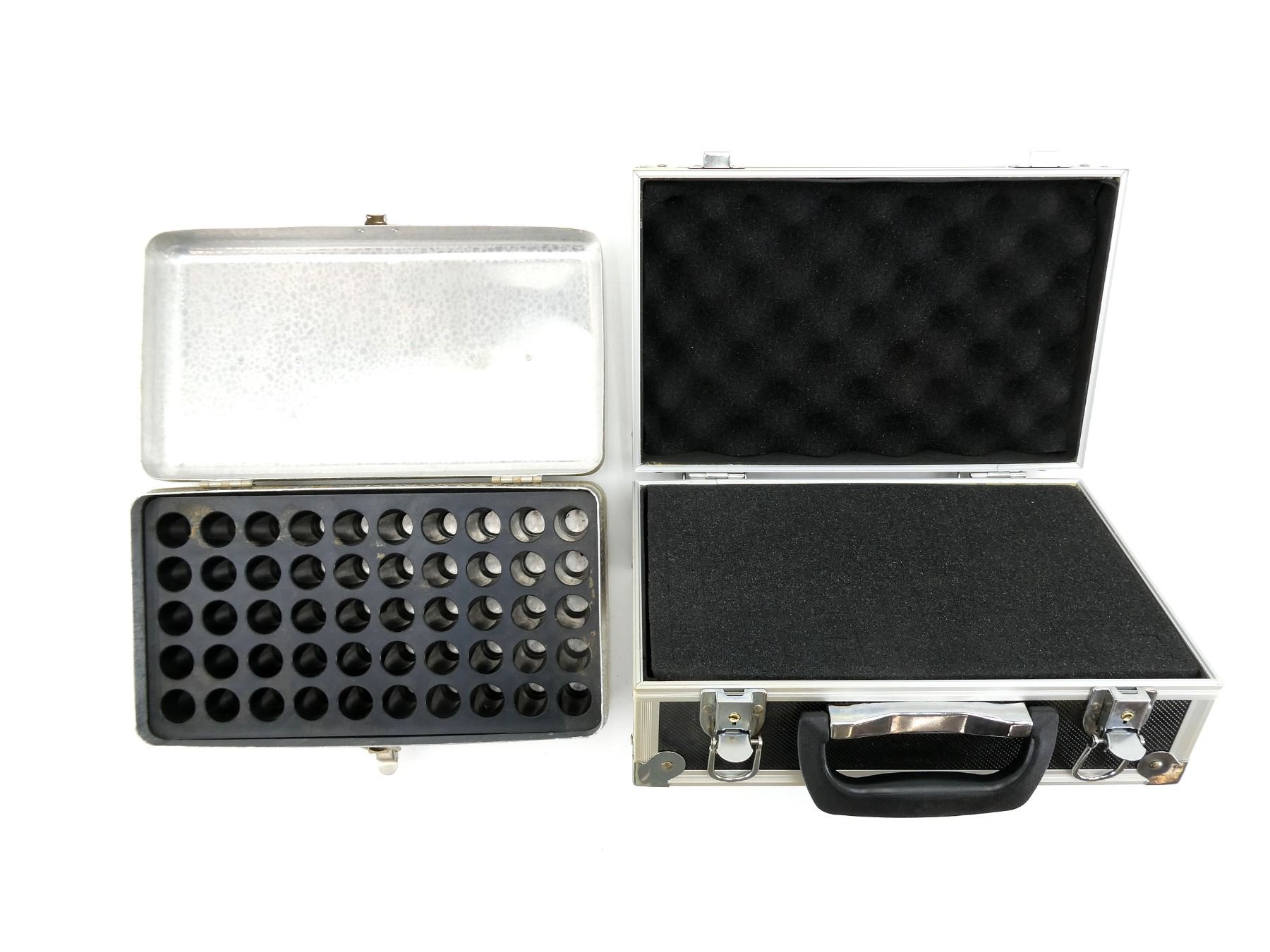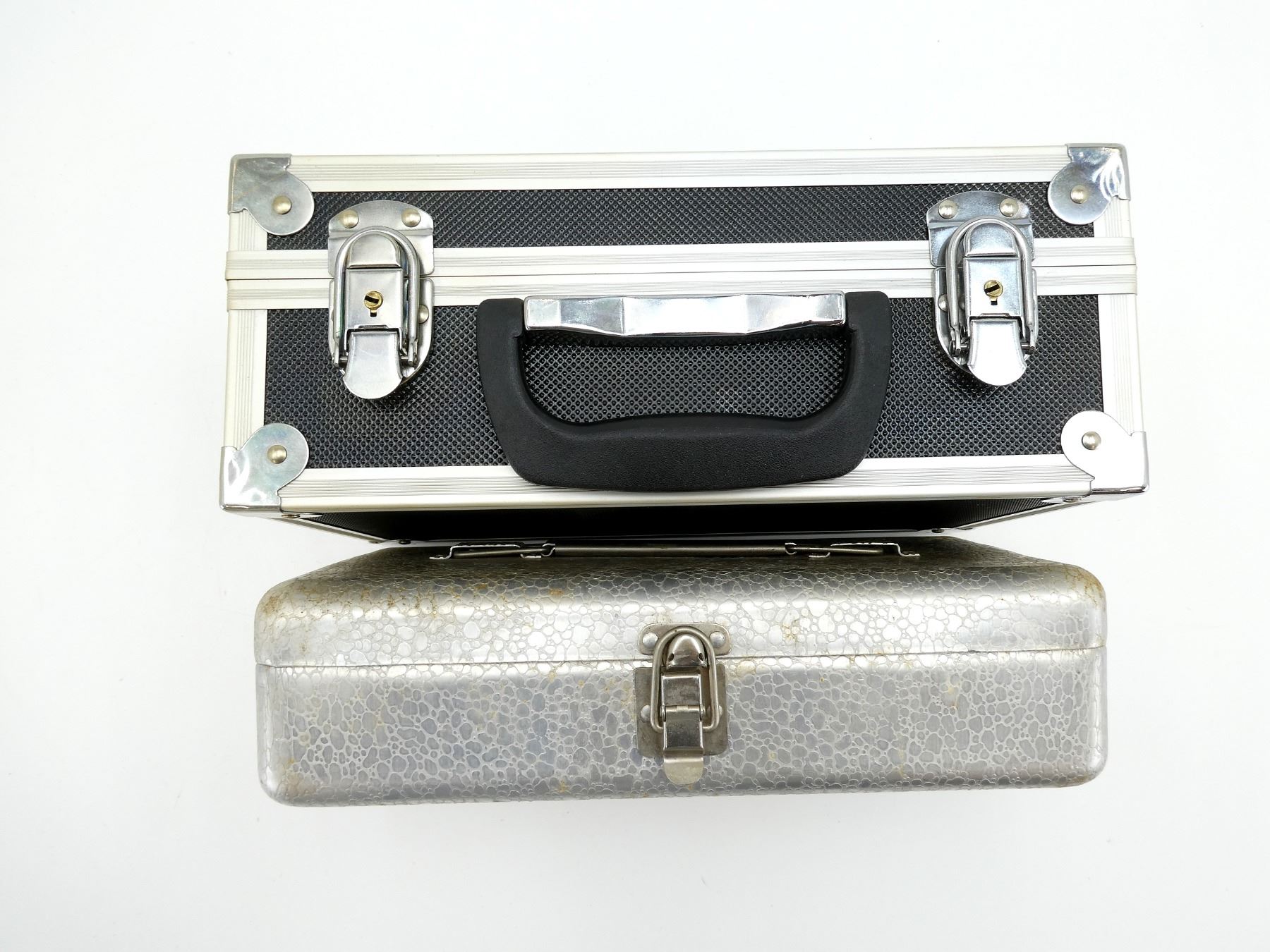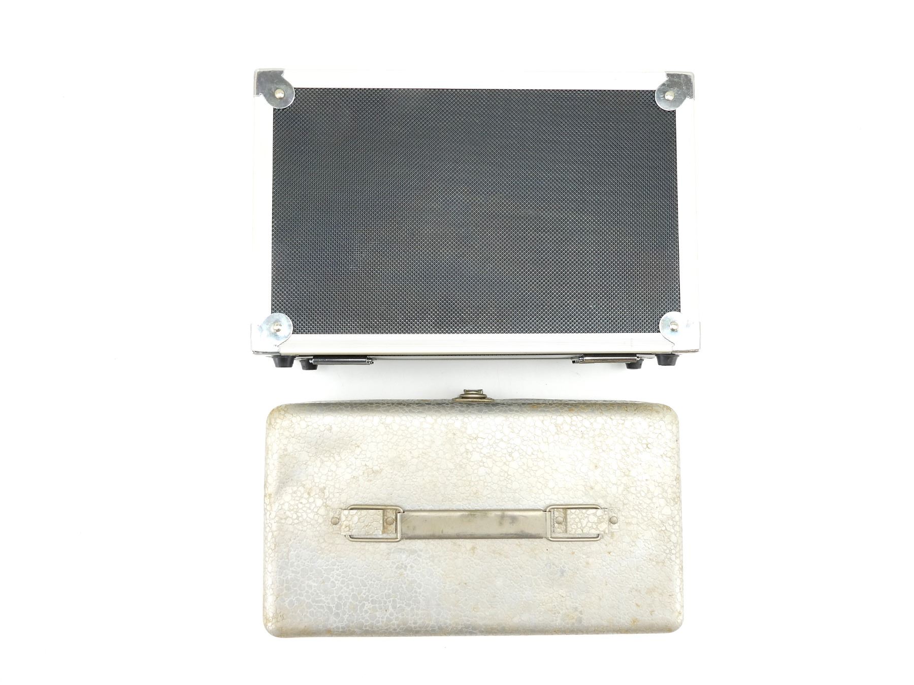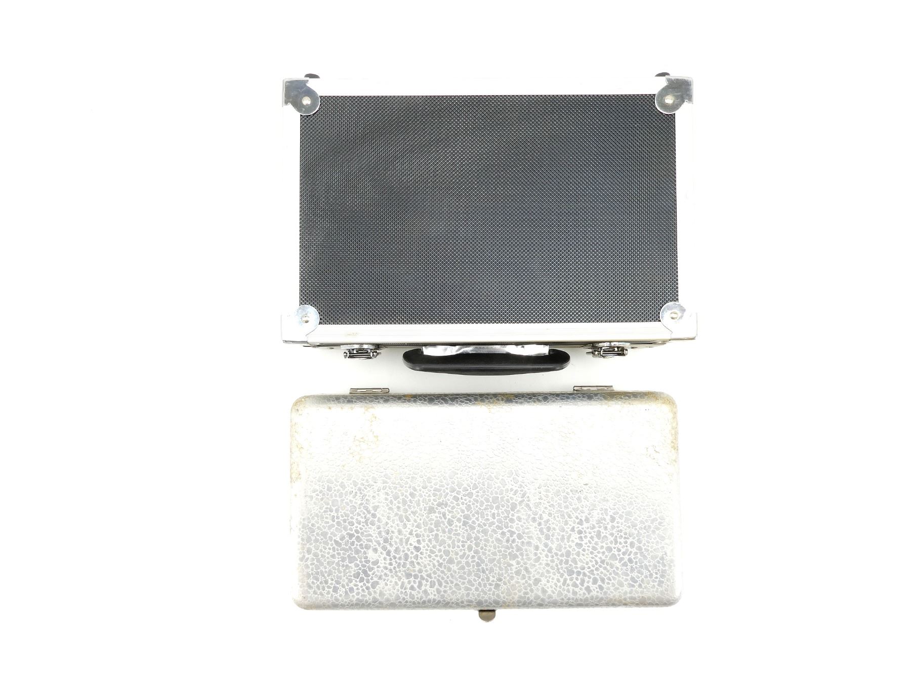 Lot 16056 METAL 12 GAUGE SHOT SHELL CARRY BOX AND HARD PADDED HANDGUN CASE LOT