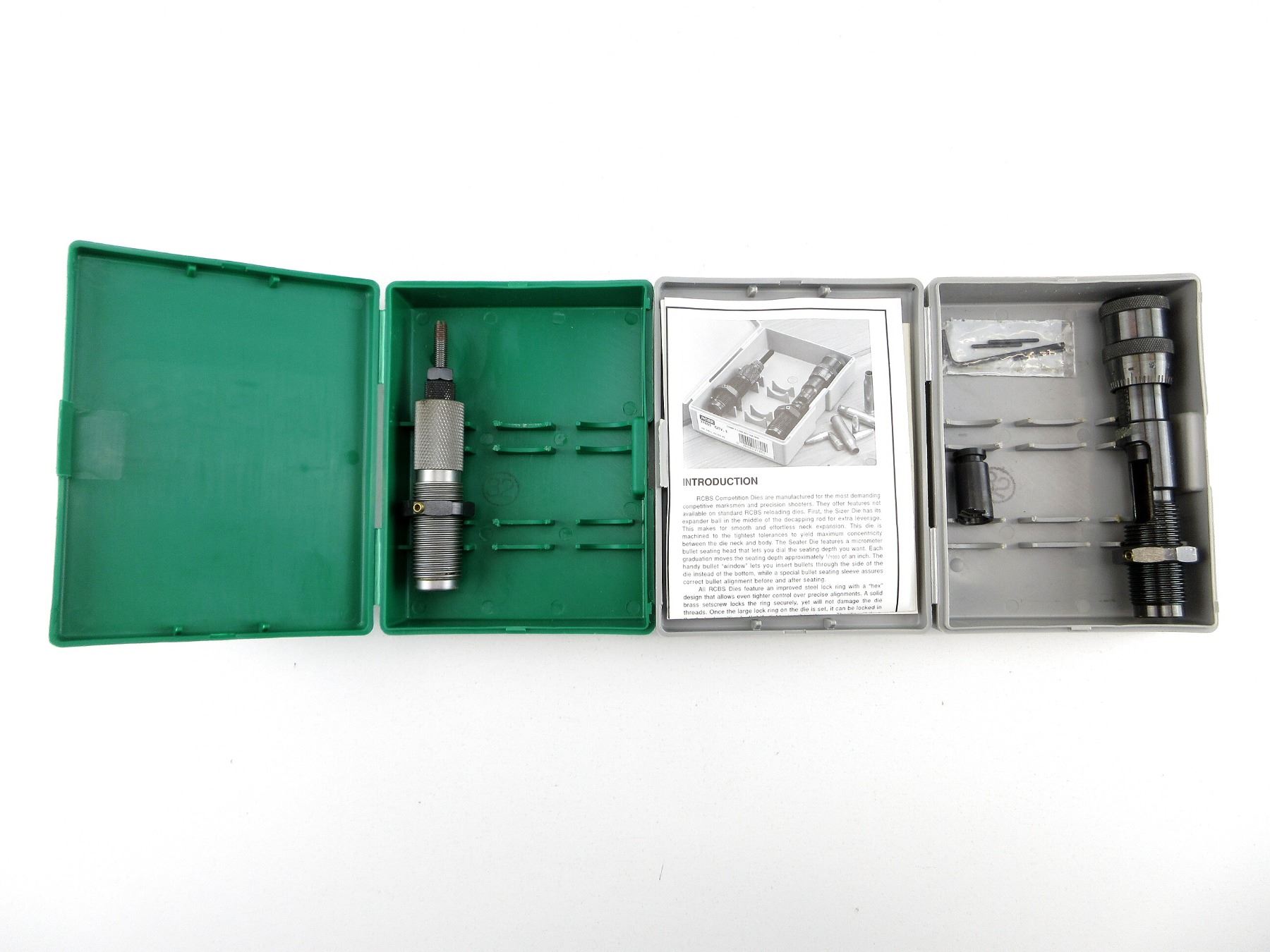 LOT INCLUDES; (1) 1-PIECE COMPETITION DIES & (1) 1-PIECE NECK SIZER DIE. SEE PHOTOS.