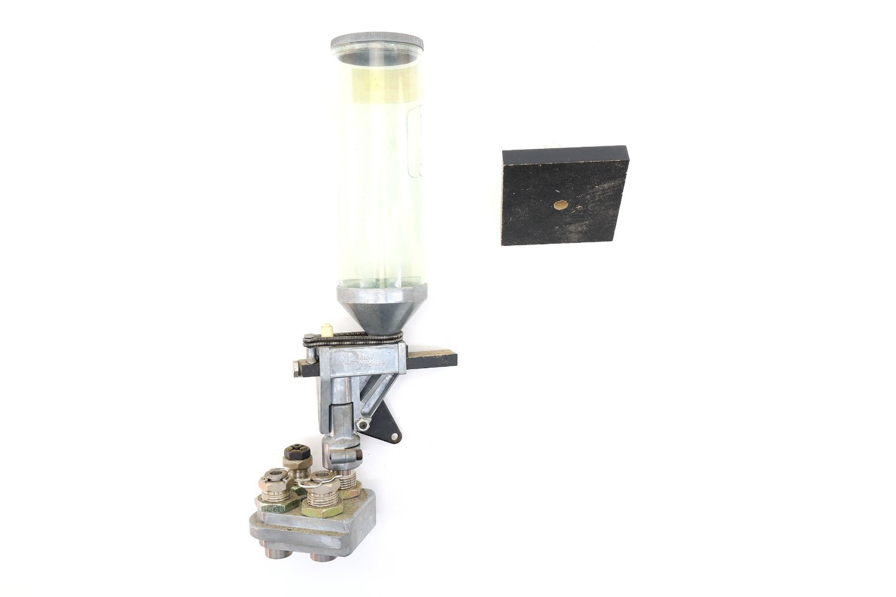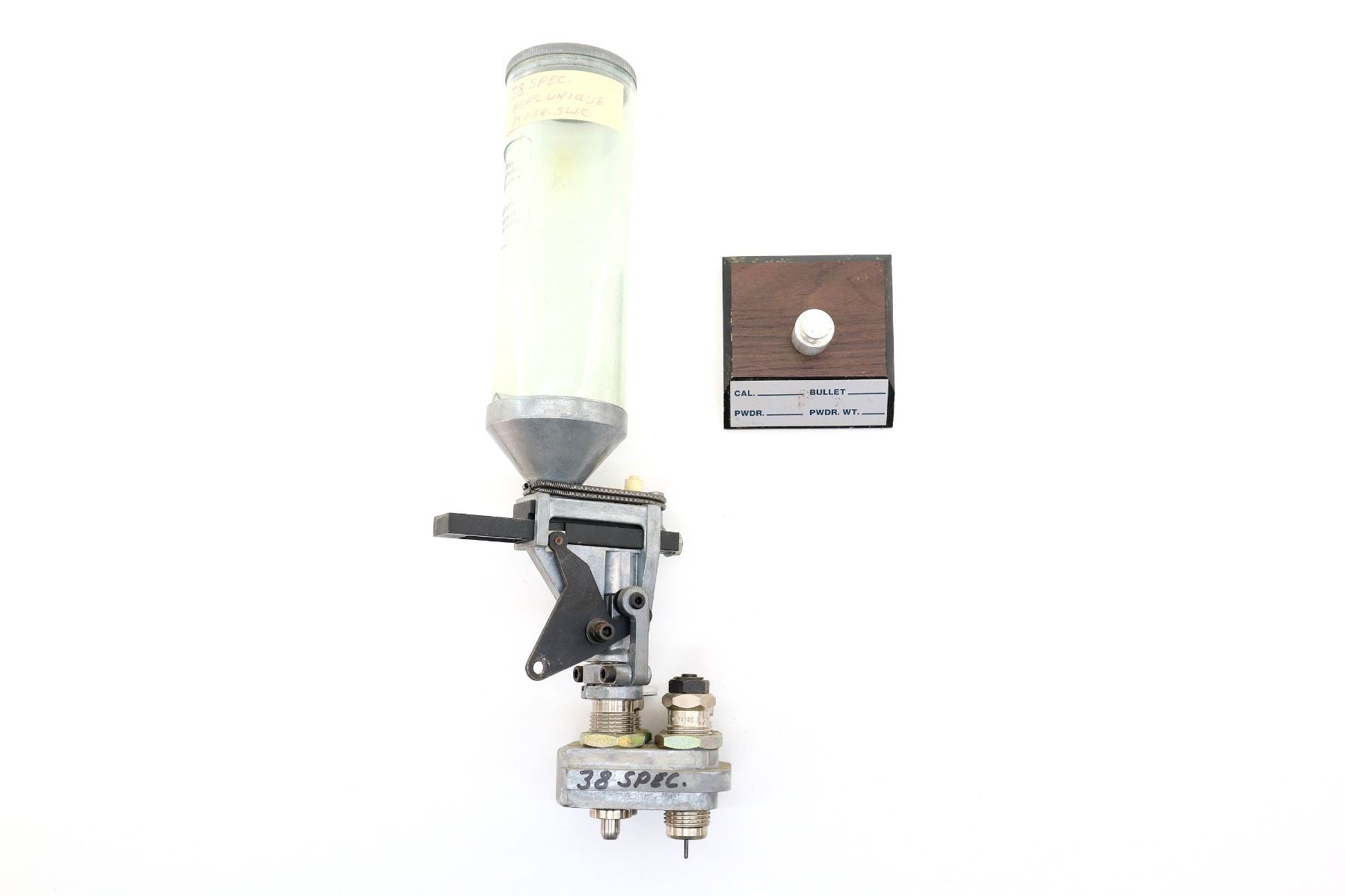 LOT INCLUDES; (1) DILLON 550 POWDER MEASURE, (1) 4-PIECE .38 SPL / .357 MAG RELOADING DIES ATTACHED, (1) DILLON 550 4-HOLE TOOL HEAD & (1) DILLON 550 TOOL HEAD BASE. SEE PHOTOS.