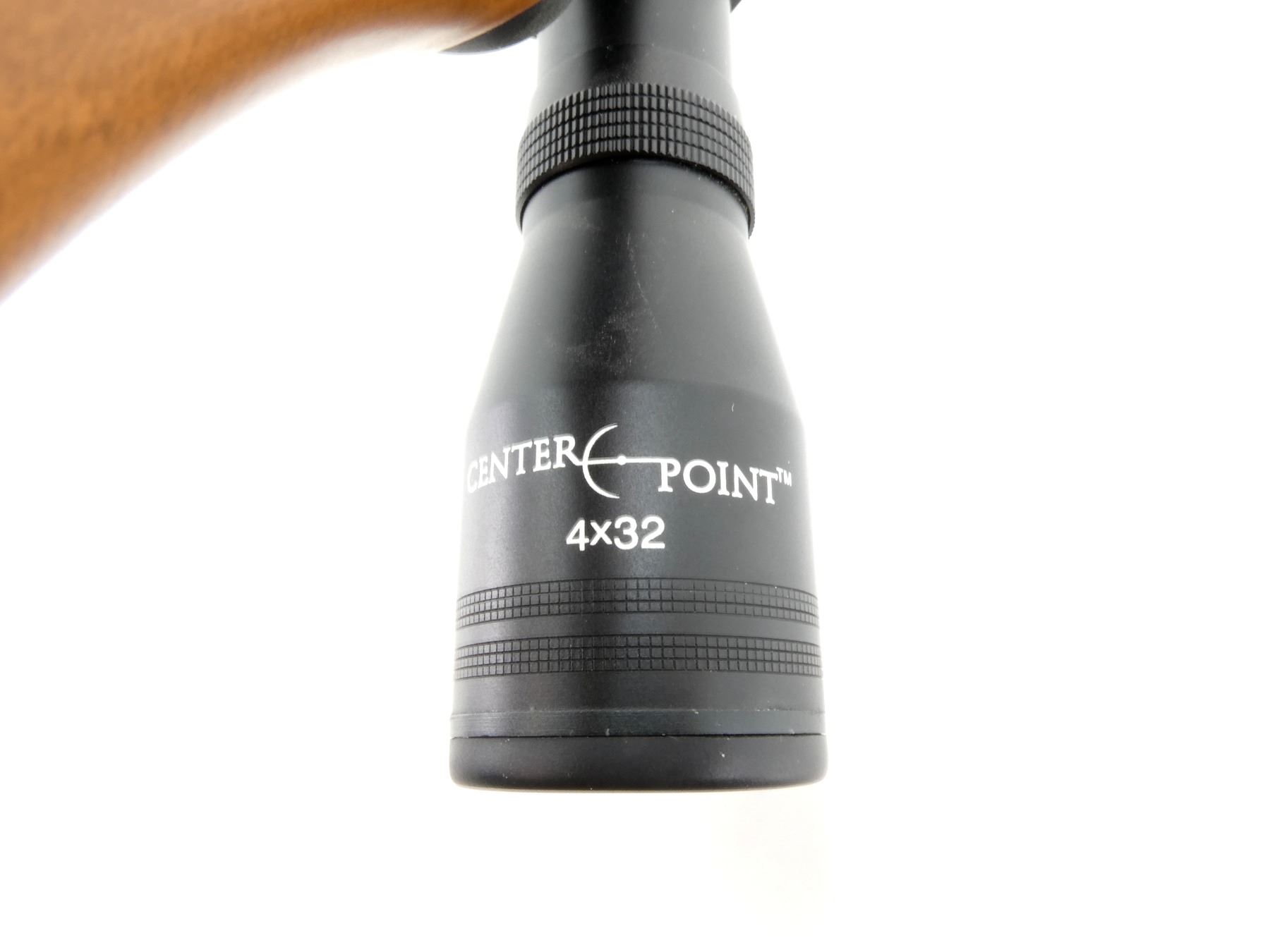 (1) .177 CAL PELLET, MODEL C5M77X, SPRING / AIR POWERED, SINGLE SHOT, BREAK ACTION, STEEL & WOOD CONSTRUCTION, SERIAL NO. 509X00899, NO COCKING ISSUES, NOT FULLY TESTED, WITH CENTER POINT SCOPE MOUNTED, CLEAR OPTICS, DUPLEX RETICLE, 1" TUBE DIAMETER, SHOWS LIGHT WEAR / TEAR. SEE PHOTOS.