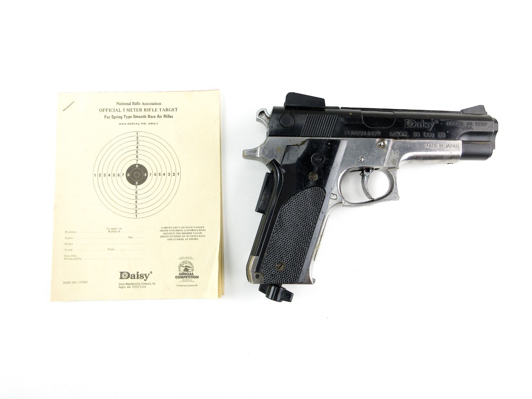 Lot 21004 DAISY POWERLINE MODEL 93 .177 CAL. BB PISTOL AND DAISY TARGETS LOT