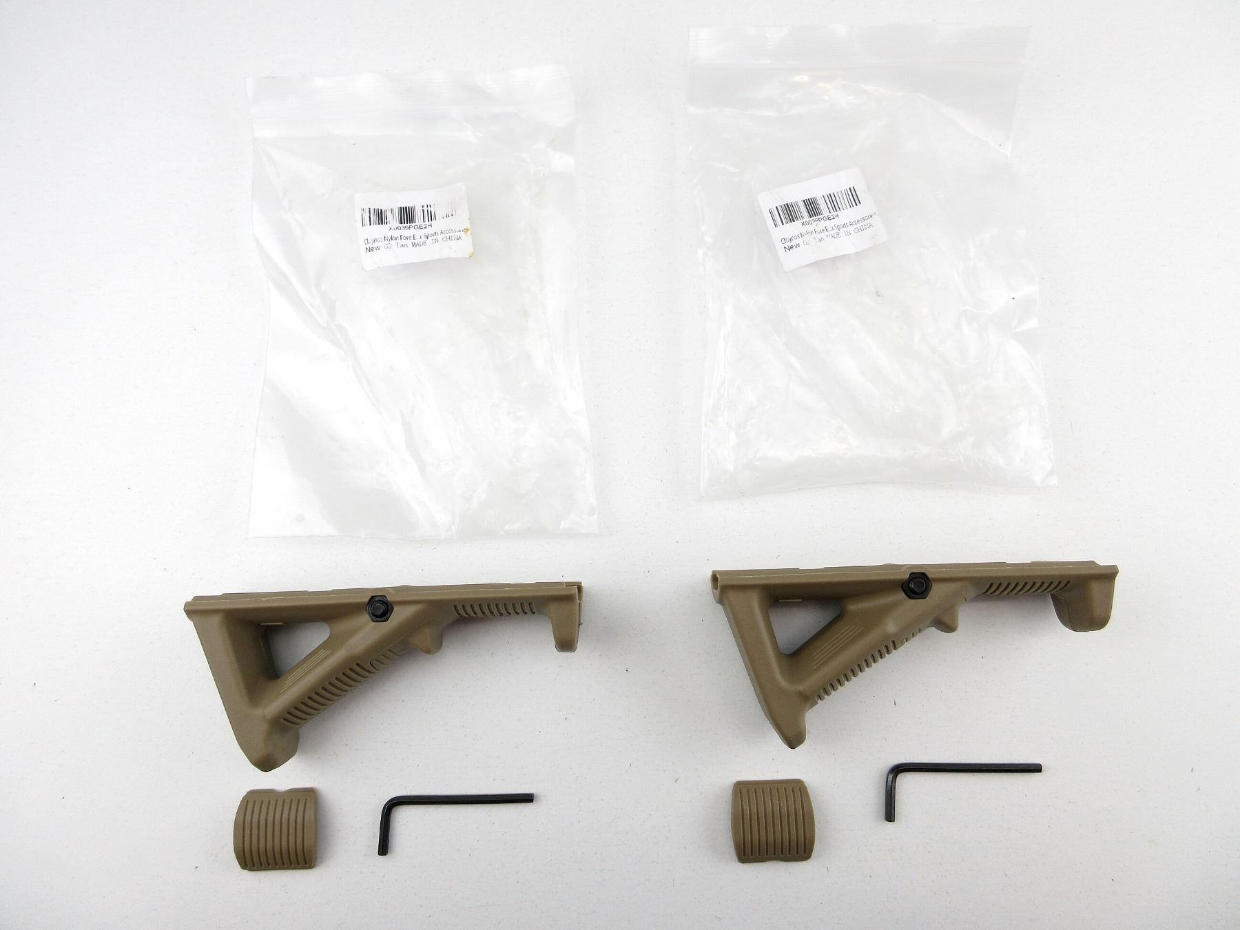 LOT INCLUDES; (2) MODEL AFG G2, TAN POLYMER CONSTRUCTION, WITH ALLEN KEY, APPEARS NOS, WITH ORIGINAL PACKAGING, OAL APPROX. 4.75". SEE PHOTOS.