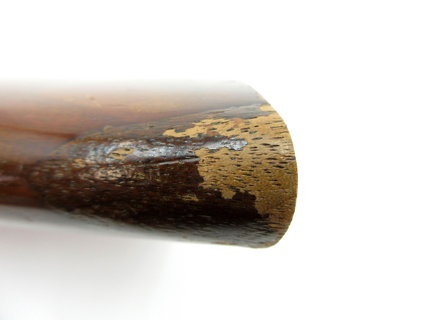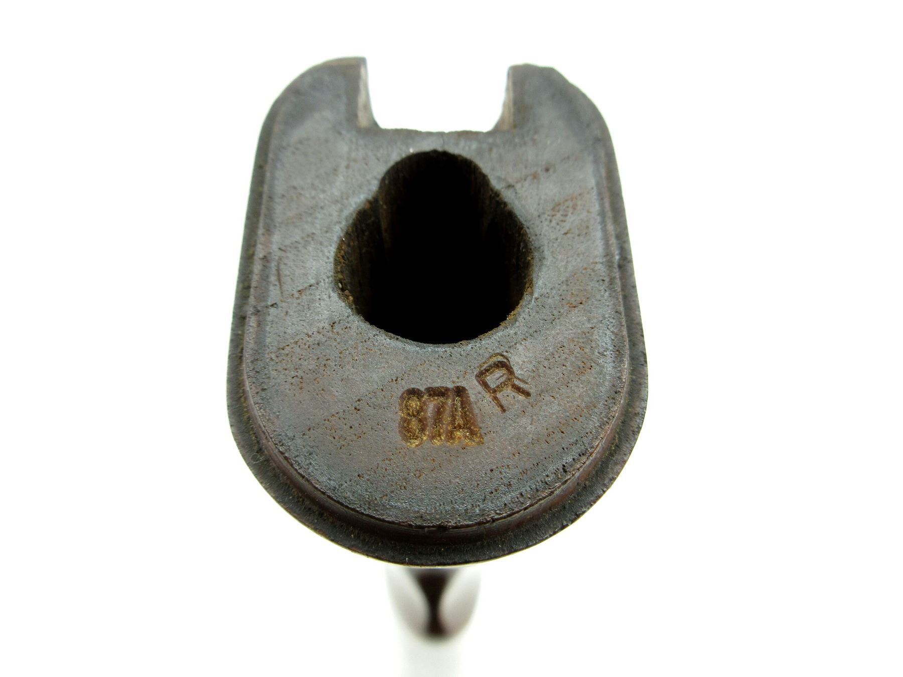(1) WOOD CONSTRUCTION, CHECKERING ON GRIP, MARKED: "87A, R" & VARIOUS OTHER HAND-WRITTEN MARKINGS, WITH GRIP CAP, OAL APPROX. 14 1/8". SEE PHOTOS.