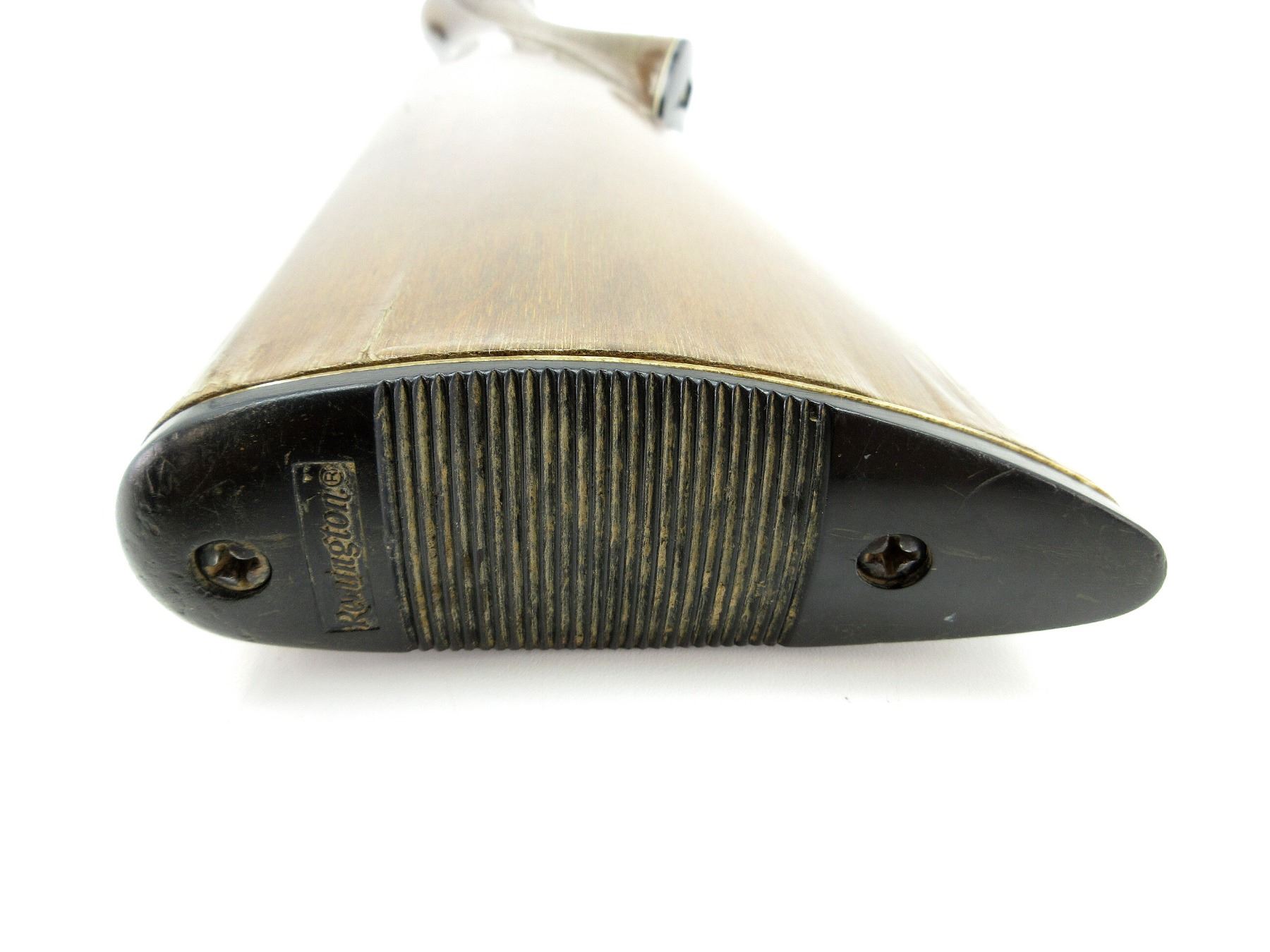 (1) WOOD CONSTRUCTION, CHECKERING ON GRIP, WITH BUTT PLATE & GRIP CAP, BUTT PLATE MARKED: "REMINGTON", OAL APPROX. 14 3/8", MAY REQUIRE FITTING. SEE PHOTOS.