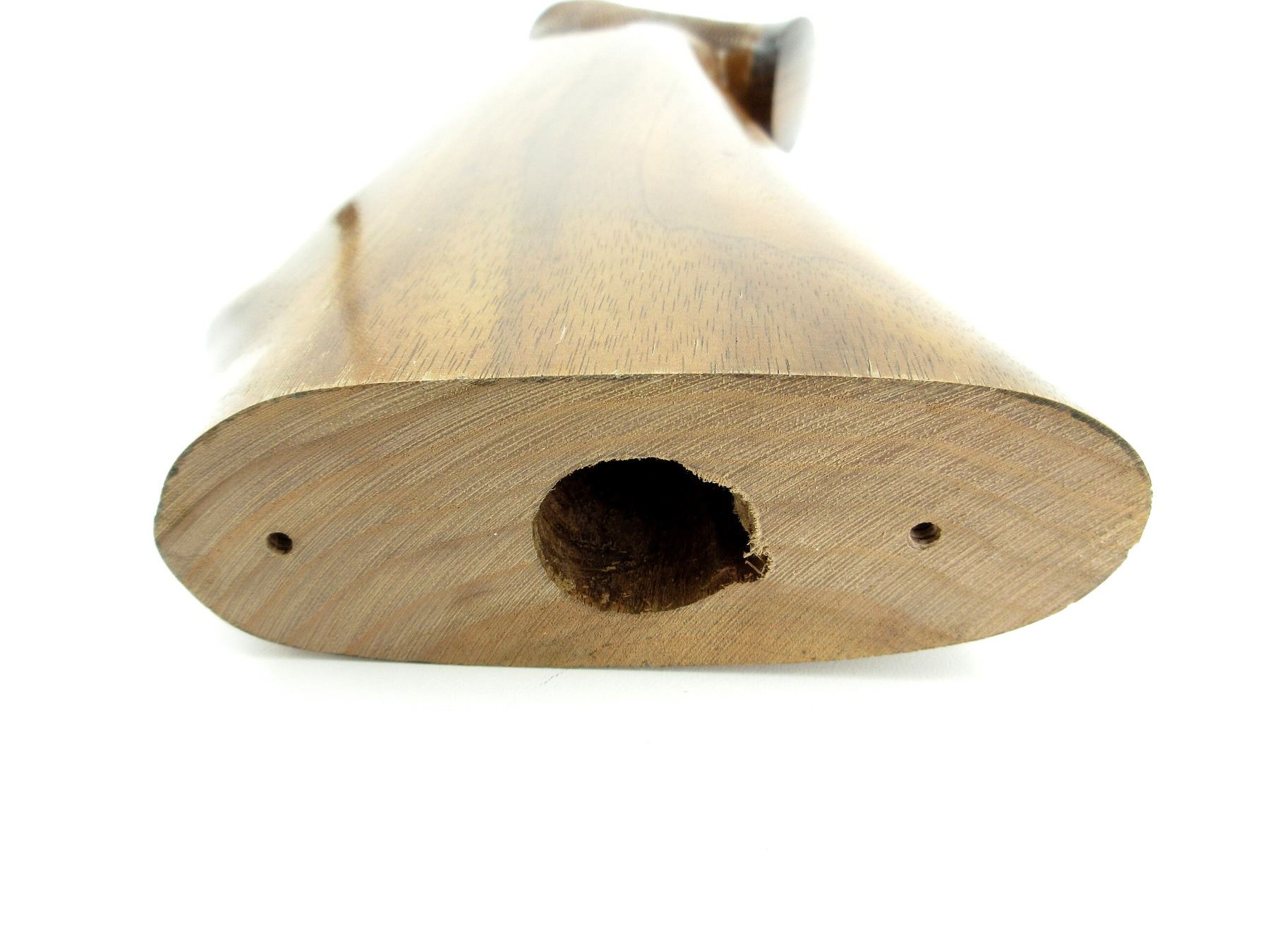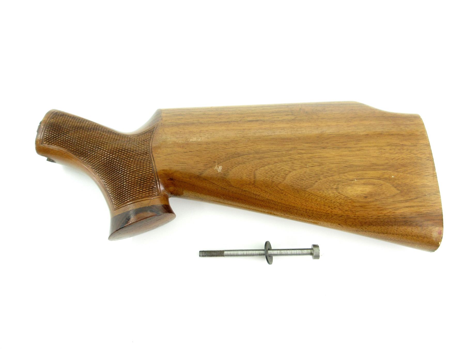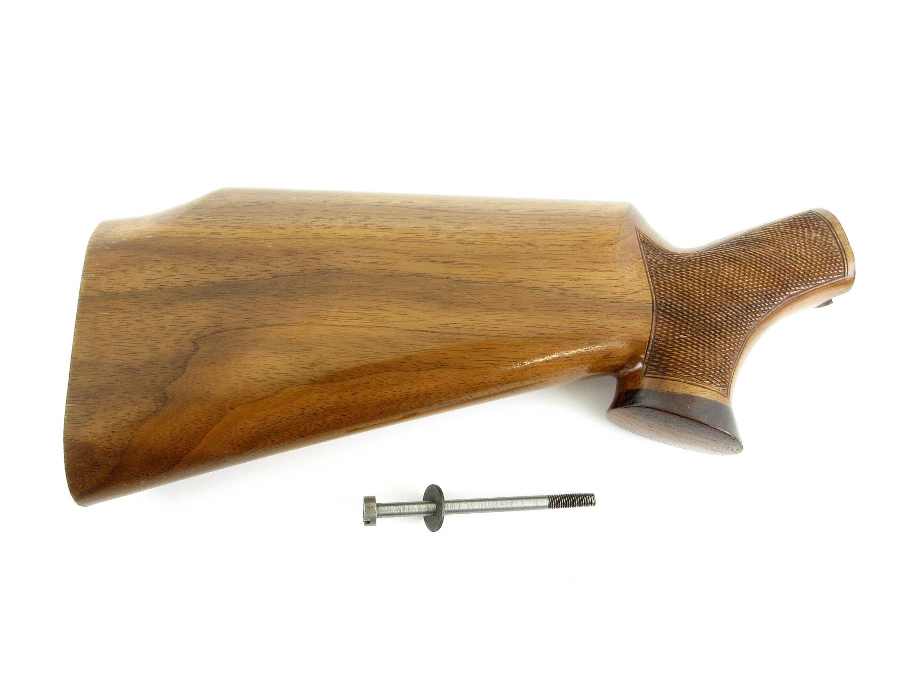 (1) WOOD CONSTRUCTION, CHECKERING ON GRIP, WITH WOOD GRIP CAP & STOCK SCREW, OAL APPROX. 13 1/8", MAY REQUIRE FITTING. SEE PHOTOS.