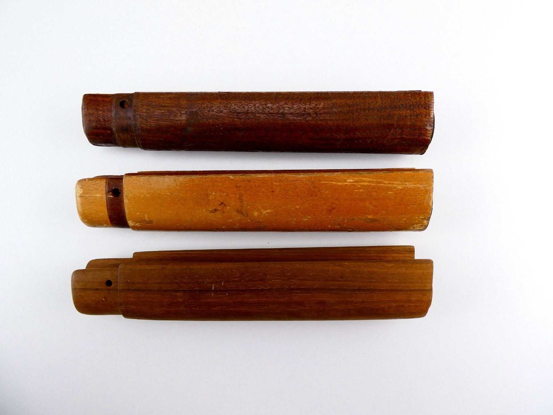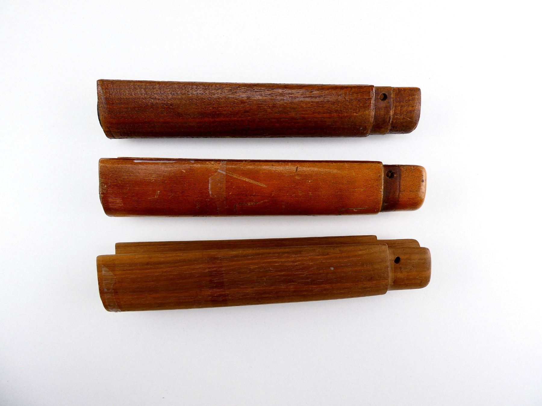 LOT INCLUDES; (3) WOODEN FORENDS, MAY HAVE SMALL CRACKS & CHIPS, OAL APPROX. 8". MAY REQUIRE FITTING. SEE PHOTOS.