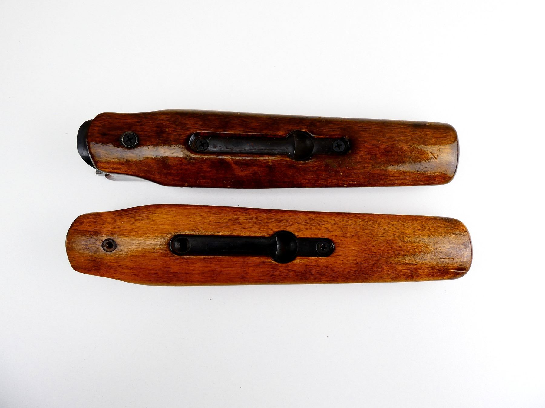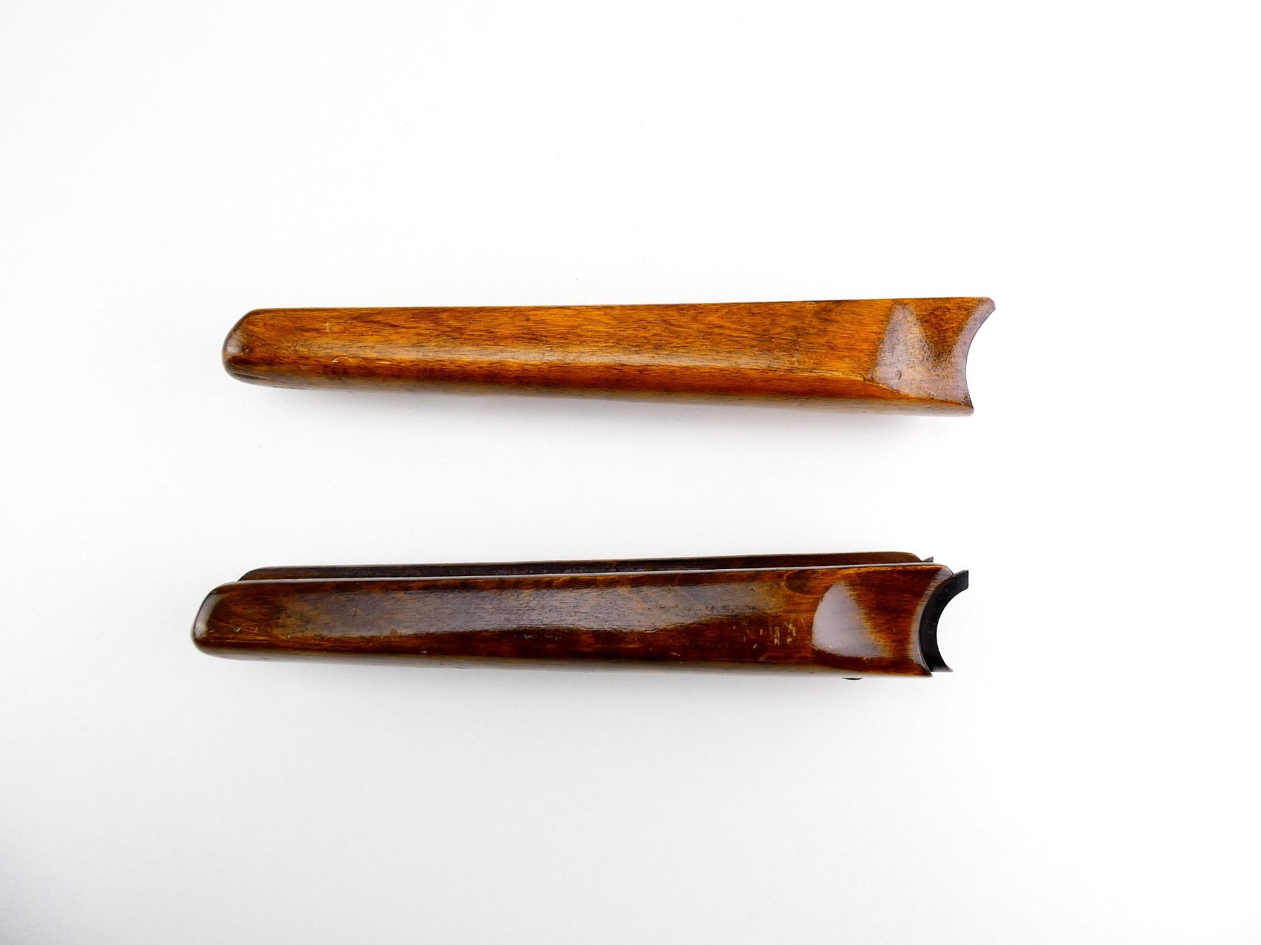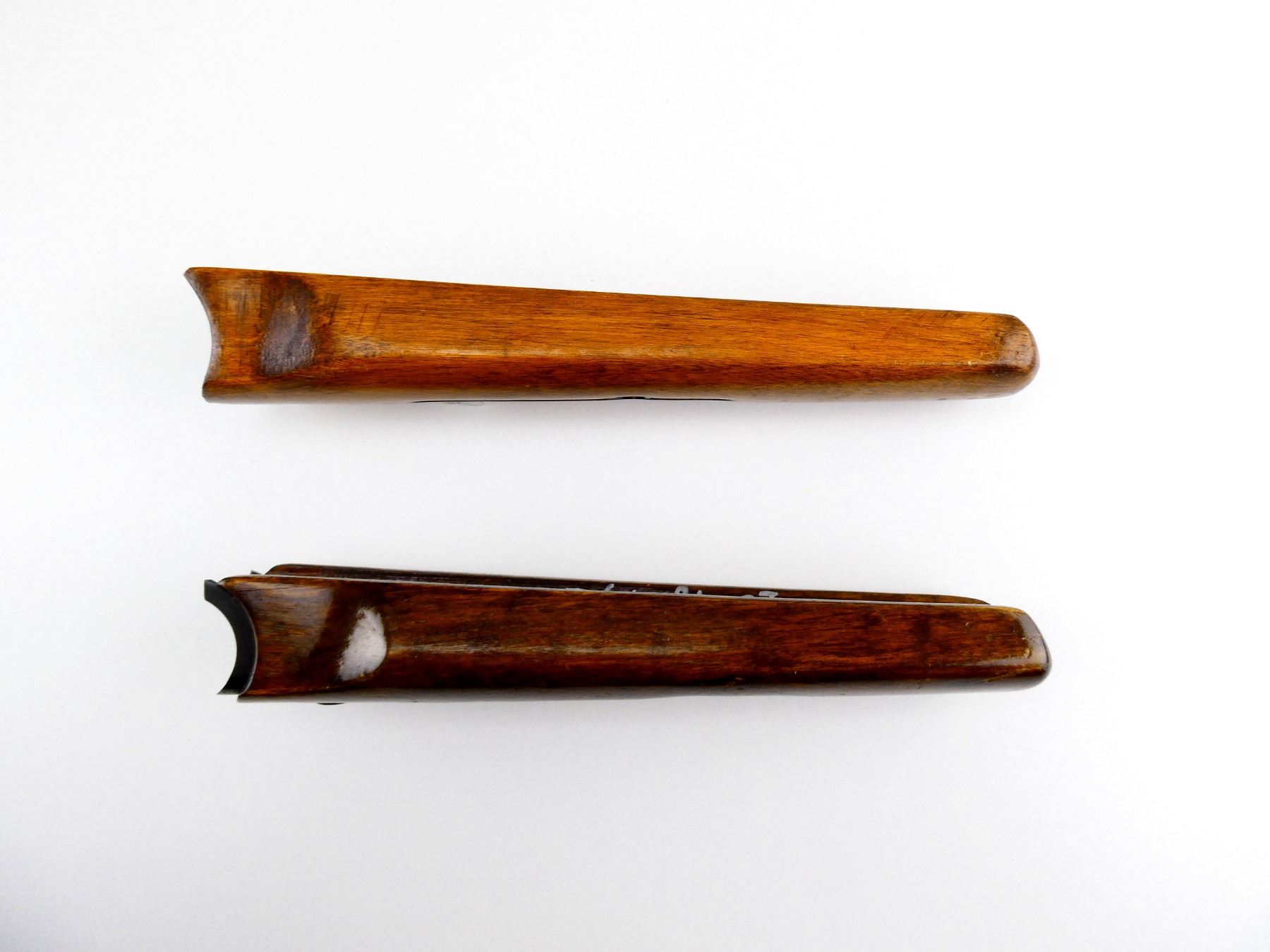 FITS IJ-18 12 GAUGE SHOTGUNS, LOT INCLUDES;(1) COMPLETE WOODEN FOREND & (1) WOODEN FOREND WITH LATCH ONLY, MAY HAVE SMALL CRACKS & CHIPS, OAL APPROX. 9". MAY REQUIRE FITTING. SEE PHOTOS.