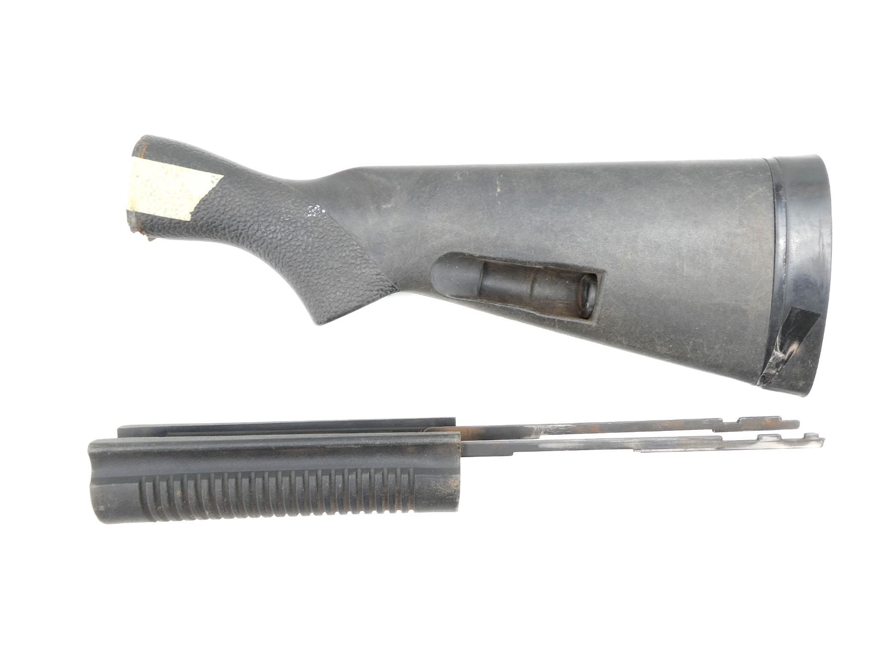 LOT INCLUDES; (1) DAVIS SPEED FEED BUTT STOCK, OAL APPROX. 13.5", SHOWS WEAR / TEAR FROM USE & (1) GROOVED FOREND WITH METAL, UNMARKED, OAL APPROX. 14.5", SHOWS WEAR / TEAR FROM USE. MAY REQUIRE FITTING. SEE PHOTOS.