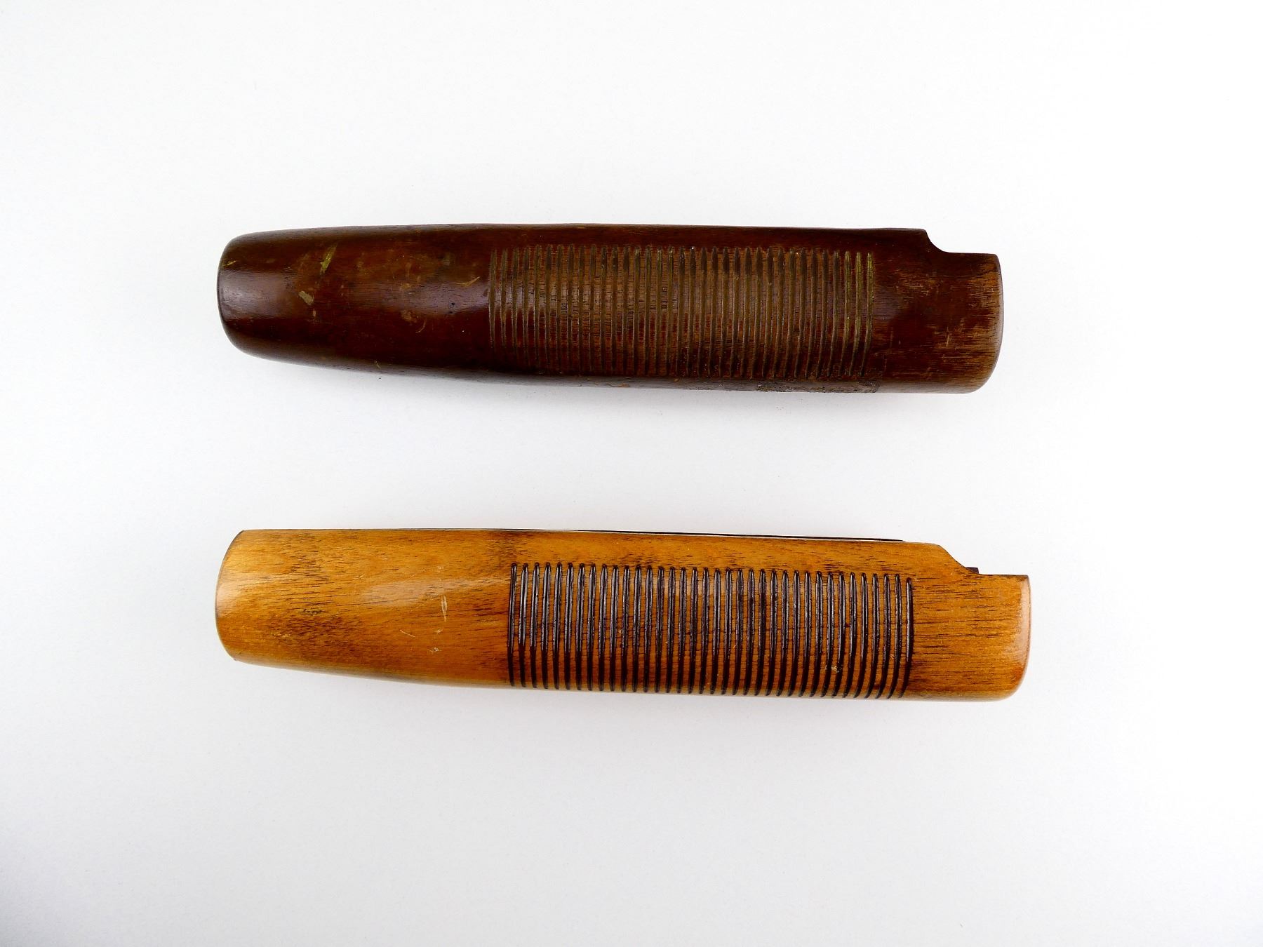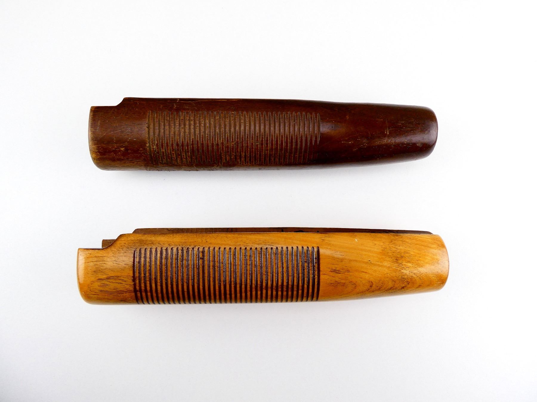 FITS 12 GAUGE SHOTGUNS, LOT INCLUDES; (2) WOODEN FORENDS, GROOVED, OAL APPROX. 9". MAY REQUIRE FITTING. SEE PHOTOS.