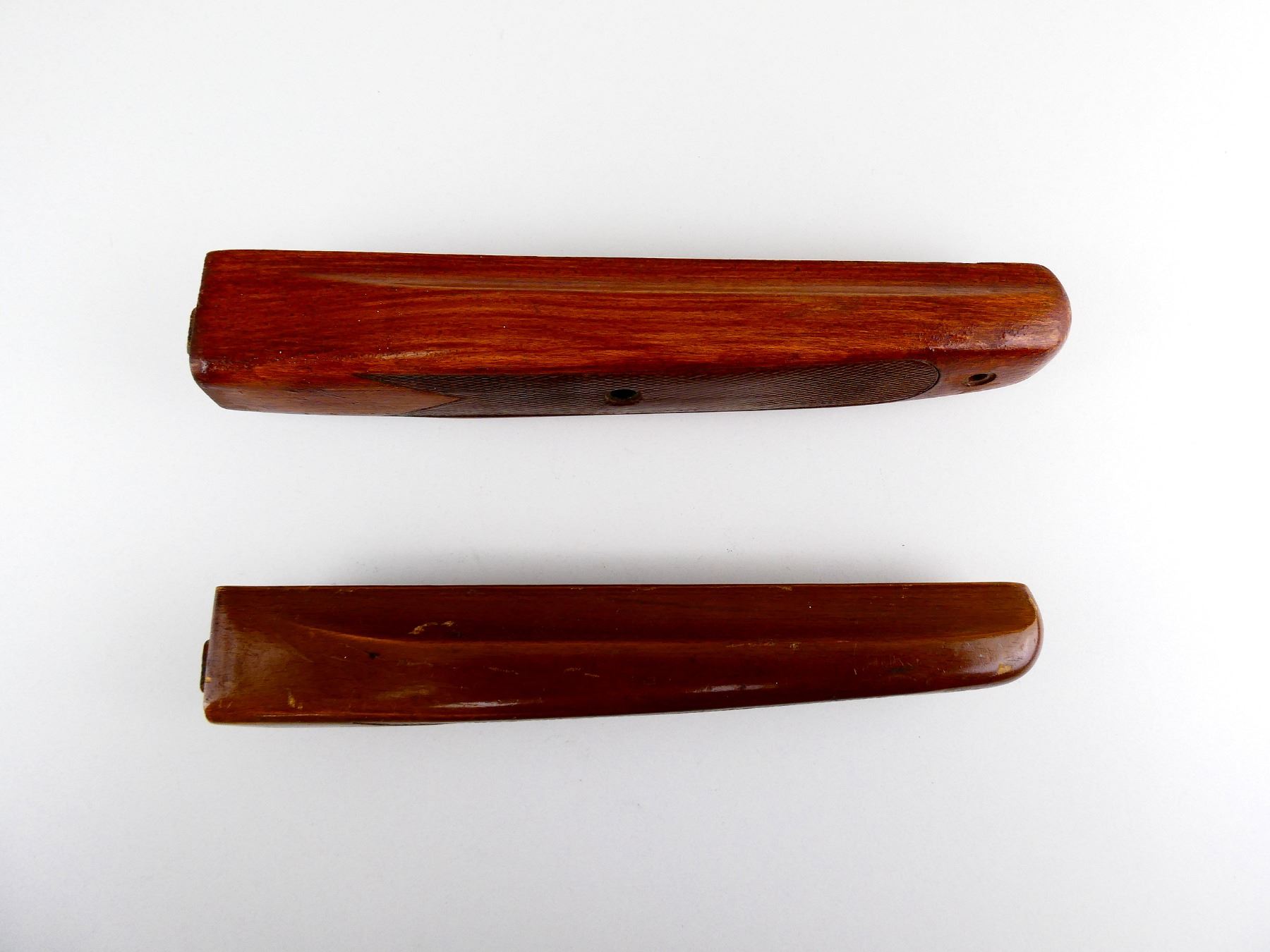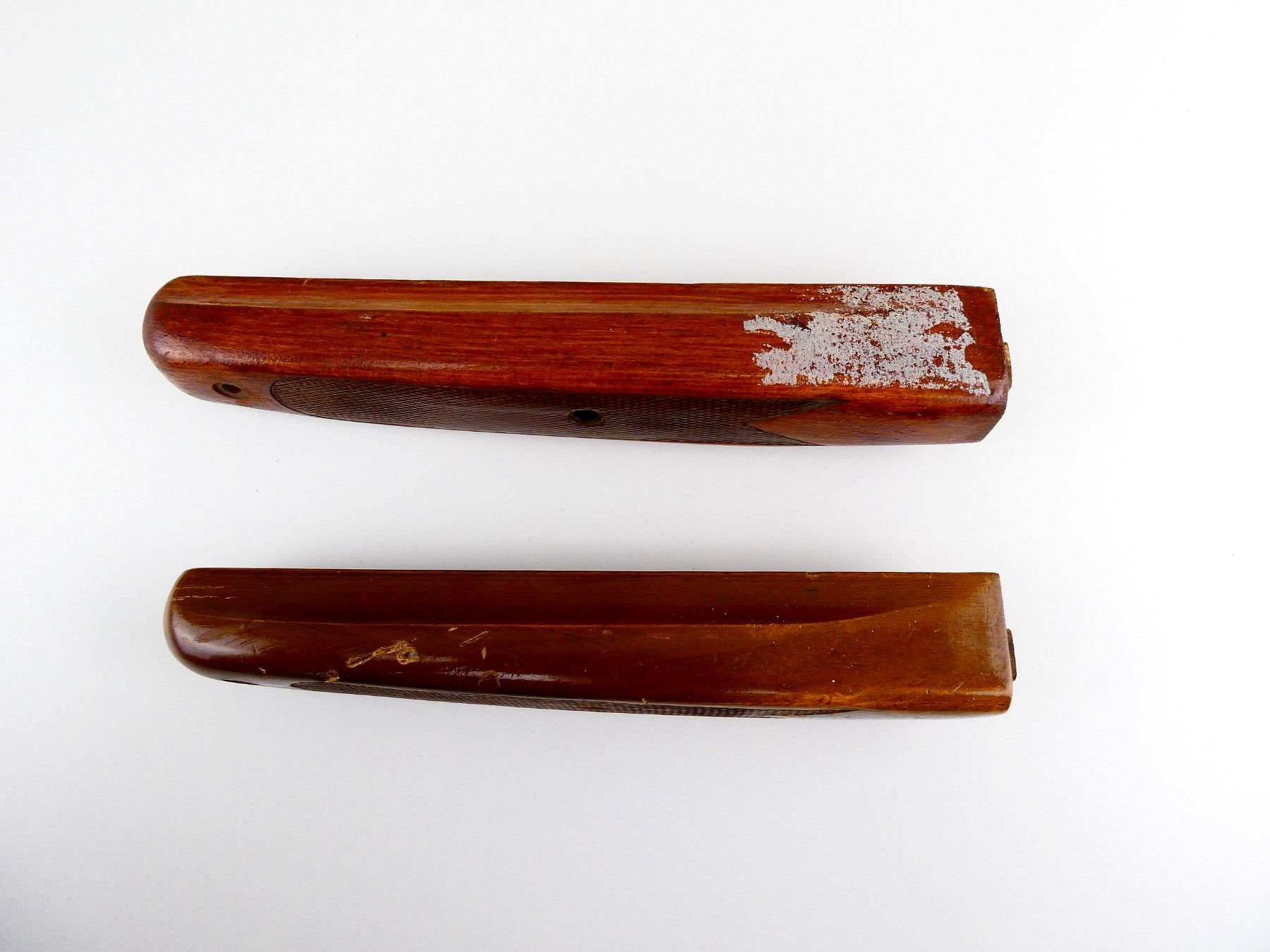 LOT INCLUDES; (2) WOODEN FORENDS, CHECKERED, MAY HAVE SMALL CRACKS & CHIPS, OAL APPROX. 9.5". MAY REQUIRE FITTING. SEE PHOTOS.