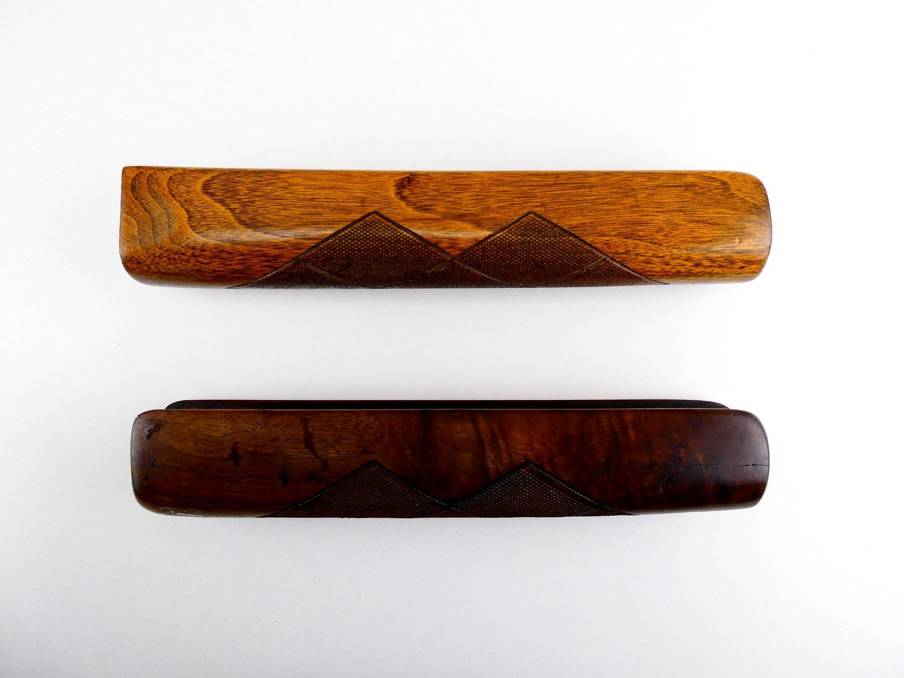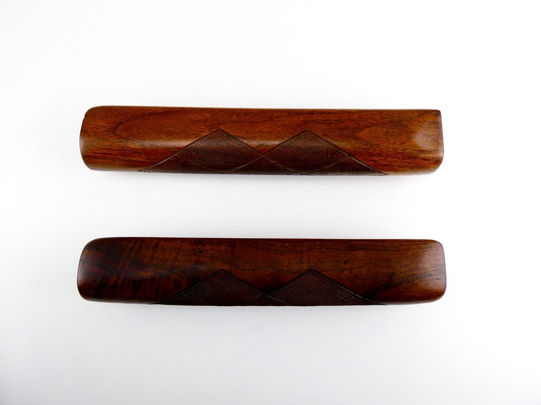 LOT INCLUDES; (1) 16 G. WOODEN FOREND, CHECKERED, OAL APPROX. 11" & (1) 12 G. WOODEN FOREND, CHECKERED, OAL APPROX. 11". MAY REQUIRE FITTING. SEE PHOTOS.