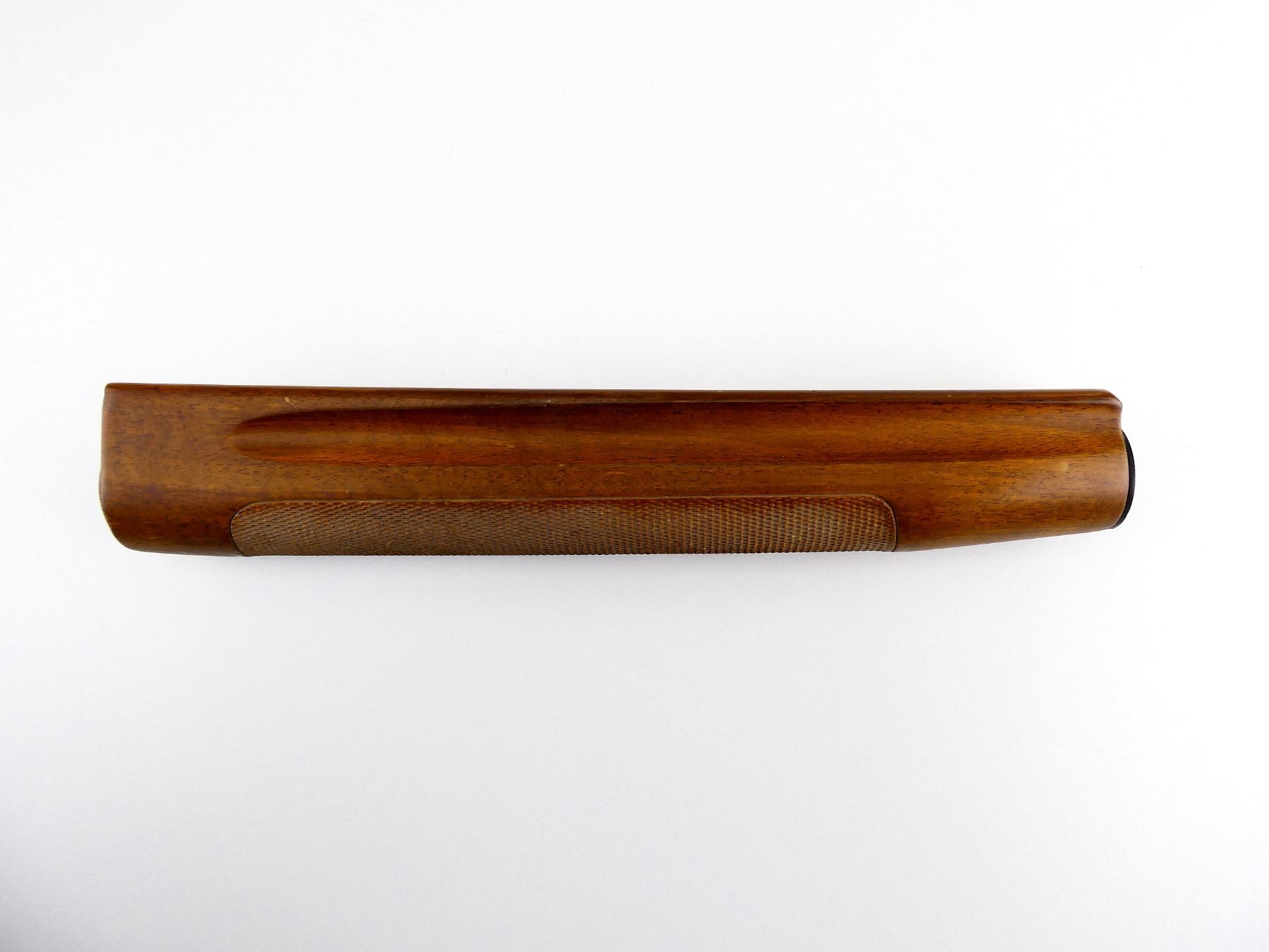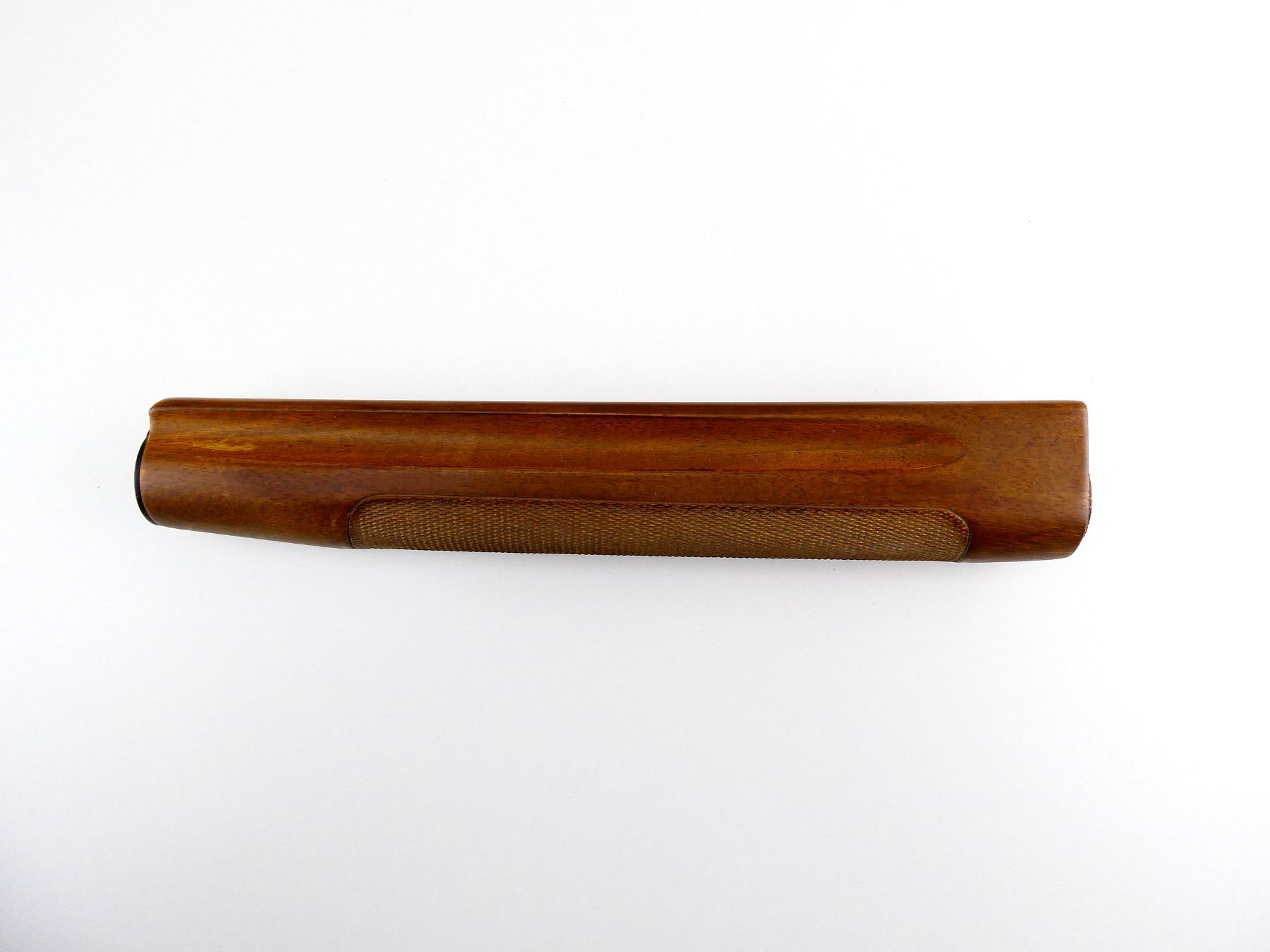 (1) WOODEN FOREND, CHECKERED, POSSIBLY FITS 20 GAUGE ?, OAL APPROX. 11.25". MAY REQUIRE FITTING. SEE PHOTOS.