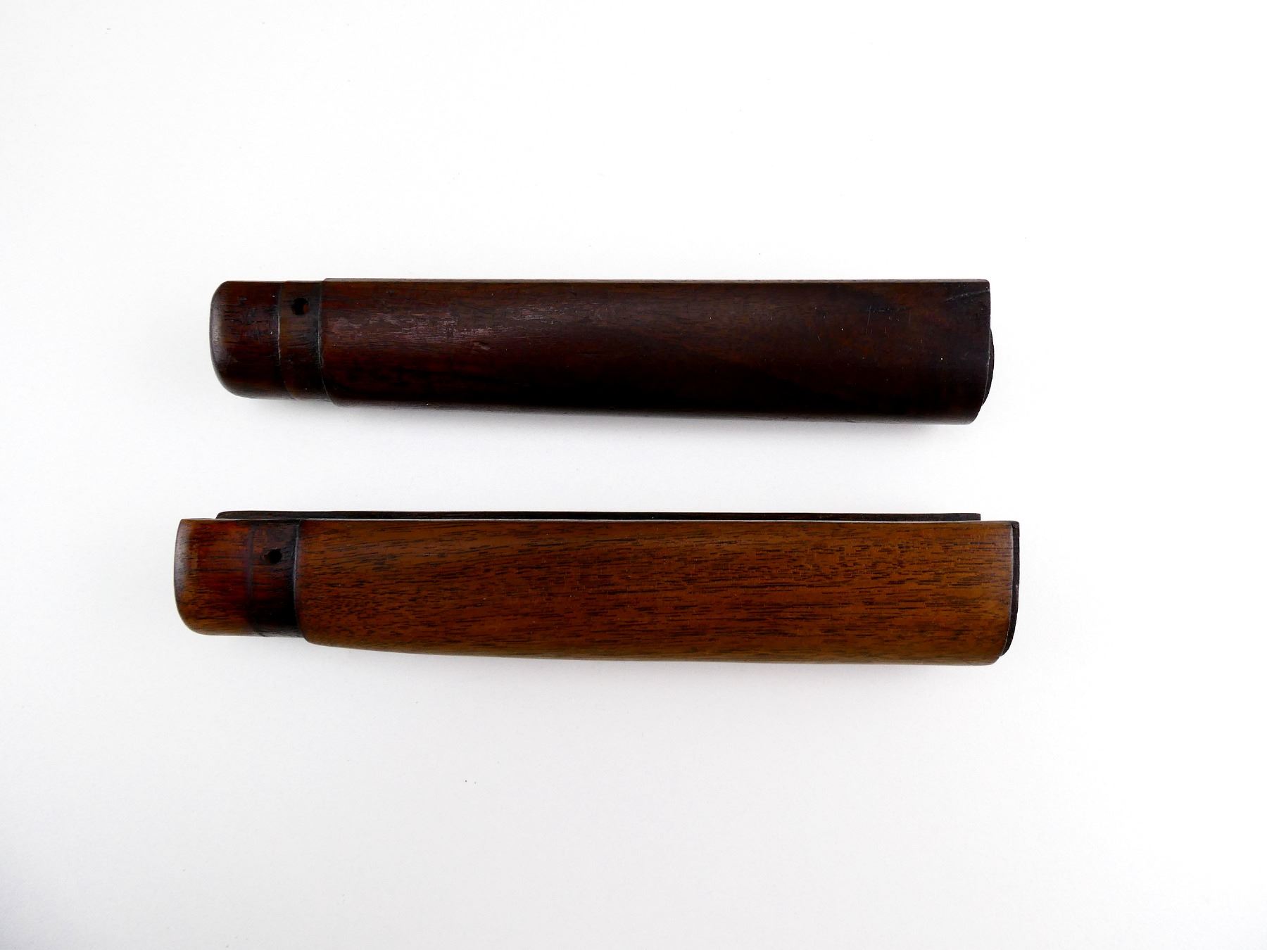 LOT INCLUDES; (2) WOODEN FORENDS, SMOOTH, MAY HAVE SMALL CRACKS & CHIPS, OAL APPROX. 8". MAY REQUIRE FITTING. SEE PHOTOS.