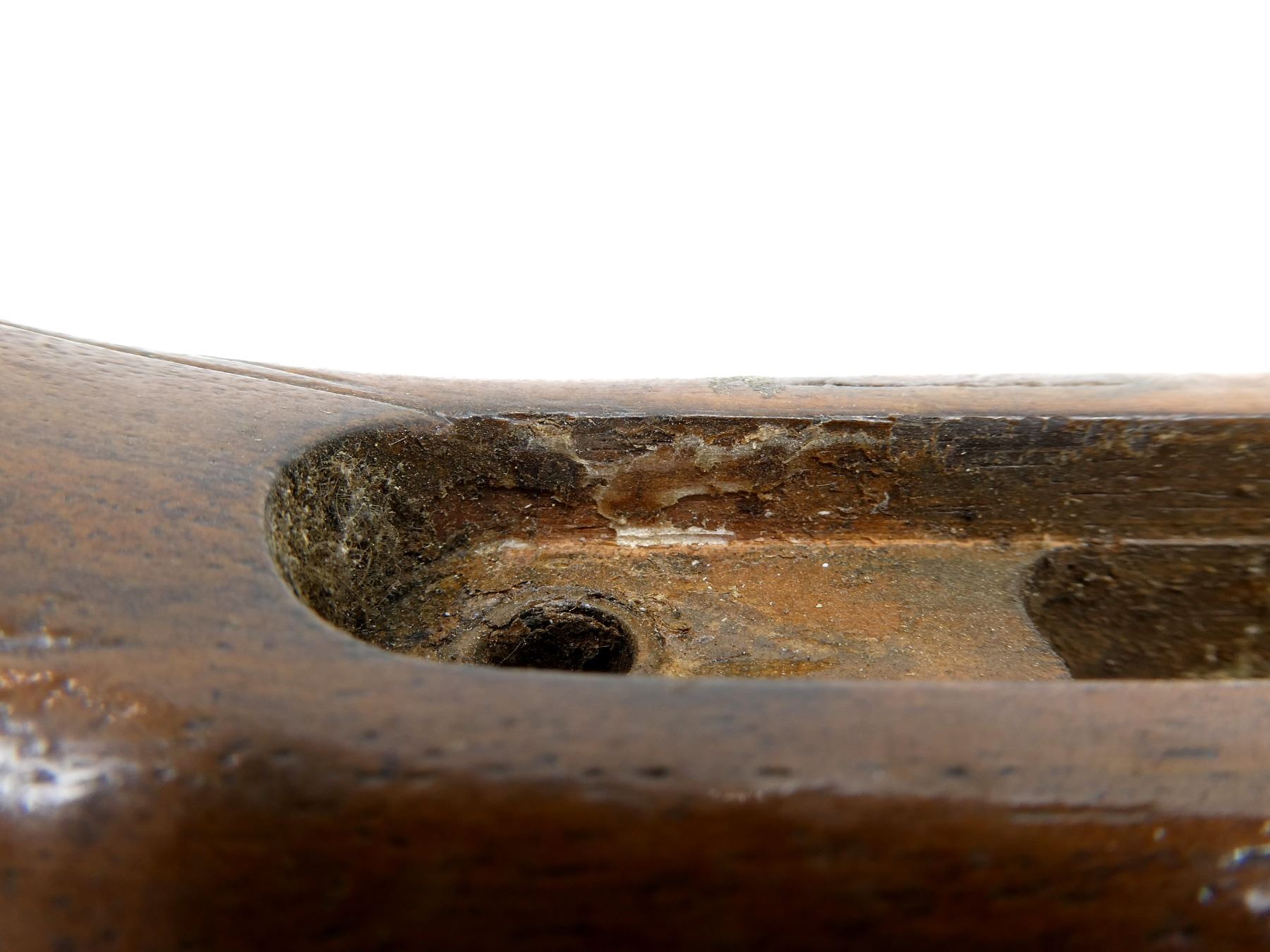 (1) WOODEN STOCK, RIGHT HANDED, CHECKERED, PISTOL GRIP WITH CAP, BLACK POLYMER BUTT PLATE, CHEEK REST, FITS ROUND STYLE RECEIVER & LARGE BOTTOM PLATE, MAY HAVE SMALL CRACKS / CHIPS / WEAR, 3.75" OAL MAG WELL, OAL APPROX. 32". MAY REQUIRE FITTING. SEE PHOTOS.