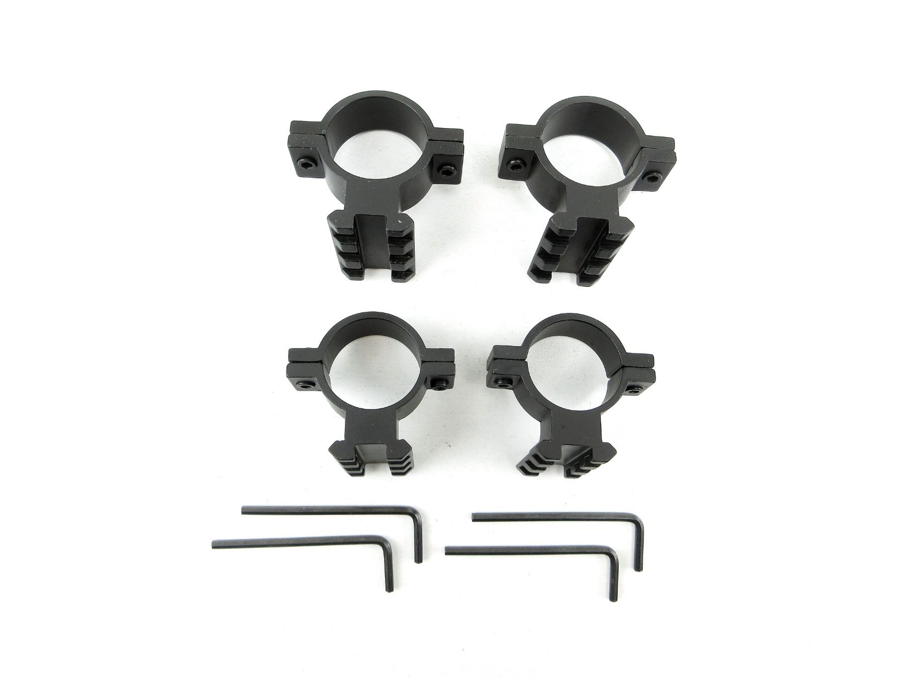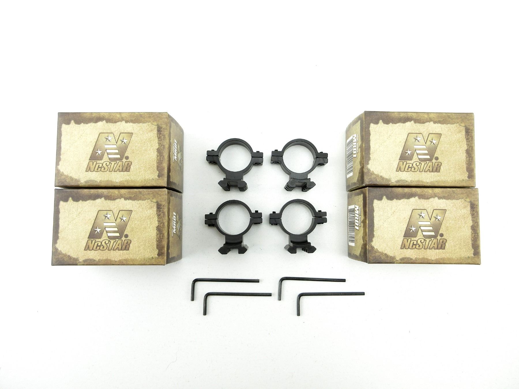 LOT INCLUDES; (4) NCSTAR SCOPE MOUNT ADAPTERS, WITH WEAVER RAILS, 1" DIAMETER, ALUMINUM CONSTRUCTION, WITH ORIGINAL BOX. SEE PHOTOS.