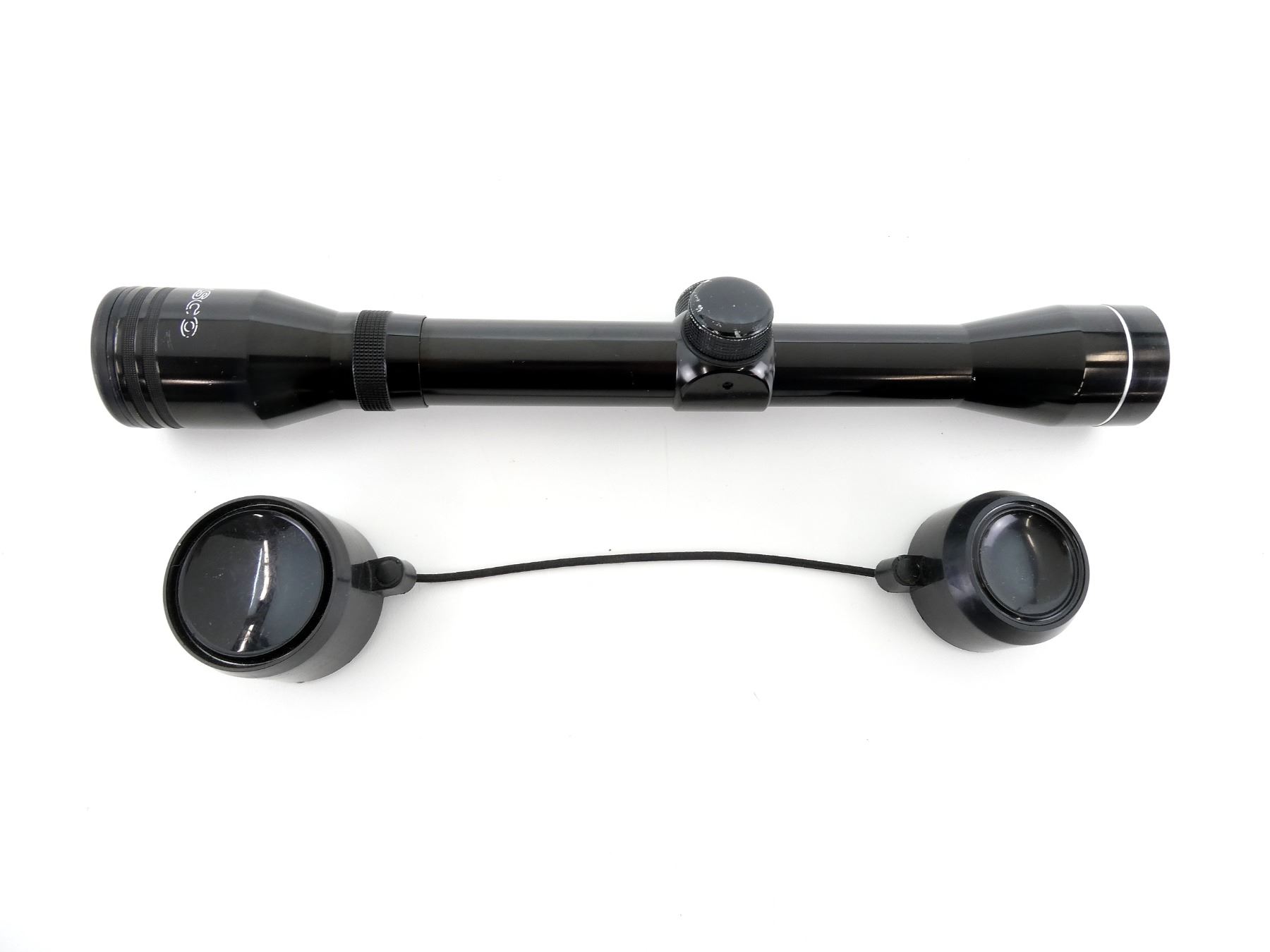 (1) CLEAR OPTICS, DUPLEX RETICLE, 1" TUBE DIAMETER, WORKING MAGNIFICATION RING, WINDAGE & ELEVATION KNOBS TURN, WITH LENS COVERS, SCOPE SHOWS WEAR & TEAR / USE MARKS. SEE PHOTOS.