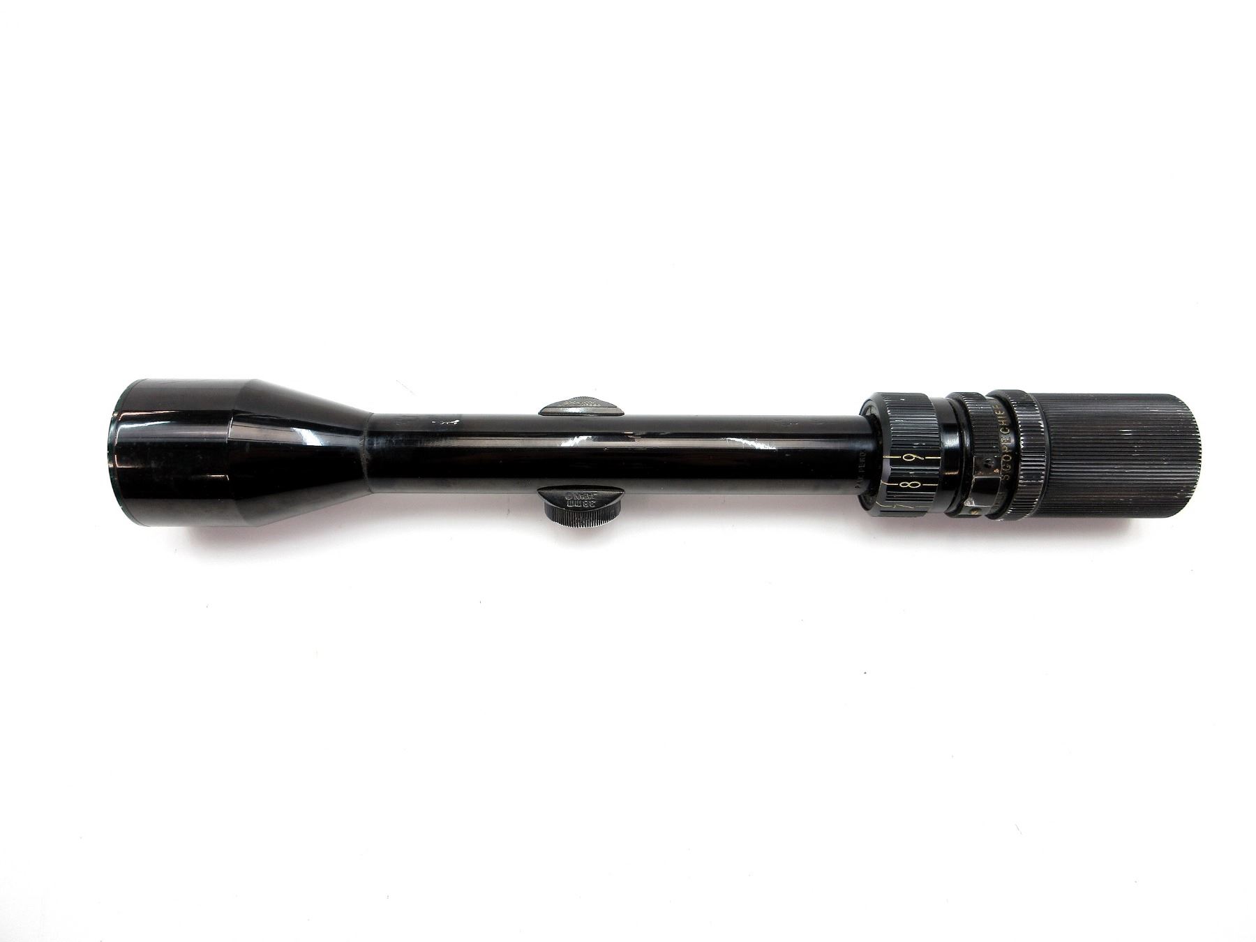 (1) CLEAR OPTICS, WITH FINE CROSSHAIR RETICLE, DIAL FOR RETICLE POST, 1" TUBE DIAMETER, WORKING MAGNIFICATION RING, WINDAGE & ELEVATION KNOBS DO NOT TURN / STUCK, WITH LENS COVERS, SCOPE SHOWS WEAR & TEAR / USE MARKS. SEE PHOTOS.