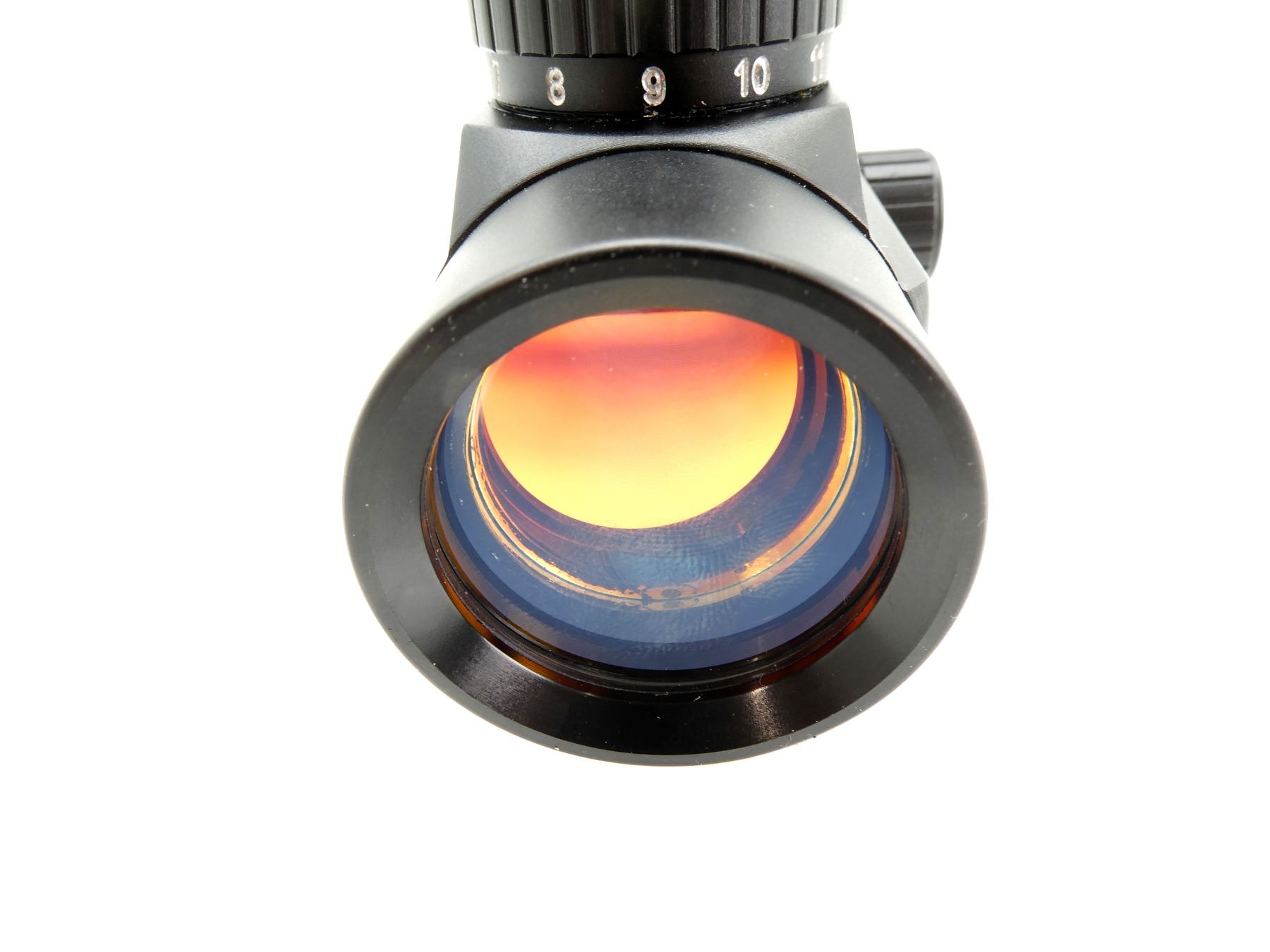 (1) CLEAR OPTICS, WORKING RED DOT RETICLE, WITH VARIOUS BRIGHTNESS SETTINGS, WINDAGE & ELEVATION KNOBS TURN, WITH MOUNTING BASE & LENS COVERS, SHOWS WEAR & TEAR / USE MARKS. SEE PHOTOS.