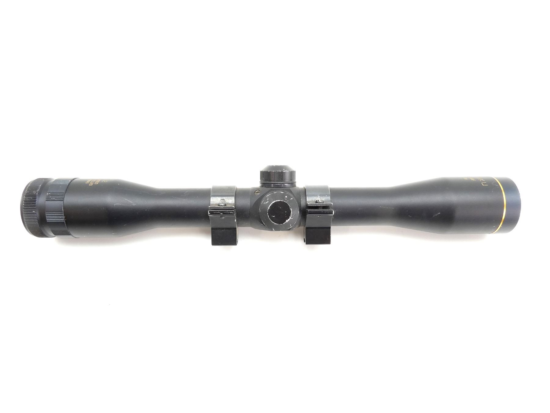 (1) CLEAR OPTICS, DUPLEX RETICLE, 1" DIAMETER TUBE, WORKING MAGNIFICATION RING, WINDAGE & ELEVATION KNOBS TURN, SHOWS WEAR & TEAR / USE MARKS. SEE PHOTOS.