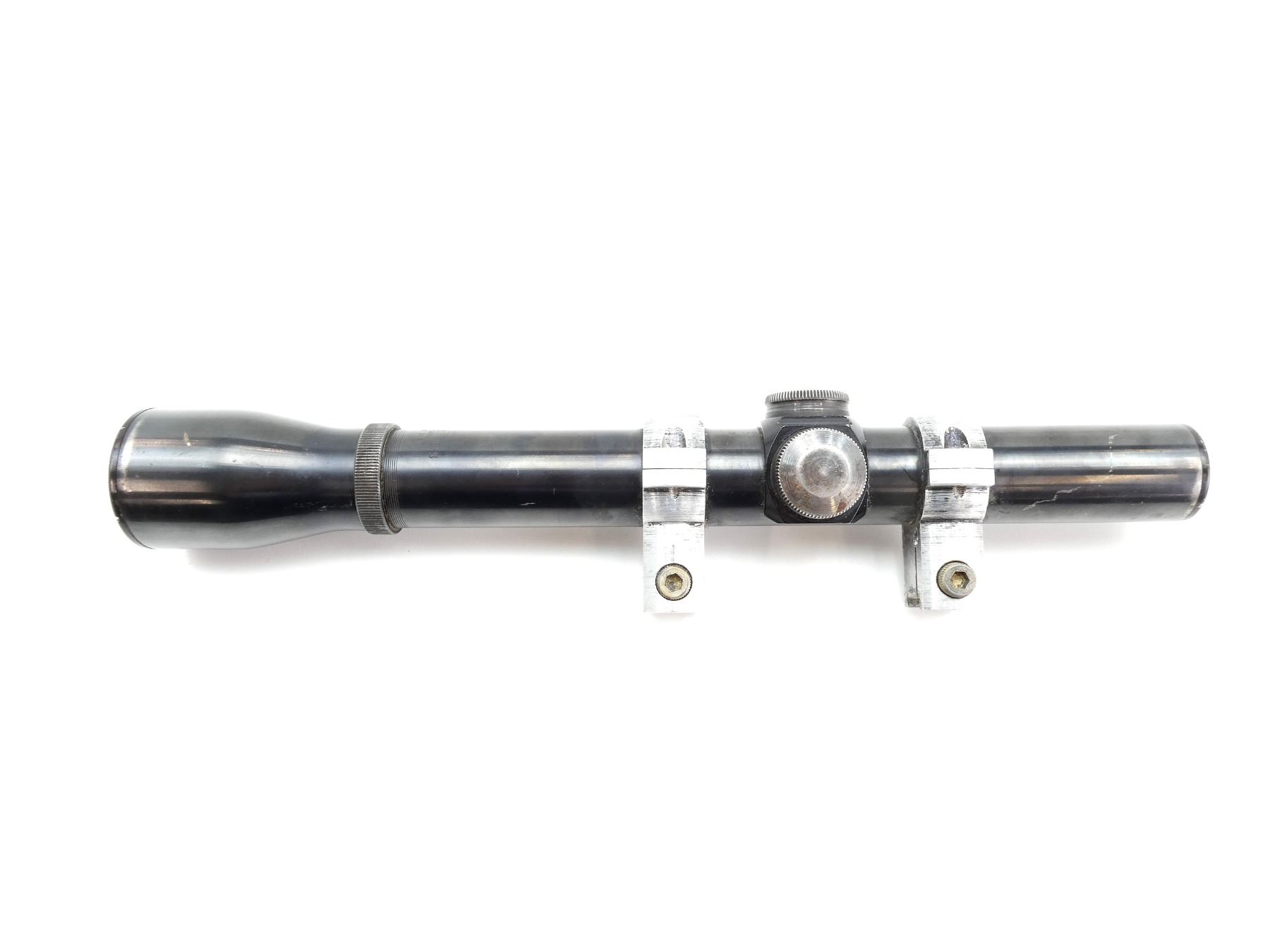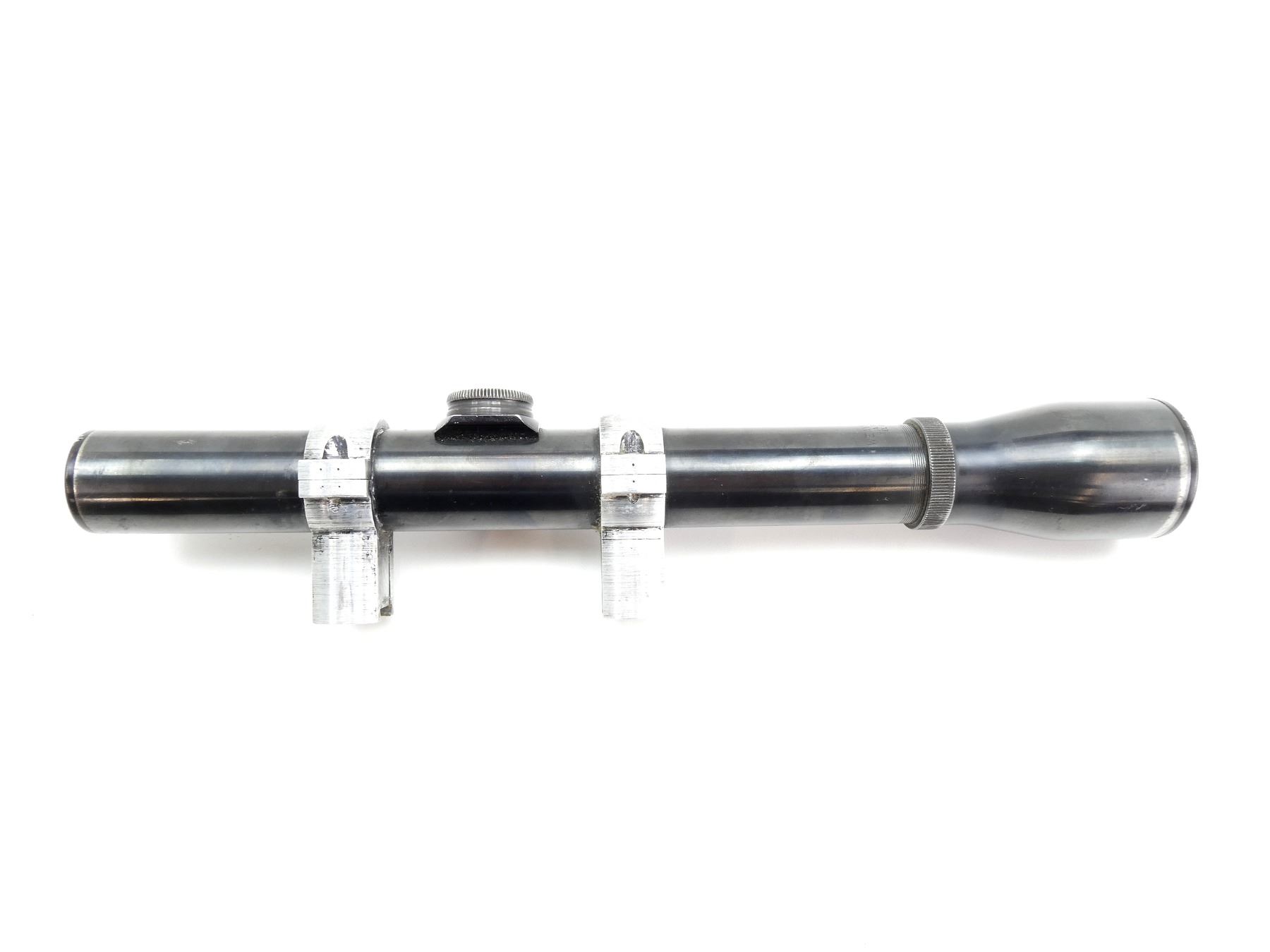 (1) CLEAR OPTICS, SINGLE POST WITH FINE LINE RETICLE, 1" TUBE DIAMETER, MAGNIFICATION RING IS TIGHT BUT TURNS, WINDAGE & ELEVATION KNOBS TURN, SERIAL #2949816, WITH SCOPE RINGS, SHOWS WEAR & TEAR / USE MARKS. SEE PHOTOS.