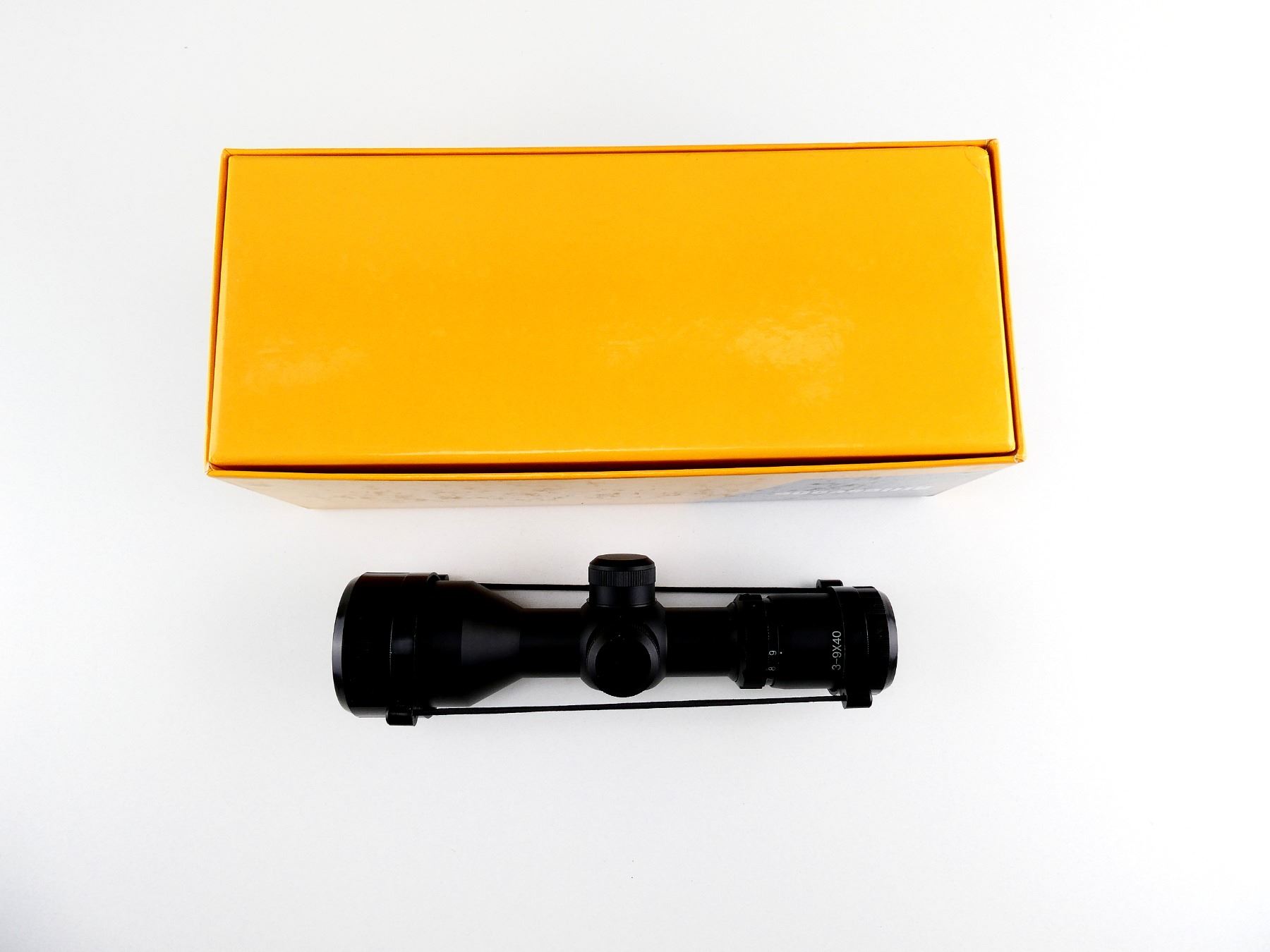 (1) CLEAR OPTICS, DUPLEX RETICLE WITH DOTS, 1" DIAMETER TUBE, WORKING MAGNIFICATION RING, WINDAGE & ELEVATION KNOBS TURN, MARKED: "3-9X40", WITH 1" SCOPE RINGS & LENS COVERS, SHOWS LIGHT WEAR & TEAR, APPEARS NOS IN ORIGINAL PACKAGING. SEE PHOTOS.