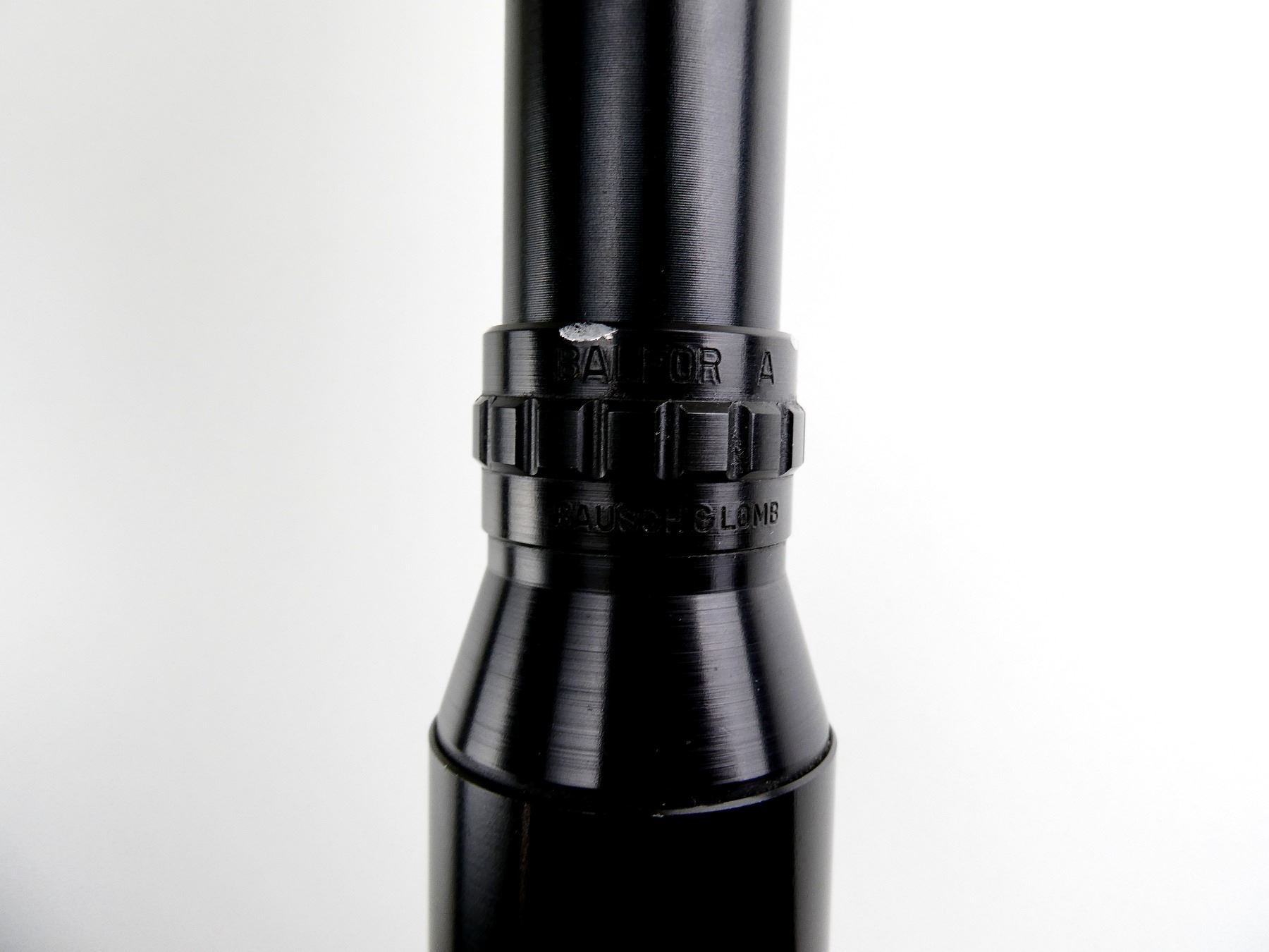 (1) CLEAR OPTICS, DUPLEX RETICLE, 1" TUBE DIAMETER, WORKING MAGNIFICATION RING, MARKED: "BALFOR A", "BAUSCH & LOMB", "2843 MG", WITH MOUNTING RAIL, ETC., SHOWS WEAR & TEAR / USE MARKS. SEE PHOTOS.