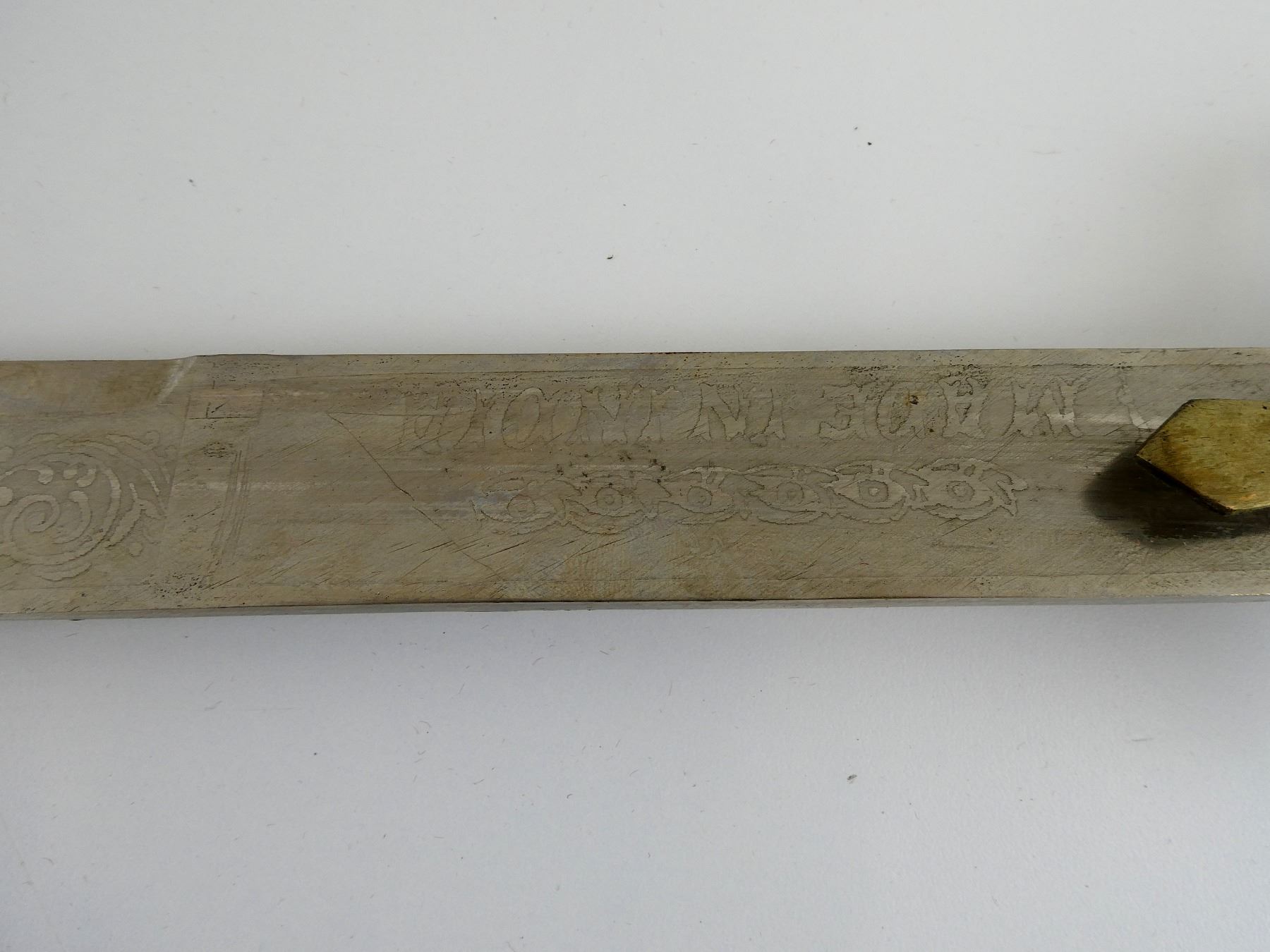 LOT INCLUDES; (2) STEEL BLADES, WITH FADED DECORATIVE ETCHING, MARKED: "MADE IN INDIA", BRASS HANDLES, RED FELT COVERED WOOD SCABBARDS, BLADE APPROX. 29.25"-29.75" & OAL APPROX. 33"-33.75". SEE PHOTOS.