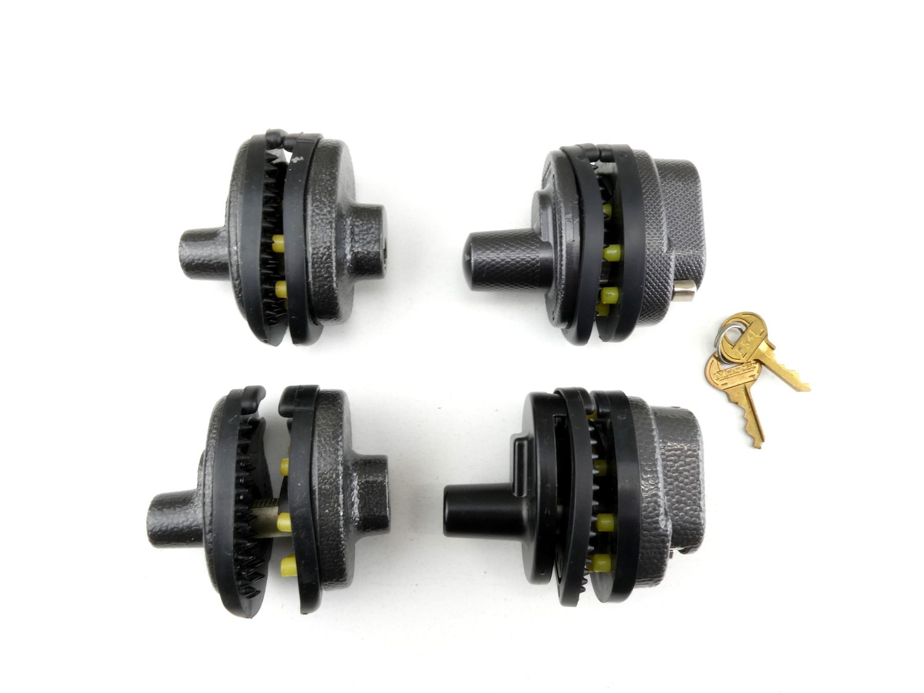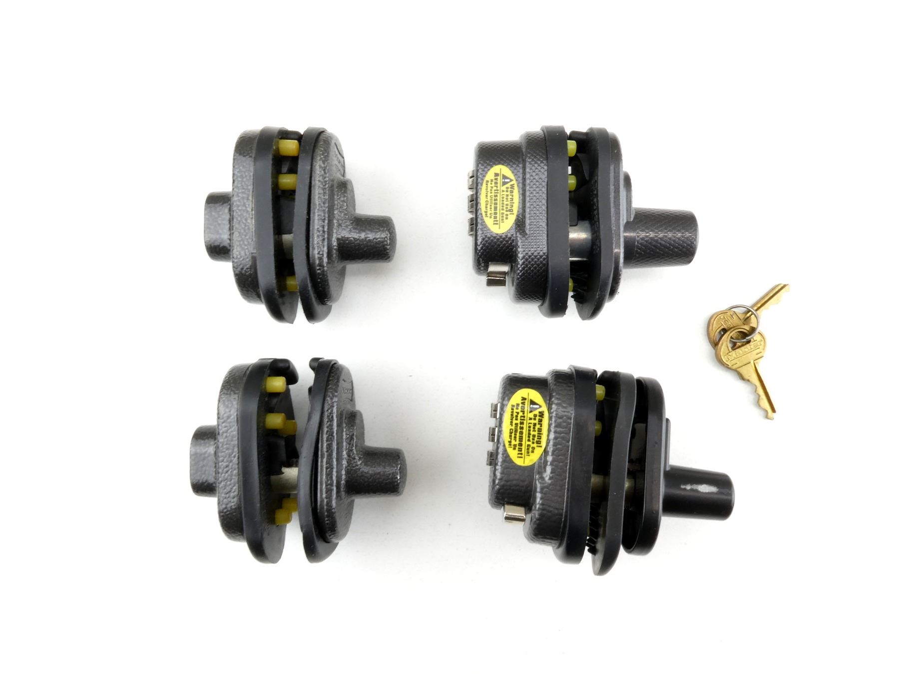 LOT INCLUDES; (2) MASTER COMBINATION TRIGGER LOCKS, ONE CODE FACTORY / ONE CODE UNKNOWN & (2) MASTER KEYED TRIGGER LOCKS WITH KEYS. SEE PHOTOS.