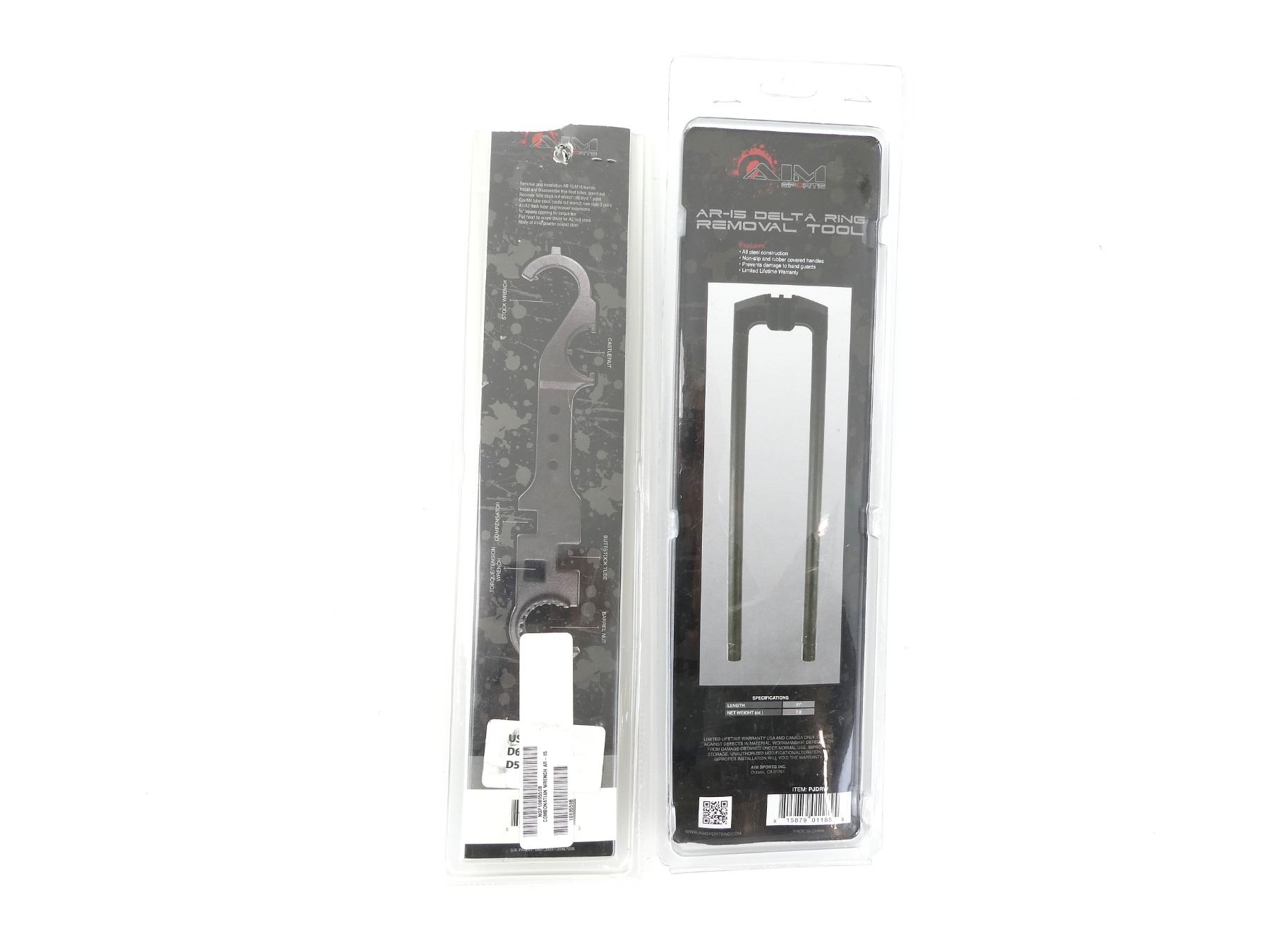 LOT INCLUDES; (1) AR-15 DELTA RING REMOVAL TOOL, INSTALLS & REMOVES AR-15 HANDGUARDS, STEEL CONSTRUCTION, NON-SLIP & RUBBER COVERED HANDLES, WITH ORIGINAL PACKAGING & (1) AR-15 / M4 / M16 COMBO WRENCH TOOL, INSTALLS & REMOVES BARREL NUTS, MUZZLE DEVICES AND BUTTSTOCKS, WITH ORIGINAL PACKAGING. SEE PHOTOS.