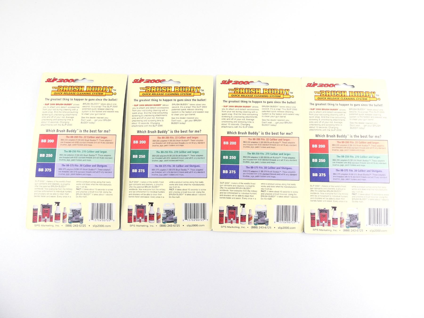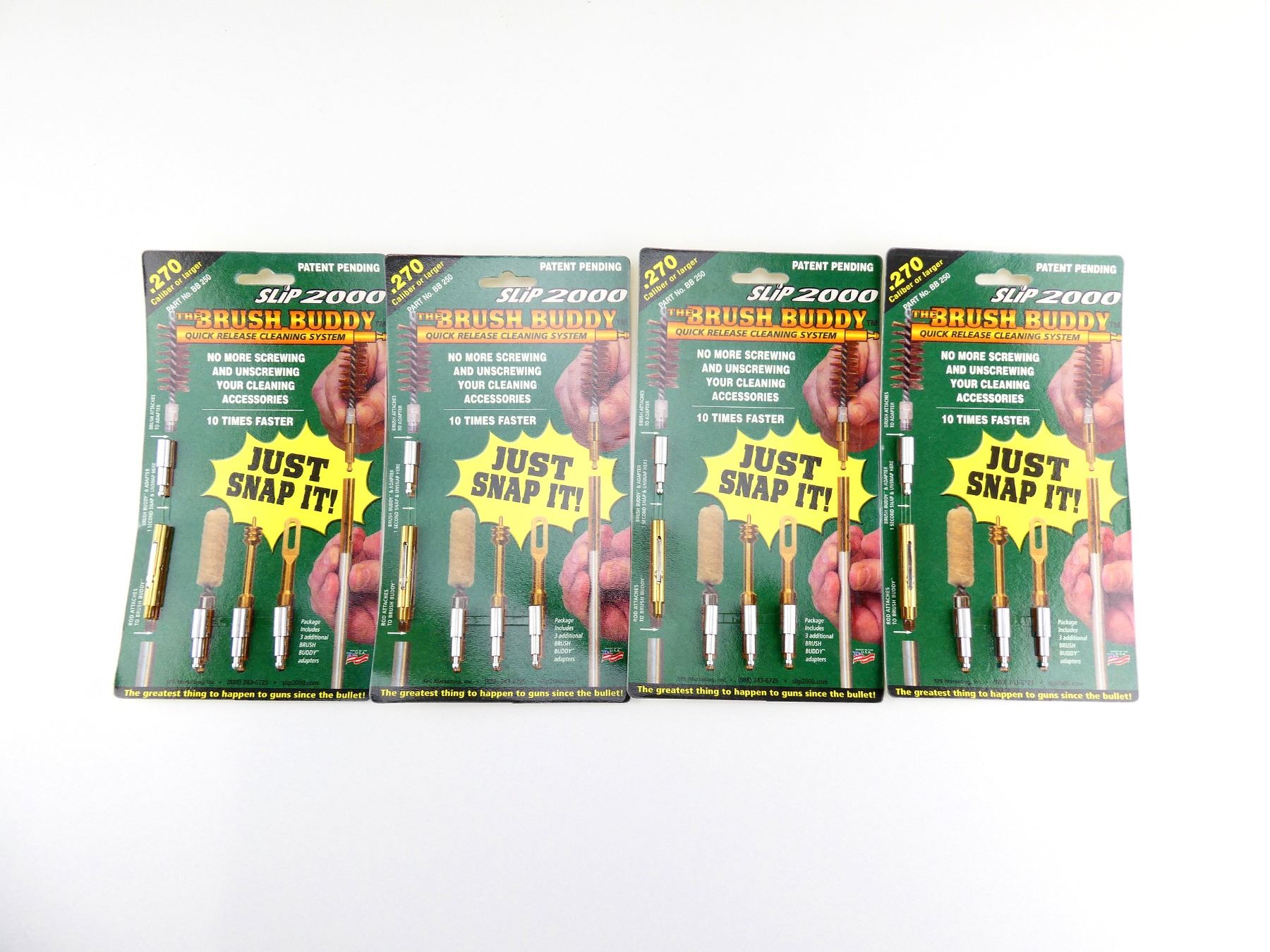 LOT INCLUDES; (4) PACKAGES OF "THE BRUSH BUDDY, QUICK RELEASE SYSTEM", FITS .270 CALIBER OR LARGER, NOS IN ORIGINAL SEALED PACKAGING. SEE PHOTOS.